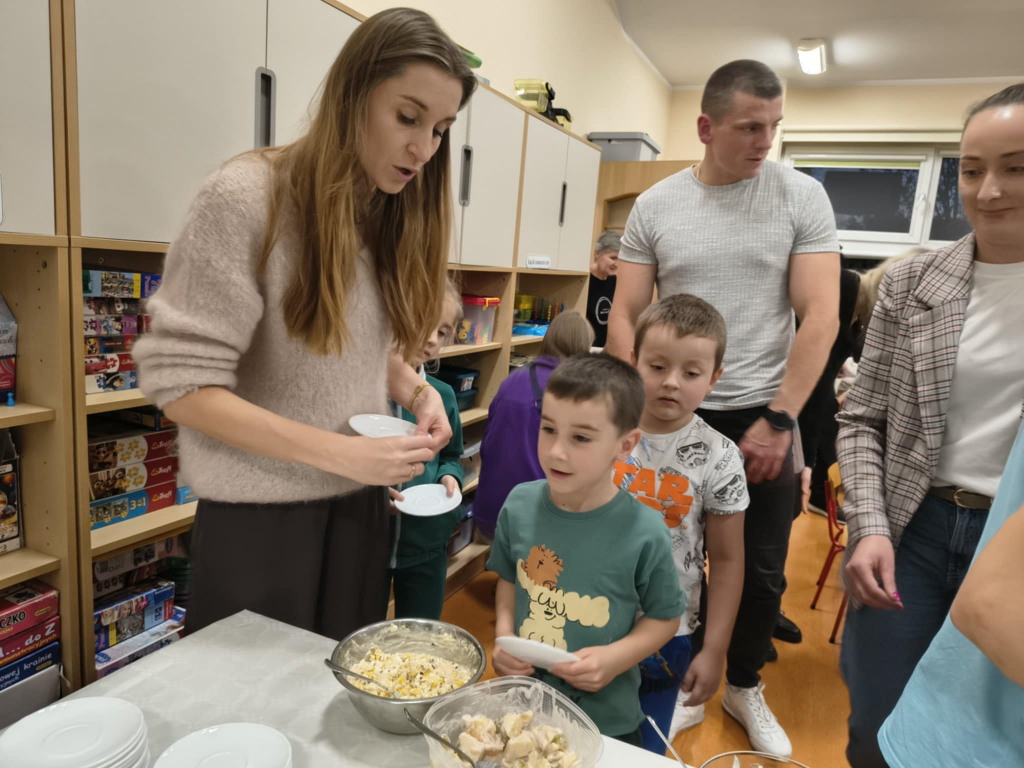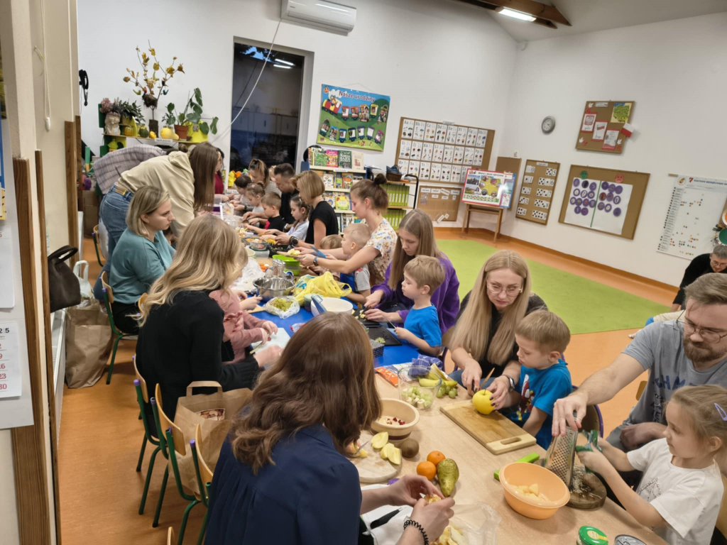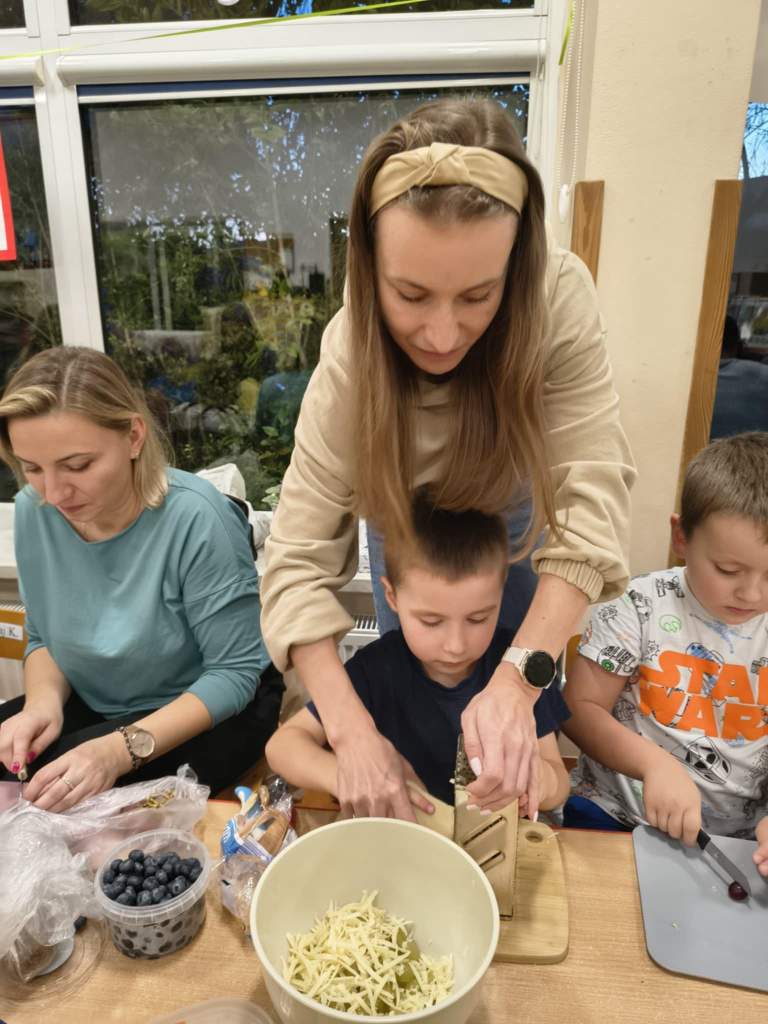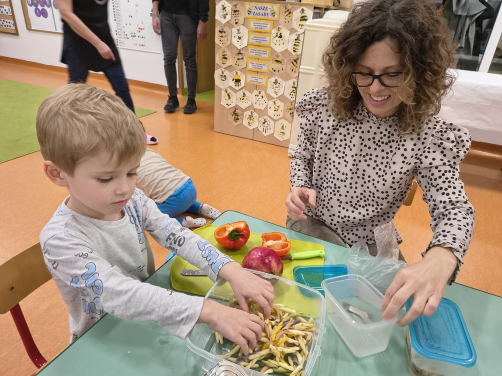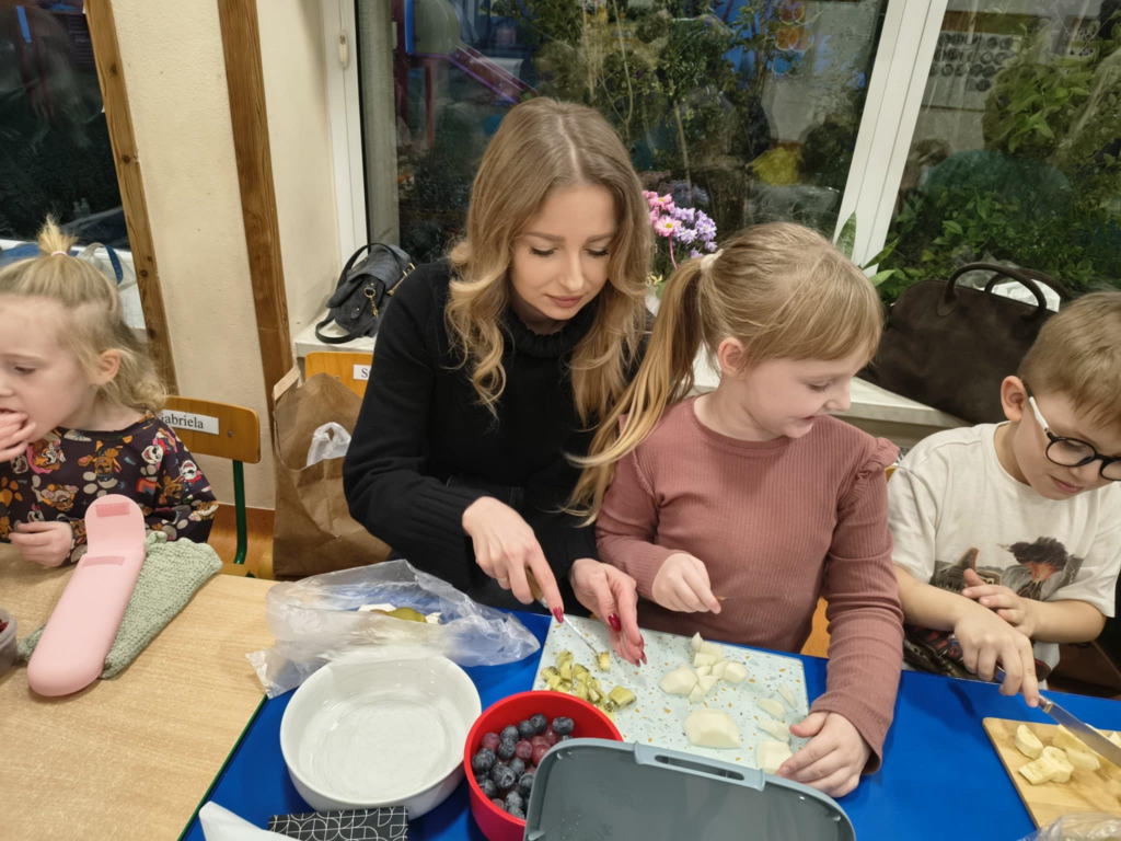 W listopadzie zaprosiliśmy naszych rodziców na zajęcia otwarte, których tematyka dotyczyła zdrowego odżywiania. Podczas zajęć utrwaliliśmy zasady zdrowego odżywania - co jeść a czego unikać aby być zdrowym, rozpoznawaliśmy po dotyku wybrane owoce i warzywa. Na zakończenie spotkania z przyniesionych przez rodziców owoców i warzyw powstały przepyszne i zdrowe sałatki. Każda inna, każda wyjątkowa i bardzo smaczna. To była niezapomniana uczta pełna witamin.