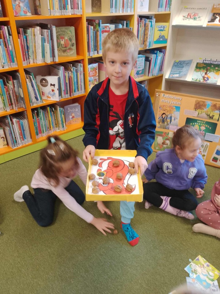 Dnia 16 października odwiedziliśmy Bibliotekę Pedagogiczną, uczestnicząc w zajęciach pt. „Skarby jesieni”. Proponowane działania były cennym uzupełnieniem naszych wiadomości dotyczących darów jakie niesie za sobą ta piękna i barwna pora roku.