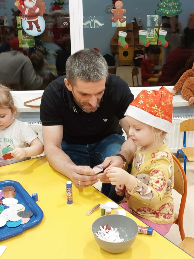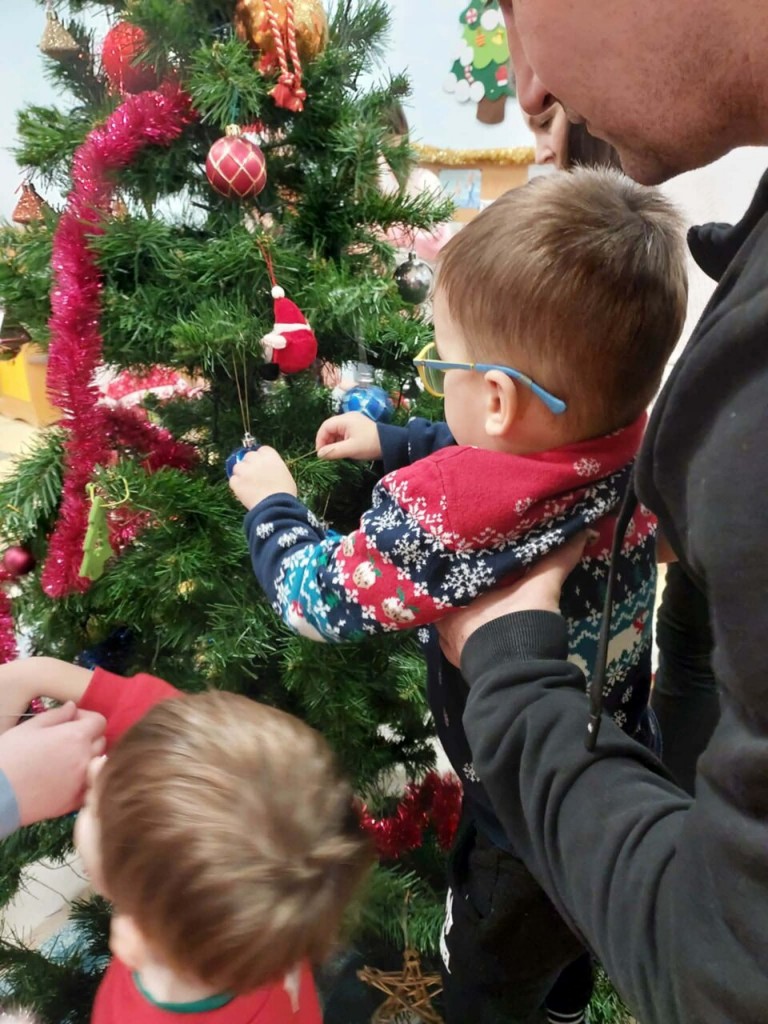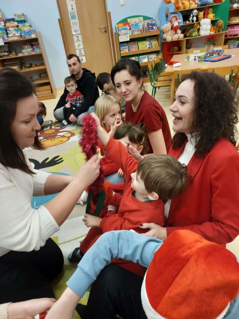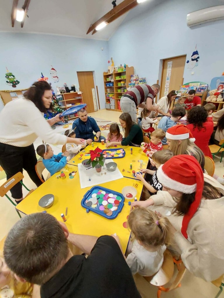 Dnia 9 grudnia w naszej grupie odbyły się zajęcia otwarte z udziałem rodziców. Był to wyjątkowy czas przepełniony radością i świąteczną atmosferą. Wspólnie tworzyliśmy piękne ozdoby choinkowe, ubraliśmy choinkę oraz razem kolędowaliśmy, ciesząc się bliskością i magią nadchodzących Świąt. Wspaniale jest pielęgnować takie tradycje razem z dziećmi i ich rodzicami. To spotkanie na długo pozostanie w naszej pamięci jako niezapomniany czas pełen świątecznego ciepła, uśmiechu i wspólnej radości.