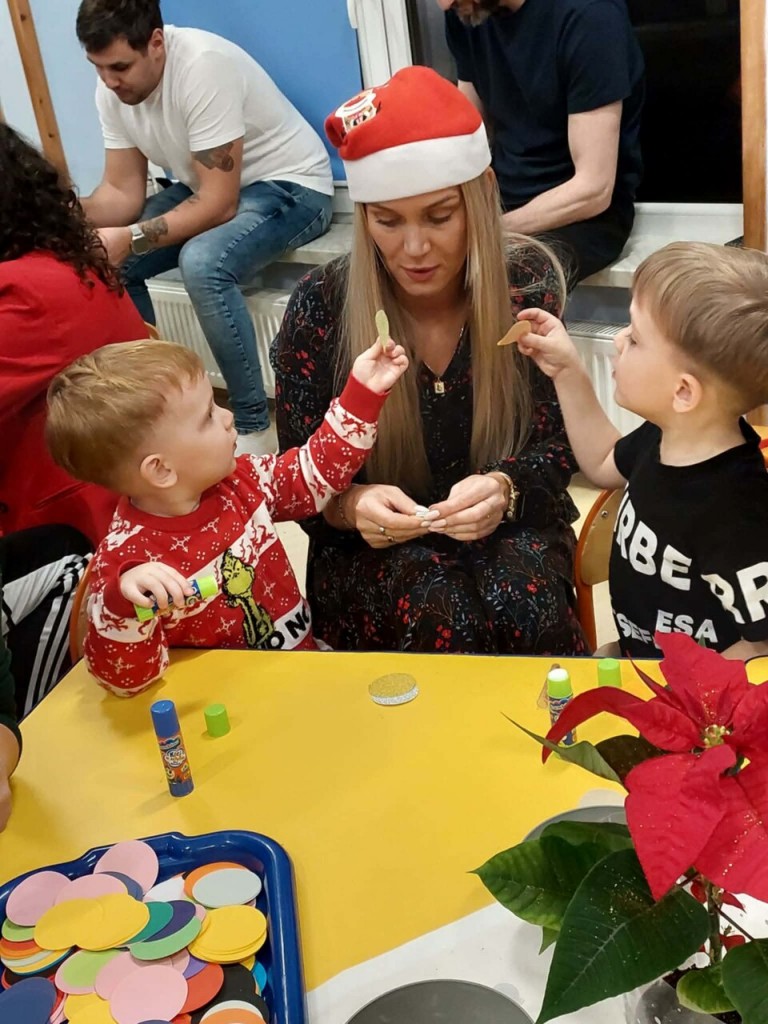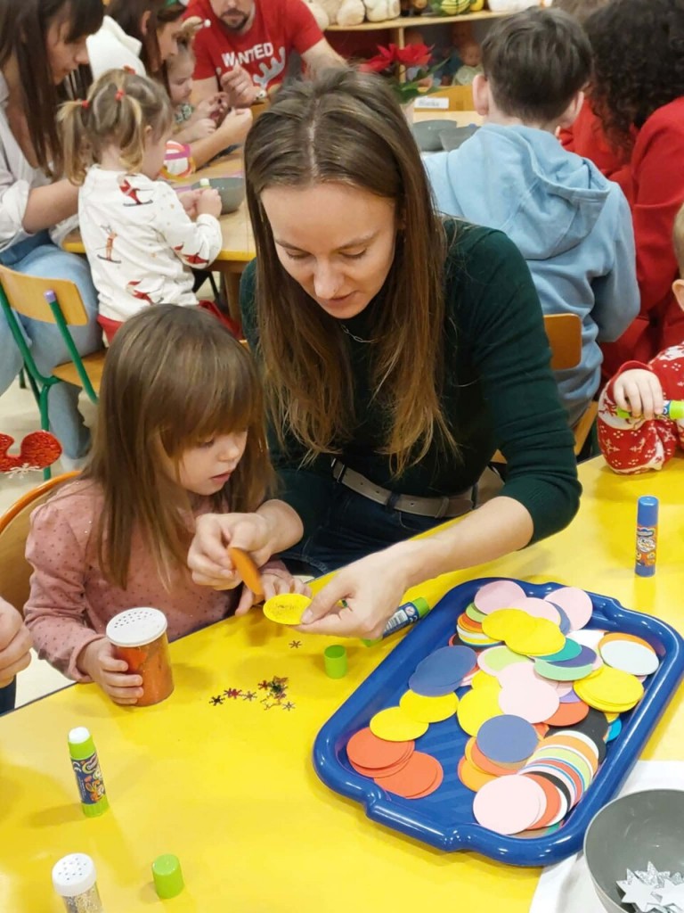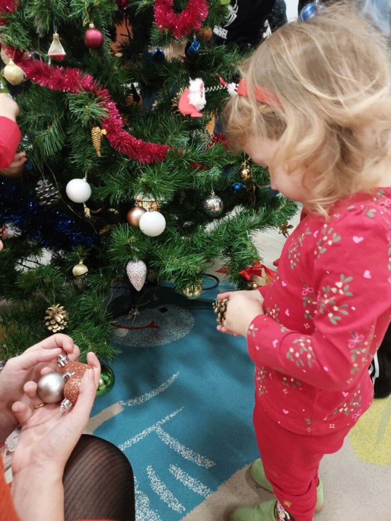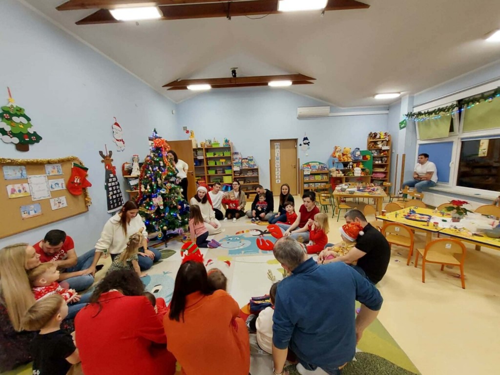 Dnia 9 grudnia w naszej grupie odbyły się zajęcia otwarte z udziałem rodziców. Był to wyjątkowy czas przepełniony radością i świąteczną atmosferą. Wspólnie tworzyliśmy piękne ozdoby choinkowe, ubraliśmy choinkę oraz razem kolędowaliśmy, ciesząc się bliskością i magią nadchodzących Świąt. Wspaniale jest pielęgnować takie tradycje razem z dziećmi i ich rodzicami. To spotkanie na długo pozostanie w naszej pamięci jako niezapomniany czas pełen świątecznego ciepła, uśmiechu i wspólnej radości.