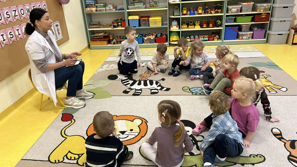 Dnia 26 listopada odwiedziła nas pani pielęgniarka Dorotka. Spotkanie miało na celu wzbogacenie i utrwalenie wiadomości na temat sposobów dbania o zdrowie. Pani pielęgniarka przypomniała nam, jak należy ubierać się odpowiednio do pogody, jak właściwie się odżywiać i jak zachować zasady higieny i zdrowego stylu życia a my wykazaliśmy się bardzo dużą wiedzą na temat zdrowia i czystości. serdecznie dziękujemy pani Dorotce za to pouczające spotkanie.