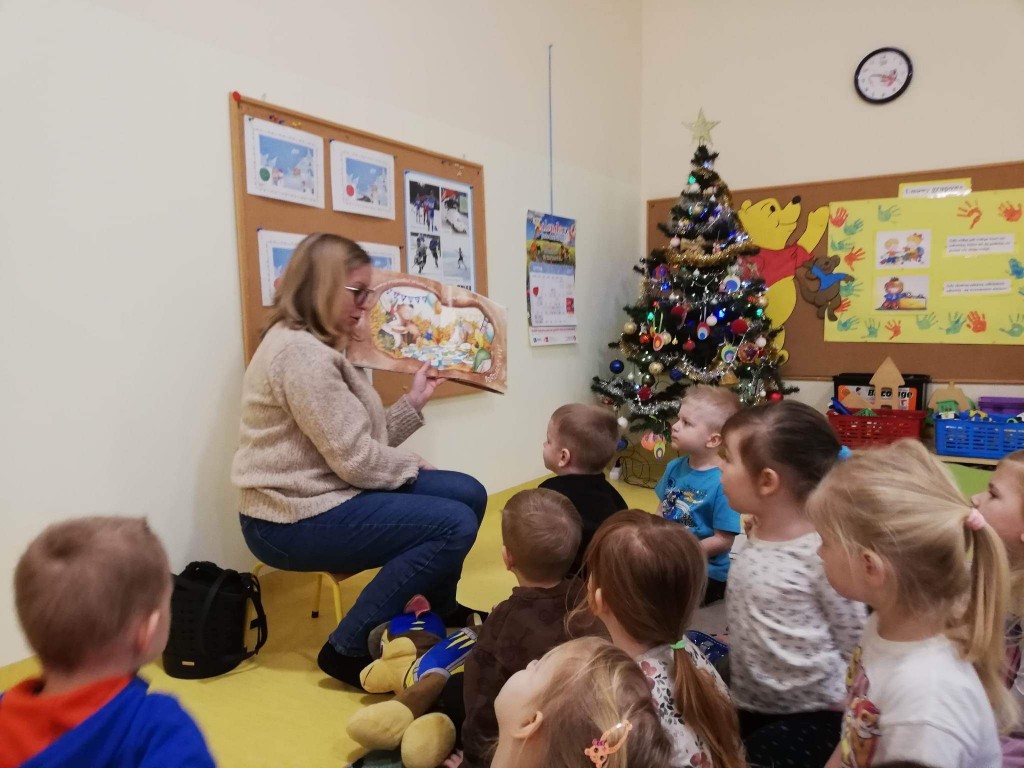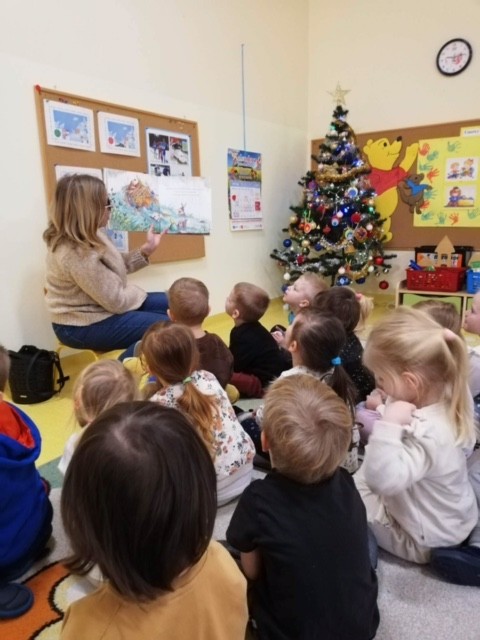Jak co miesiąc, także i w styczniu, odwiedziła nas Pani z Biblioteki Pedagogicznej w Białej Podlaskiej. Tym razem nasz gość przeczytał nam książkę Katy Hudson „Za dużo marchewek”. Ta urocza książka pokazuje, jak siła przyjaźni pomaga przetrwać trudne chwile w życiu, nawet gdy po drodze spotykają nas niekoniecznie miłe niespodzianki. I że przyjaźń i dzielenie się z innymi są ważniejsze niż posiadanie. Serdecznie dziękujemy Pani Bibliotekarce za spotkanie i z niecierpliwością czekamy na kolejne „Minutki z książką”.