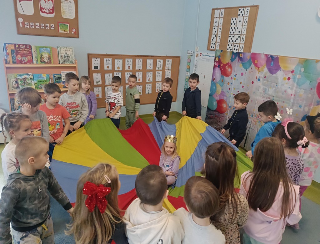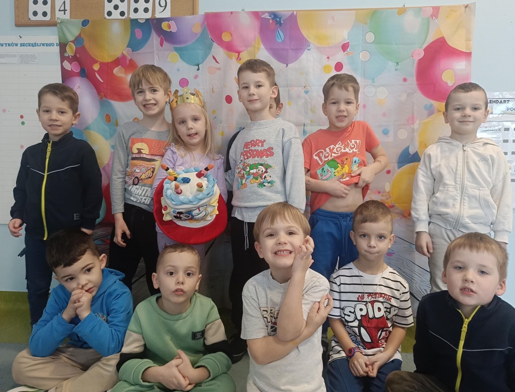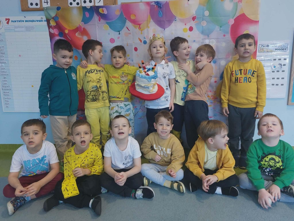 Dzieci świętują swoje urodziny w domu z rodziną, ale wiele radości sprawia im także kiedy mogą bawić się wspólnie z koleżankami i kolegami w przedszkolu. Tym razem swoje święto mieli: Leon Konieczny, Karinka G. ,Szymek oraz Laurka. Był to czas niezwykle radosny. Dzieci odśpiewały Jubilatom głośne Sto lat! ,wręczyły albumy z pokolorowanymi obrazkami i obdarowały kolegów i koleżanki mnóstwem serdecznych życzeń oraz przytulasów.