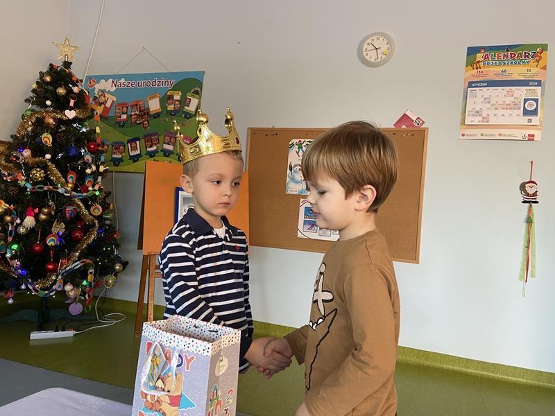 W styczniu swoje piąte urodziny obchodzili Miłoszek i Rysio. Zgodnie z naszą tradycją wszyscy odśpiewaliśmy Jubilatom naszą urodzinową piosenkę, podczas której mogli poczuć się wyjątkowo. Następnie złożyliśmy życzenia dołączając do nich w prezencie album urodzinowy. W podziękowaniu za życzenia Jubilaci poczęstowali Nas pysznymi słodkościami. Uroczystości towarzyszyła miła, serdeczna i wesoła atmosfera. Naszym Jubilatom życzymy 100 lat!