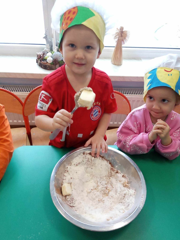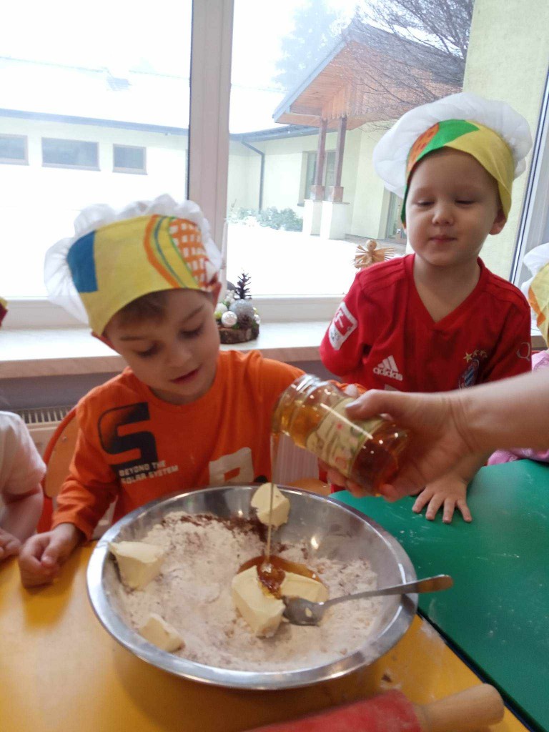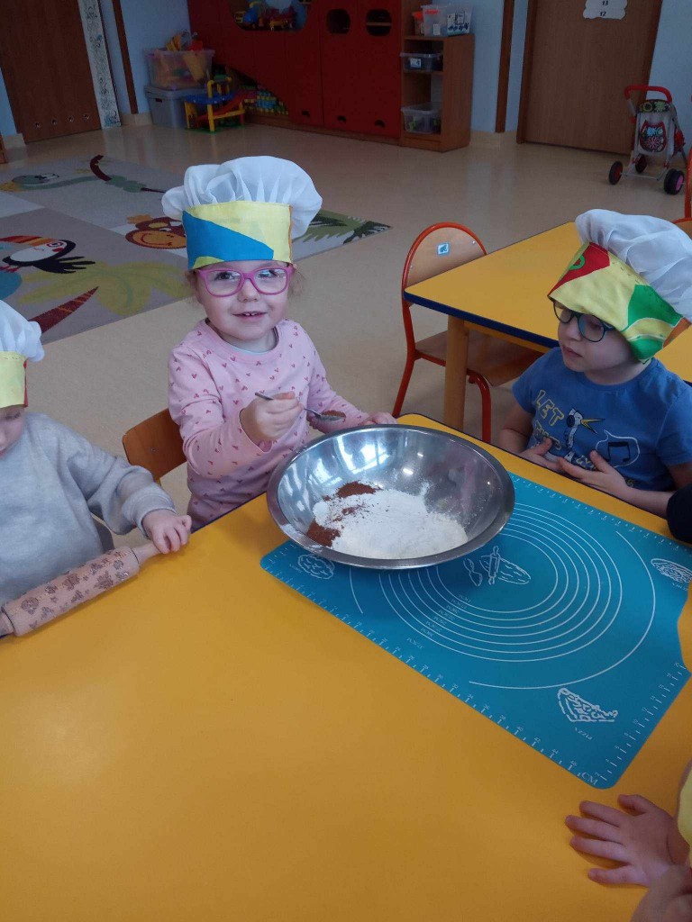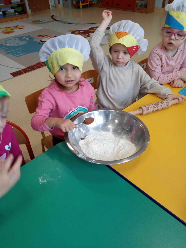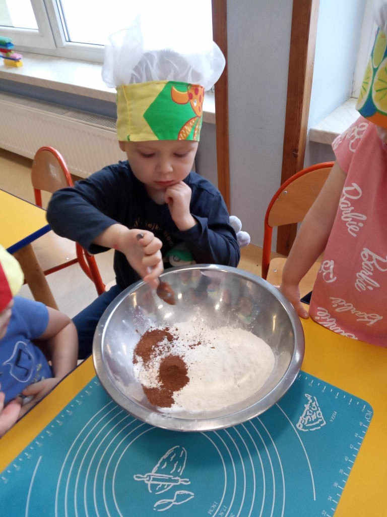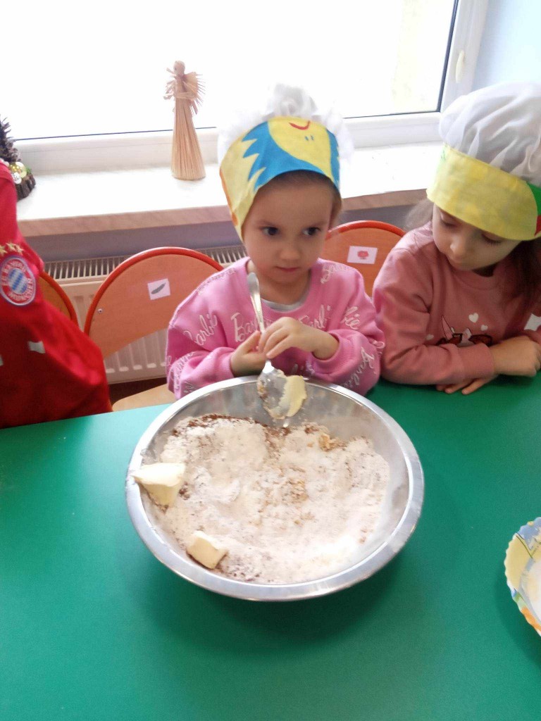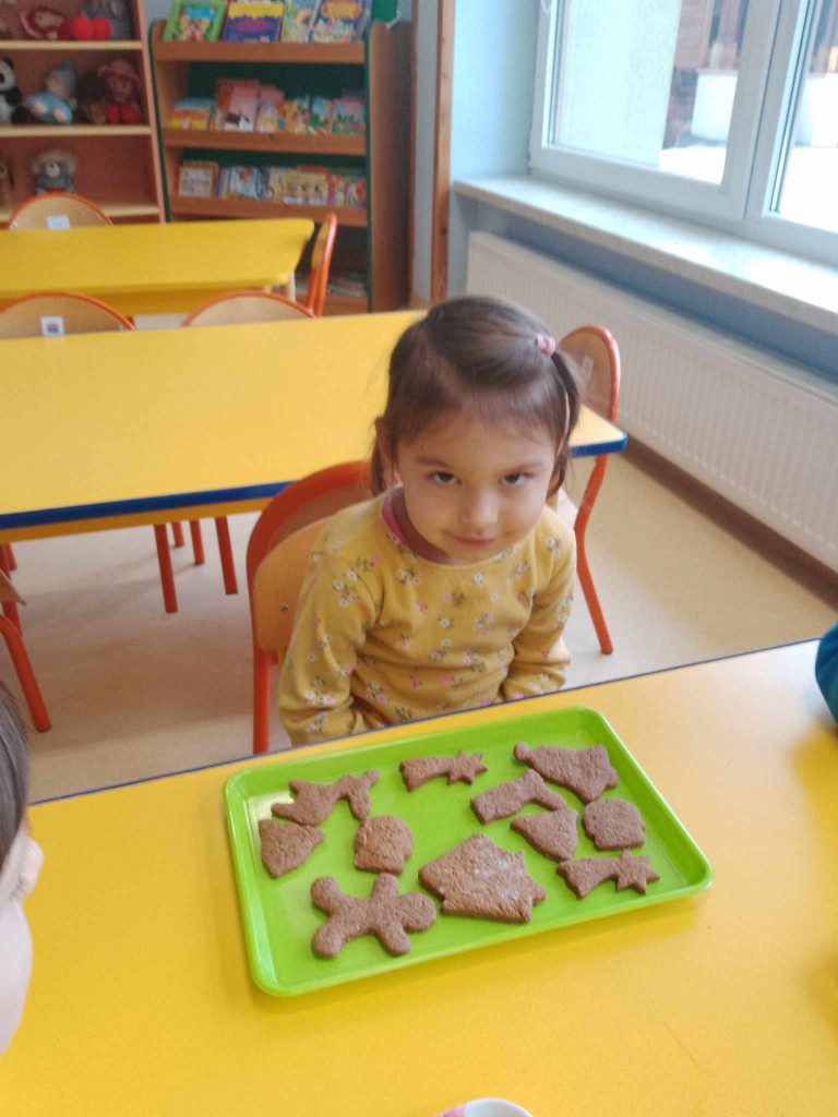 Przedświąteczne przygotowania nasza grupa rozpoczęła od upieczenia pierniczków. Z pomocą pań praca z przygotowaniem wypieków szła sprawnie. Bez trudu szło nam wałkowanie ciasta i wykrawanie różnych kształtów przy pomocy foremek. Nie zabrakło choinek, reniferów, misiów, dzwonków, gwiazdek i wielu, wielu innych. Po włożeniu wyciętych ciastek do piekarnika w całym przedszkolu zaczął unosić się słodki zapach korzennych pierników, przywołujący na myśl dom, święta i rodzinną atmosferę. Wspólne pieczenie i dekorowanie pierników było doskonałą zabawą. Pięknie przyozdobione pierniki będą wspaniałą dekoracją świątecznego stołu, a ich wyjątkowo intensywny aromat będzie nam towarzyszyć przez cały okres Świat Bożego Narodzenia.
