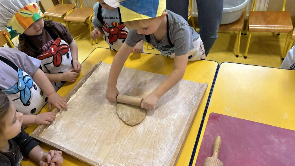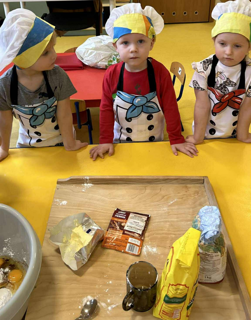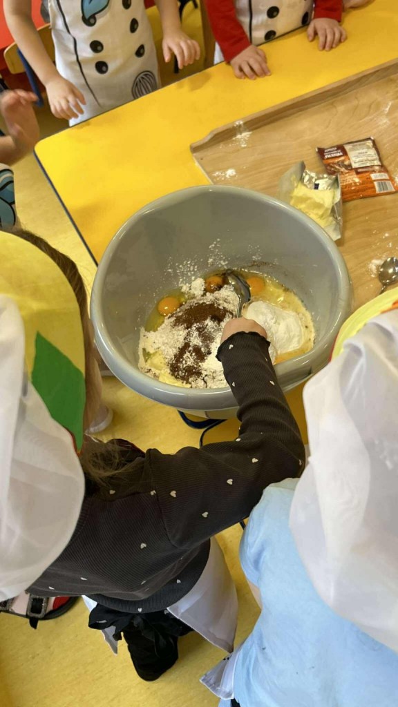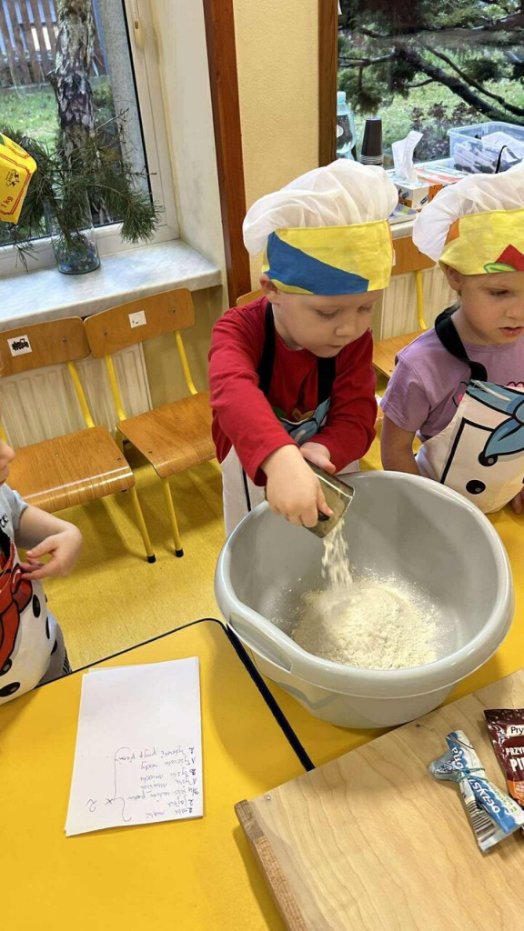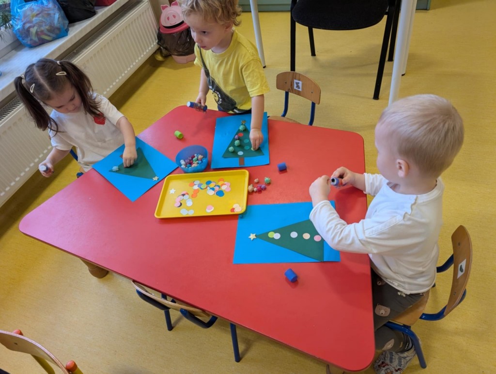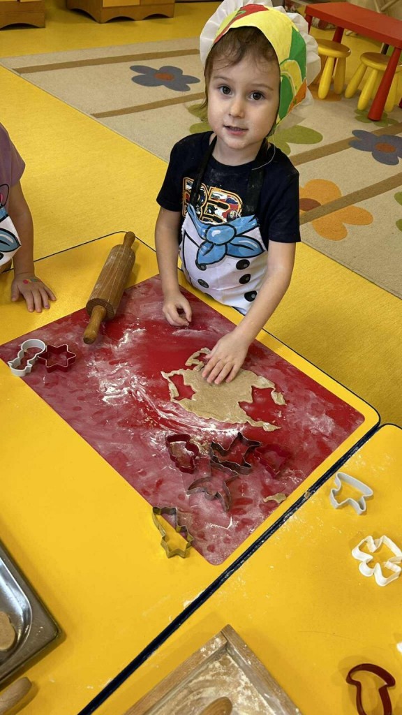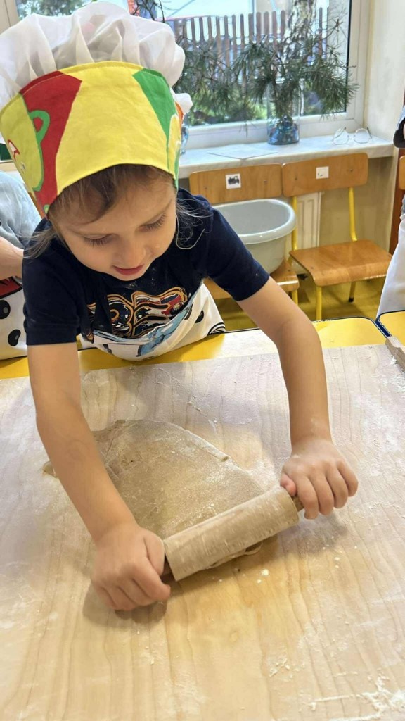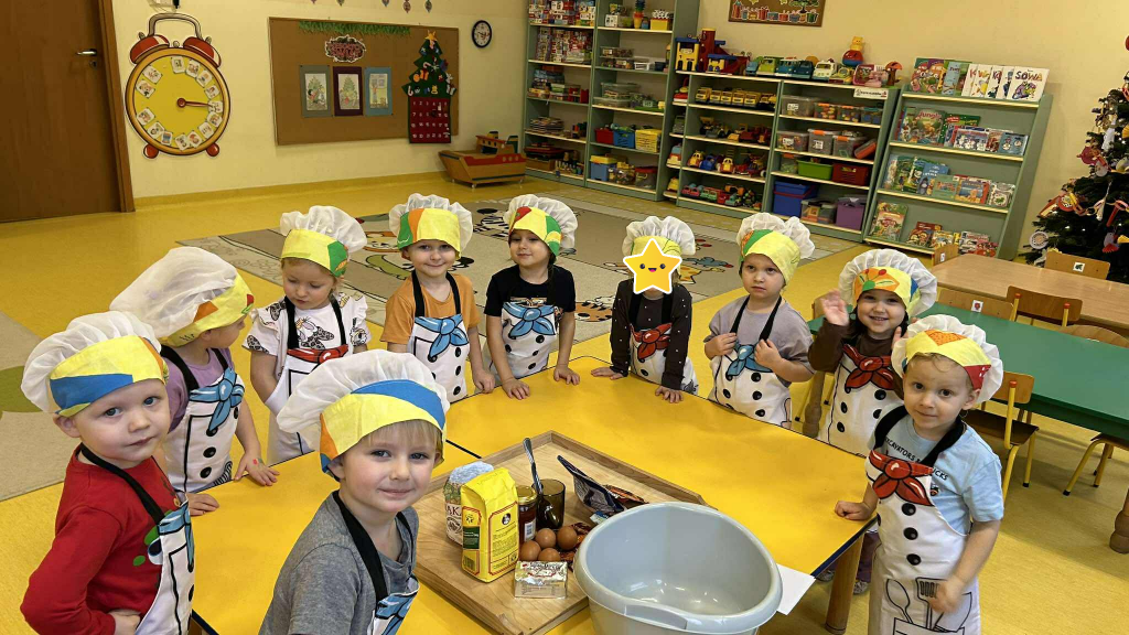 Święta tuż, tuż… czas więc na różne świąteczne działania. Uwielbiamy świąteczne prace plastyczne i tak właśnie powsatły nasze przepięnkne, papierowe choineczki. Najwięcej jednak satysfakci przyniosło nam pieczenie pierników. Dnia 11 grudnia nasza grupa zabrała się z wielkim zapałem do świątecznych wypieków. Wałkowaliśmy ciasto, wykrawaliśmy ciasteczka. Efektem naszego kunsztu piekarskiego były blaszki pełne pierniczków, które zanieśliśmy do kuchni. Dekaracją pierniczków zajęliśmy się kolejnego dnia ozdabiając je lukrem i barwnymi posypkami. Przygotowanie ciasteczek bardzo nam się podobało, a w przedszkolu unosił się wspaniały aromat korzennych przypraw, który wprawiał wszystkich w cudowny, świąteczny nastrój.