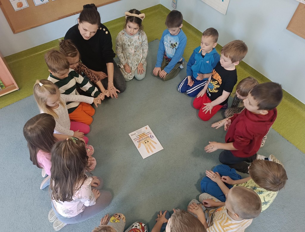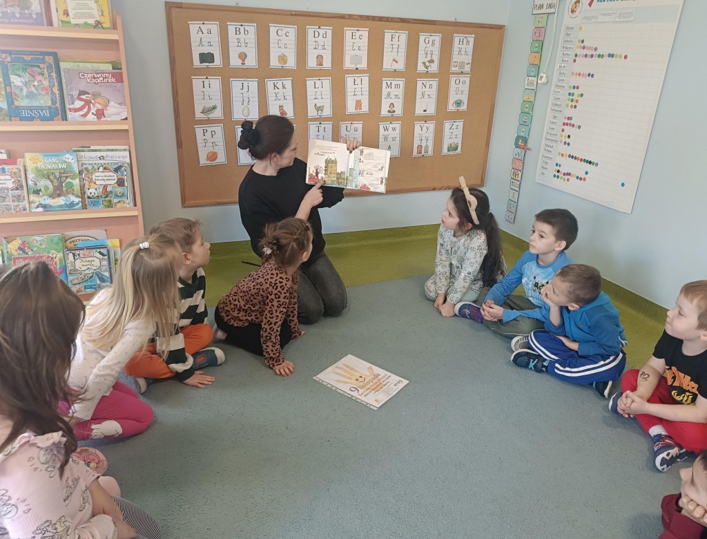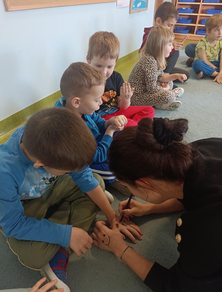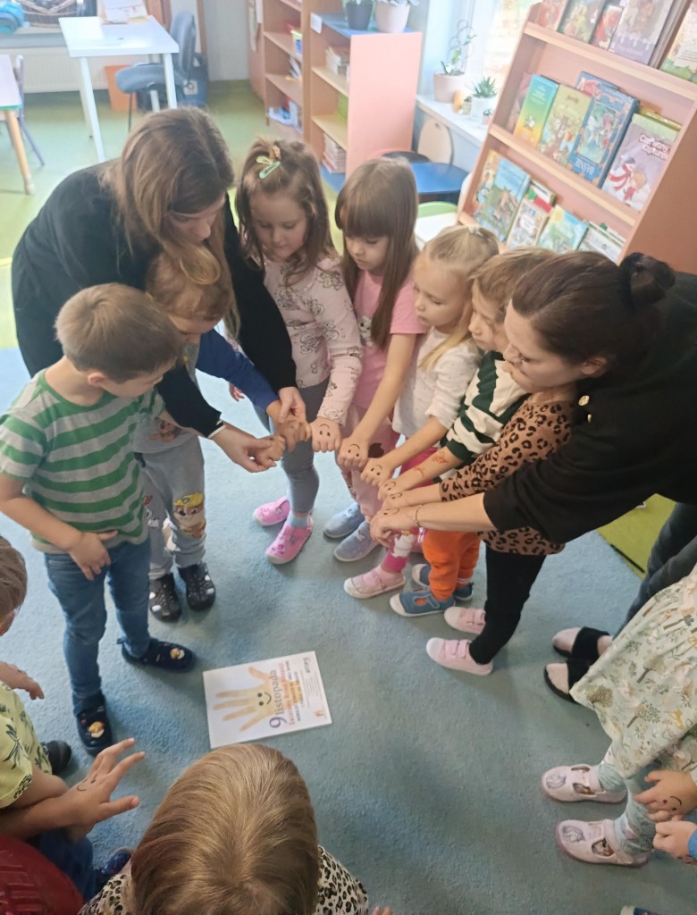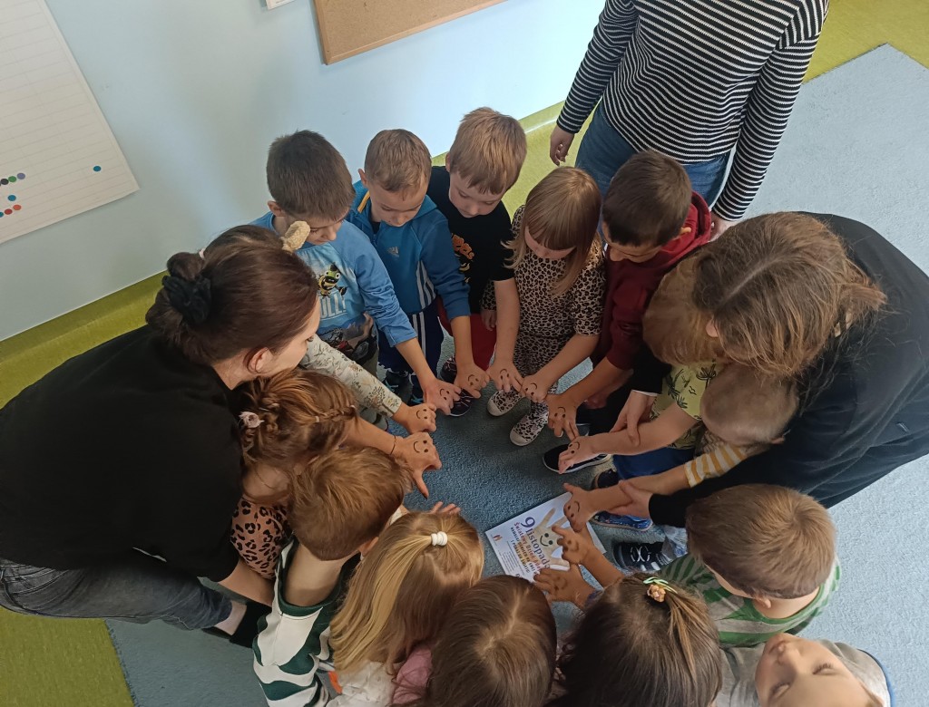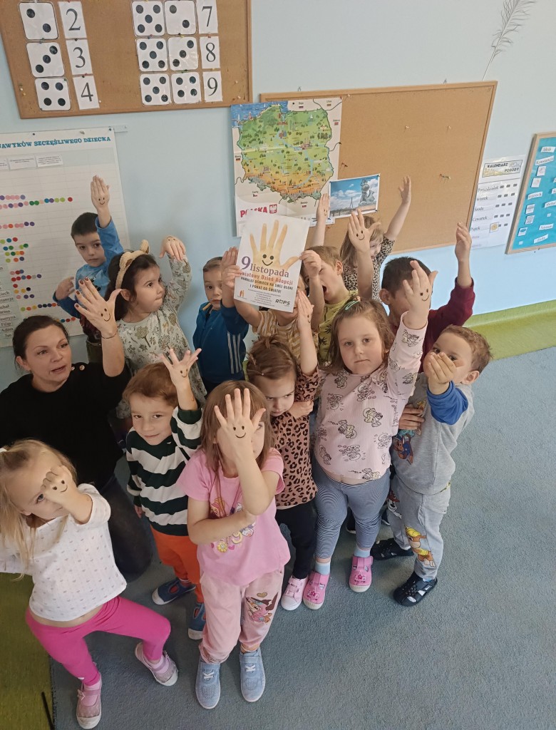 9 listopada przypada Światowy Dzień Adopcji. W związku z tym przedszkolaki wysłuchały bajki pt. "Skąd się biorą rodzice?" autorstwa Agnieszki Porzezińskiej. Ta bajka to tak naprawdę nie bajka, ale historia z życia wzięta. Najważniejsze są w niej emocje małego Groszka. Co czuje chłopiec bez imienia? Na co czeka? Kogo potrzebuje? Czy odnajdzie swoje szczęście? Na te i wiele innych pytań Tygryski szukały odpowiedzi. Na koniec przedszkolaki stworzyły wspólny krąg z dłoni, na której narysowana została uśmiechnięta buźka- symbol adopcji . Dłoń,która symbolizuje pomoc, a uśmiech radość z tworzenia nowej, szczęśliwej rodziny.