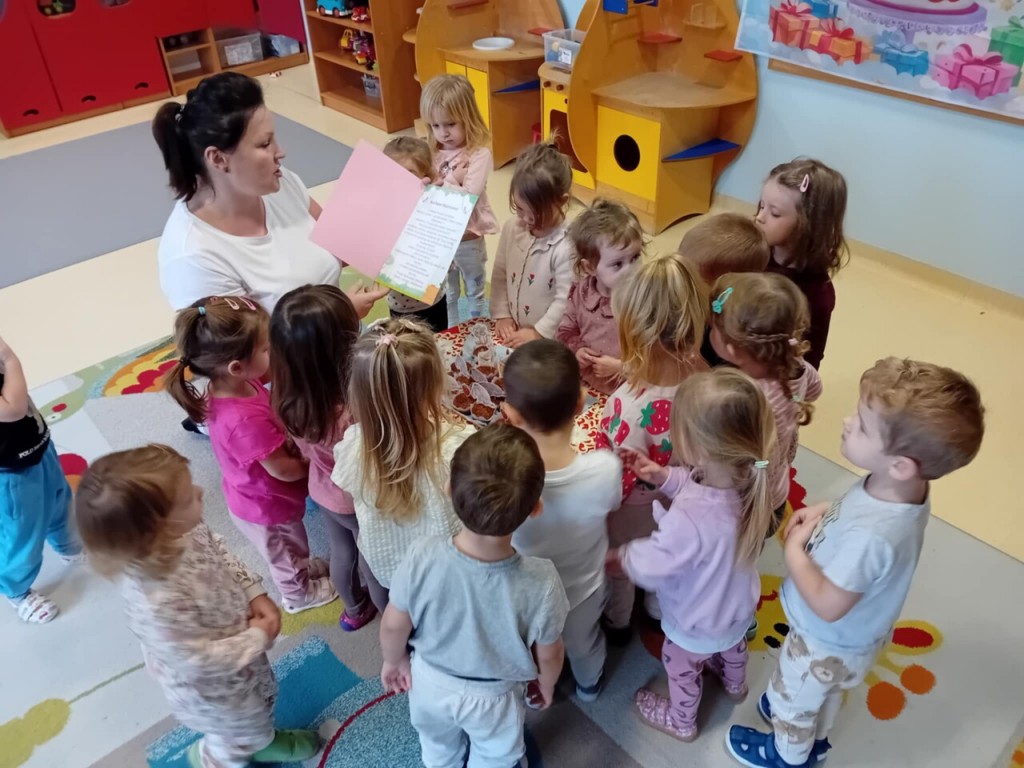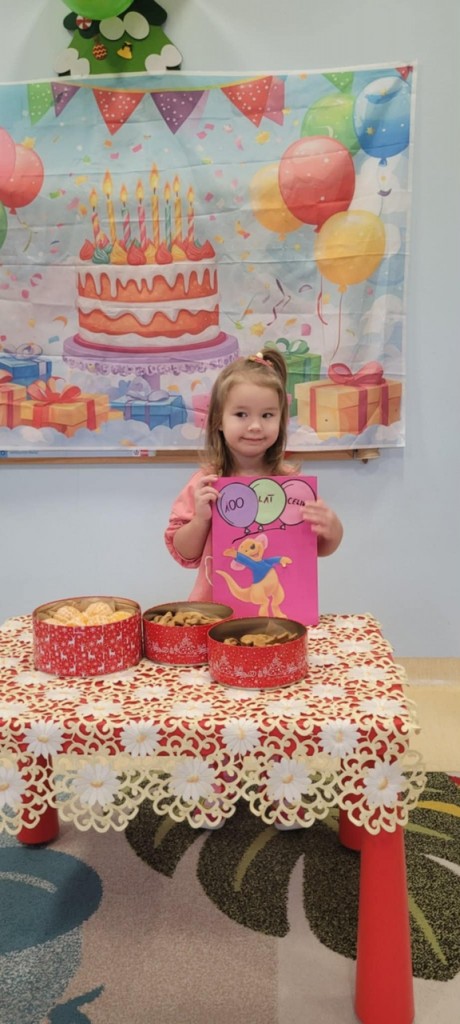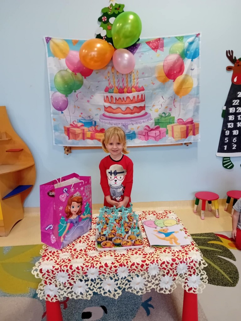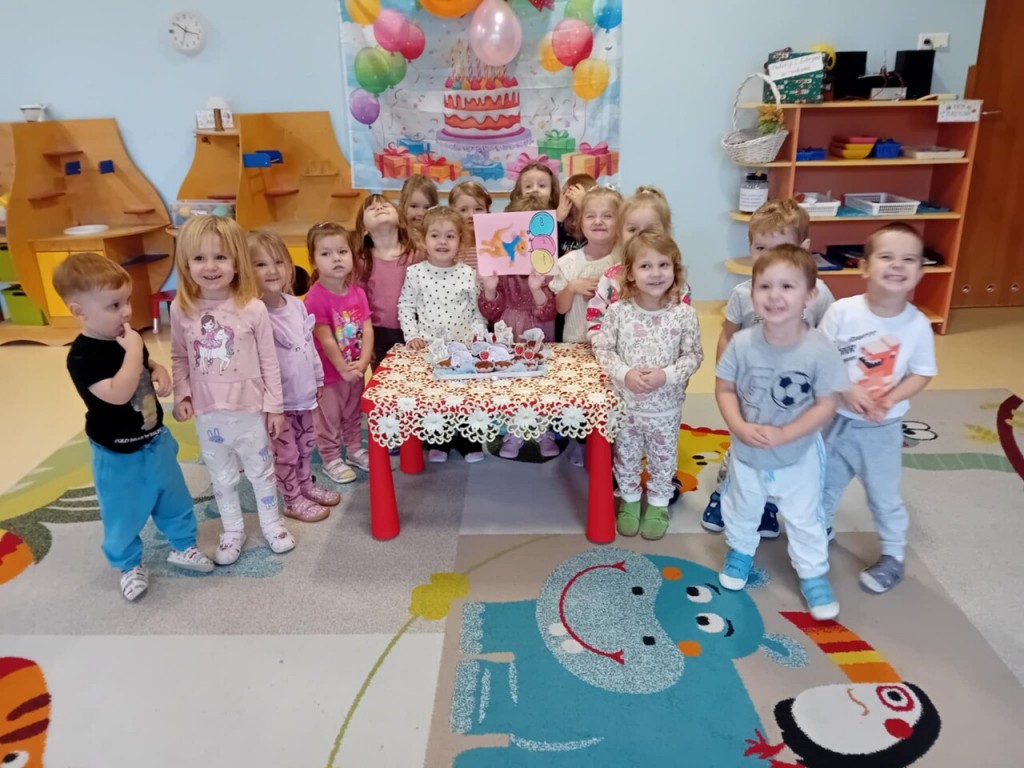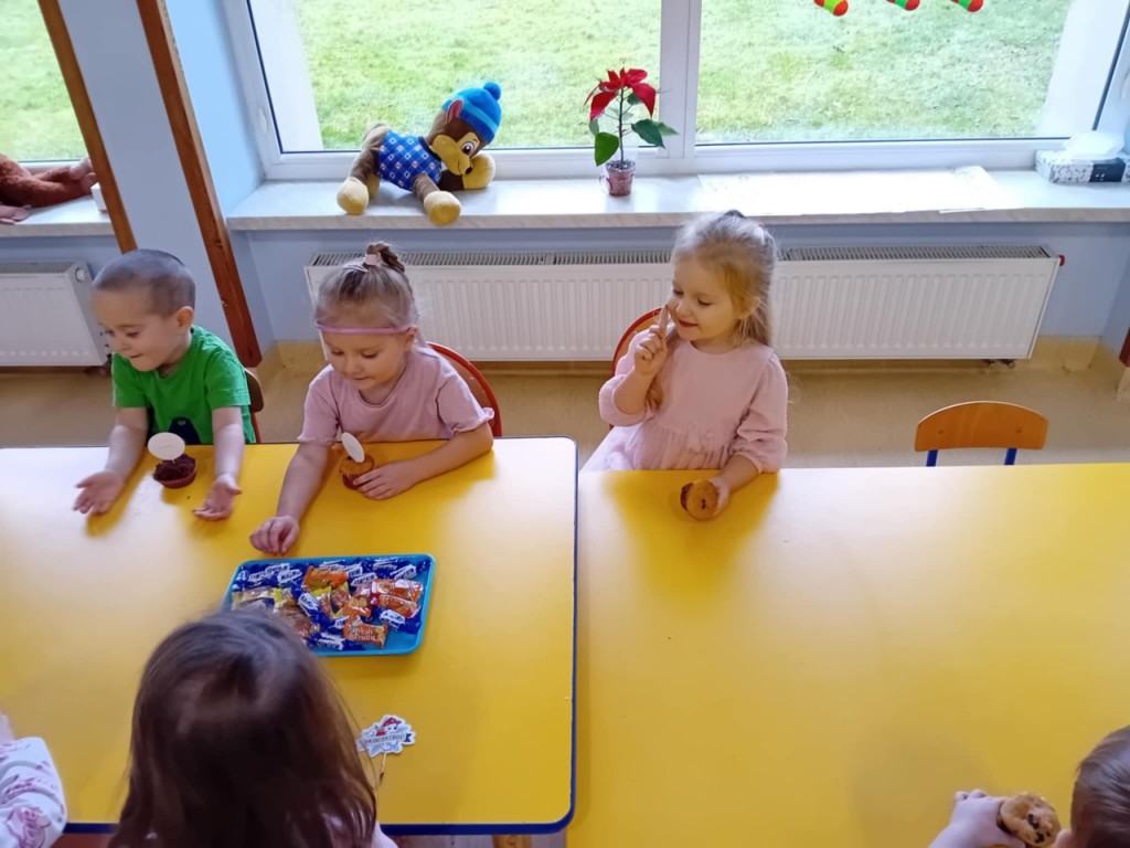W grudniu świętowaliśmy trzecie urodziny Hani,Marysi,Zosi oraz Celinki. Zgodnie z naszym zwyczajem, odśpiewaliśmy naszym Jubilatkom urodzinową piosenkę oraz złozyliśmy najserdeczniejsze życzenia. Potem mogliśmy poczęstować się pysznymi słodkościami. Oczywiście przygotowywaliśmy też urodzinowye prezenty - kartki z życzeniami dla każdej z dziewczynek. Wszystkiego dobrego Kochane Jubilatki!