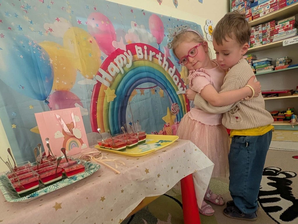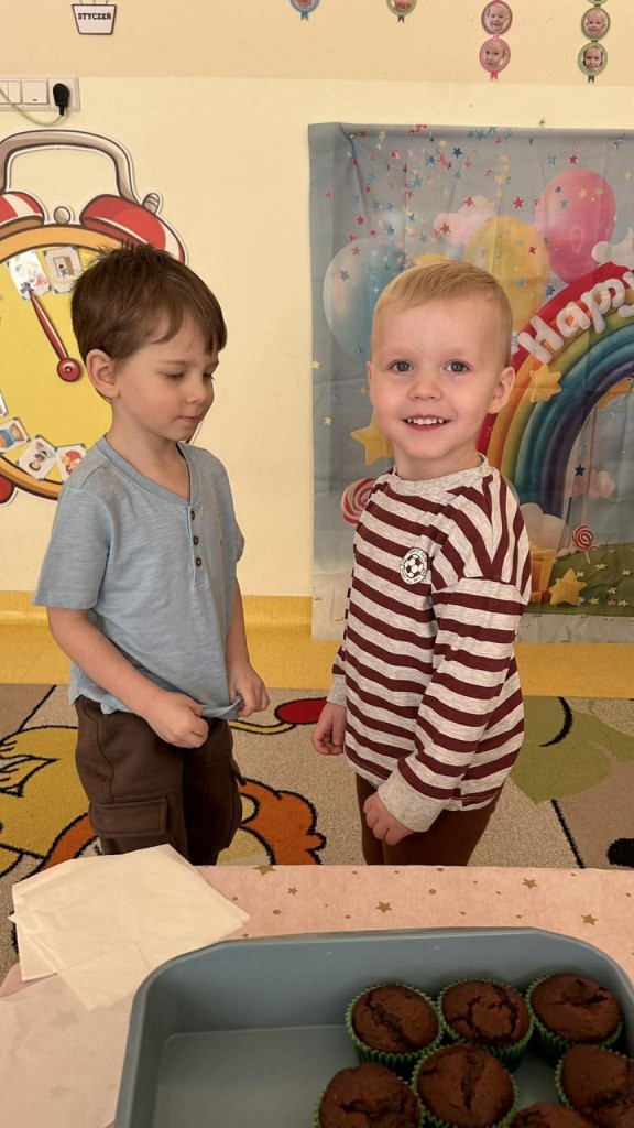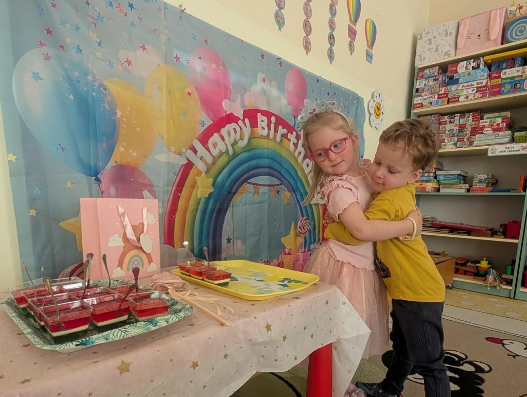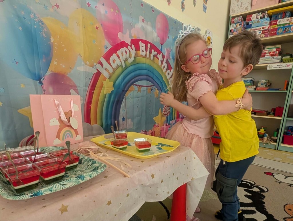 Samych uśmiechów, przyjaciół stu,Tysiąca przygód, bajecznych snów,Worka prezentów, uciech bez liku,Słonecznych dni, lodów na patykuI mnóstwa, mnóstwa słodyczy tego wam Alu i Maciusiu cała grupa życzy!