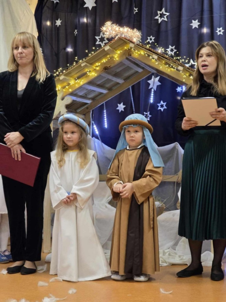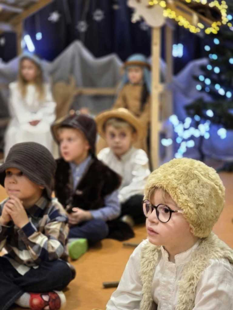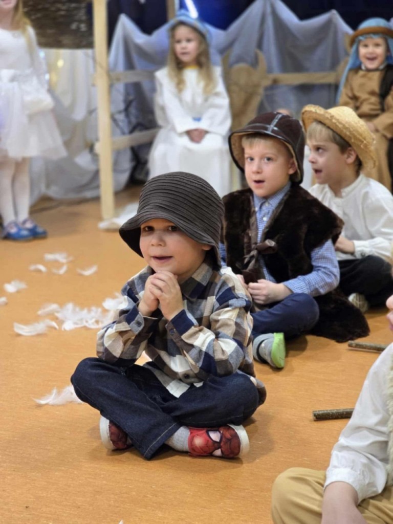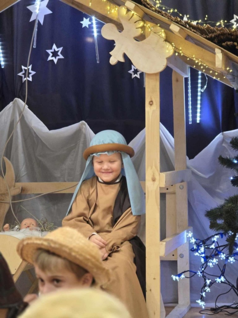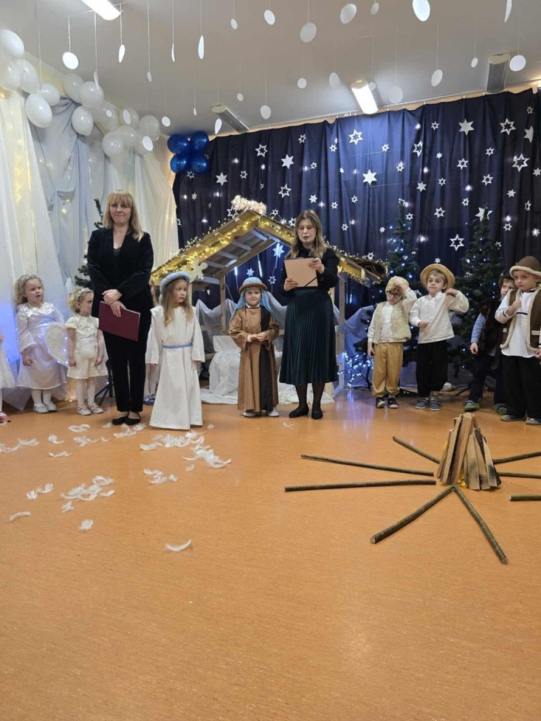 Dnia 19 grudnia odbyły się w naszej grupie Jasełka dla rodziców. Głównym celem tej uroczystości było wprowadzenie w radosną atmosferę, jaką przynoszą święta Bożego Narodzenia. Przedstawienie było wyjątkowe. My -Mali aktorzy, we wspaniałych strojach prezentowaliśmy się doskonale. Sala wypełniona była aniołkami i pasterzami, którzy wspólnie śpiewali kolędy oraz wspaniale recytowali przygotowane wierszyki. Takie podniosłe chwile nie tylko utrwalają nam znajomość tradycji i zwyczajów świątecznych, lecz wzmacniają serdeczne relacje między nami.