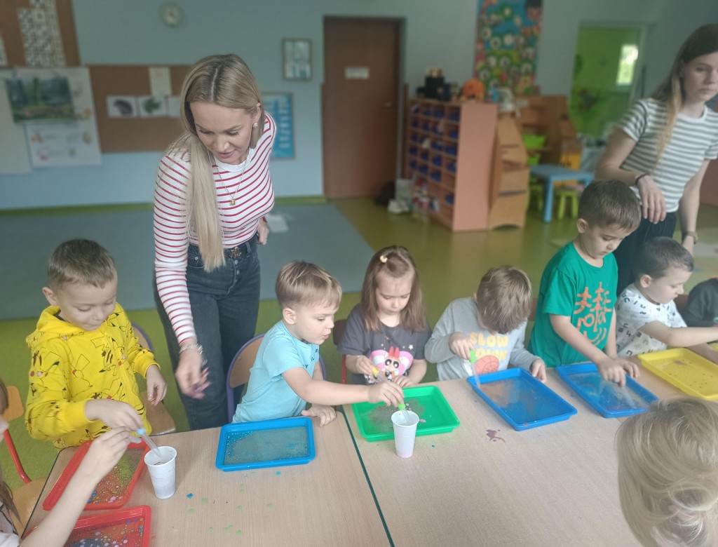 W ramach akcji Poznajemy zawody naszych rodziców mieliśmy przyjemność gościć mamę Jasia,która z zawodu również jest nauczycielem w przedszkolu. Dziękujemy Pani Justynie za zorganizowanie i przeprowadzenie z dziećmi ciekawych działań i zabaw pobudzających ich ciekawość, dziękujemy za poświęcony czas oraz zaangażowanie.