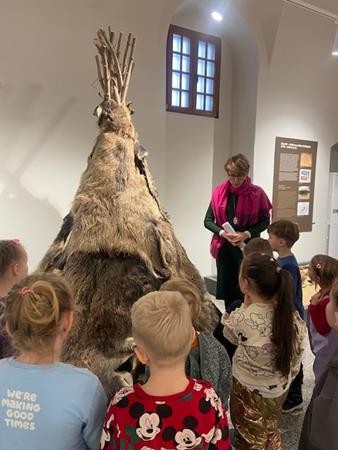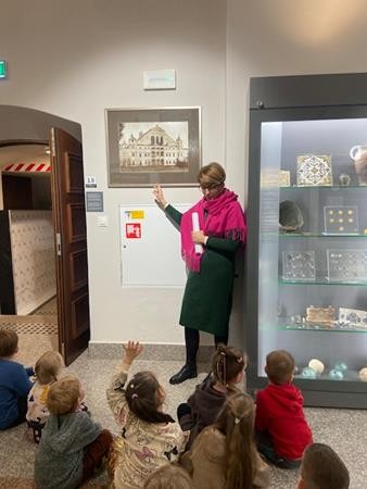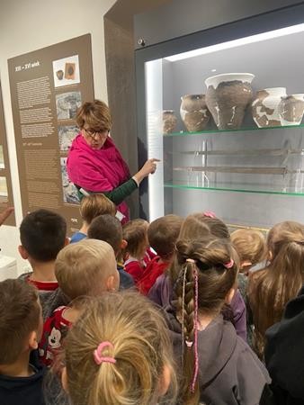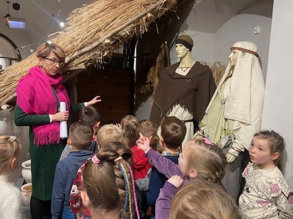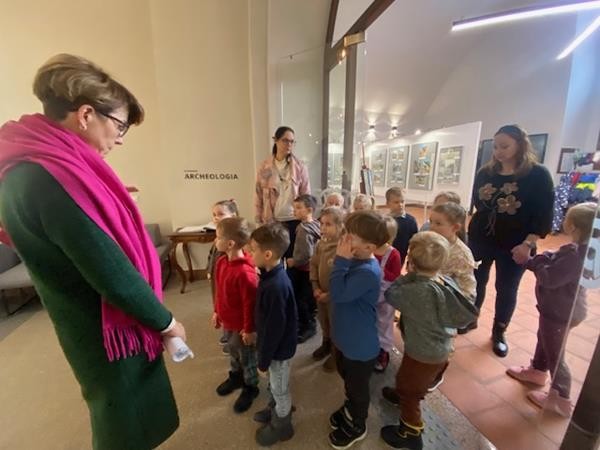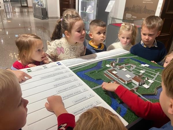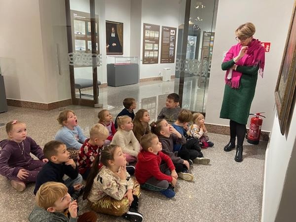 22 listopada w ramach realizacji tematyki związanej z poznawaniem różnych rodzajów sztuki wybraliśmy się do Muzeum Południowego Podlasia na lekcję muzealną, która odbyła się w zabytkowych obiektach pałacu Radziwiłłów. Celem lekcji było przybliżenie dzieciom życia naszych przodków oraz wskazanie podobieństw i różnic pomiędzy dawnym i obecnym stylem życia. Pani przewodnik zapoznała nas z historią XVIII – wiecznej rezydencji oraz z rodem Radziwiłłów. W muzeum obejrzeliśmy wiele ciekawych wystaw, które przedstawiały różne gatunki malarstwa oraz dzieła sztuki. Dzięki zajęciom w muzeum dowiedzieliśmy się również, co kryje się pod pojęciem wystawa, zabytek, eksponat. To było bardzo ciekawe i inspirujące spotkanie ze sztuką.