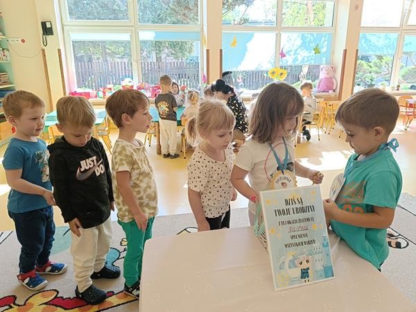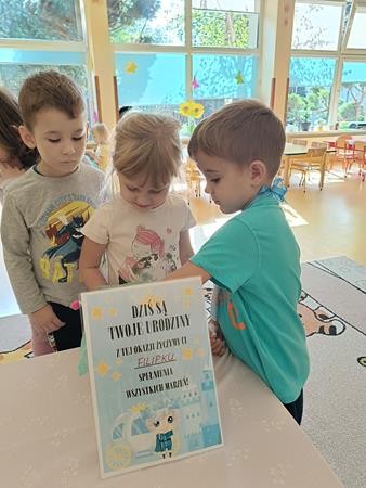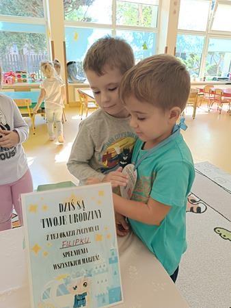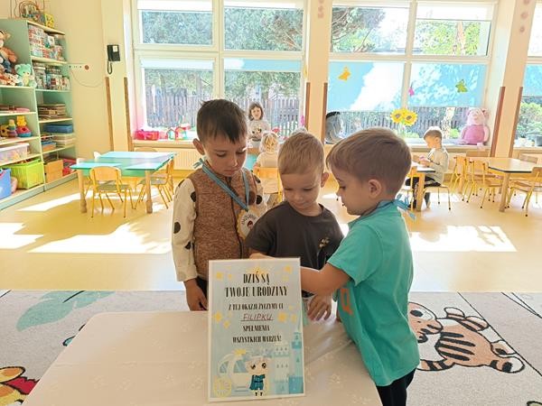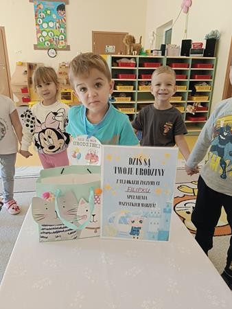 Wraz z początkiem roku przedszkolnego mieliśmy ogromną przyjemność świętować 4 urodziny Filipa. Dzieci zaśpiewały koledze piękne Sto lat ! A Filipek obdarował dzieci cukierkami. Raz jeszcze życzymy -przyjaźni wielkich i małych, wielu przygód niebywałych, uśmiechu wesołego i wszystkiego, wszystkiego najlepszego!
