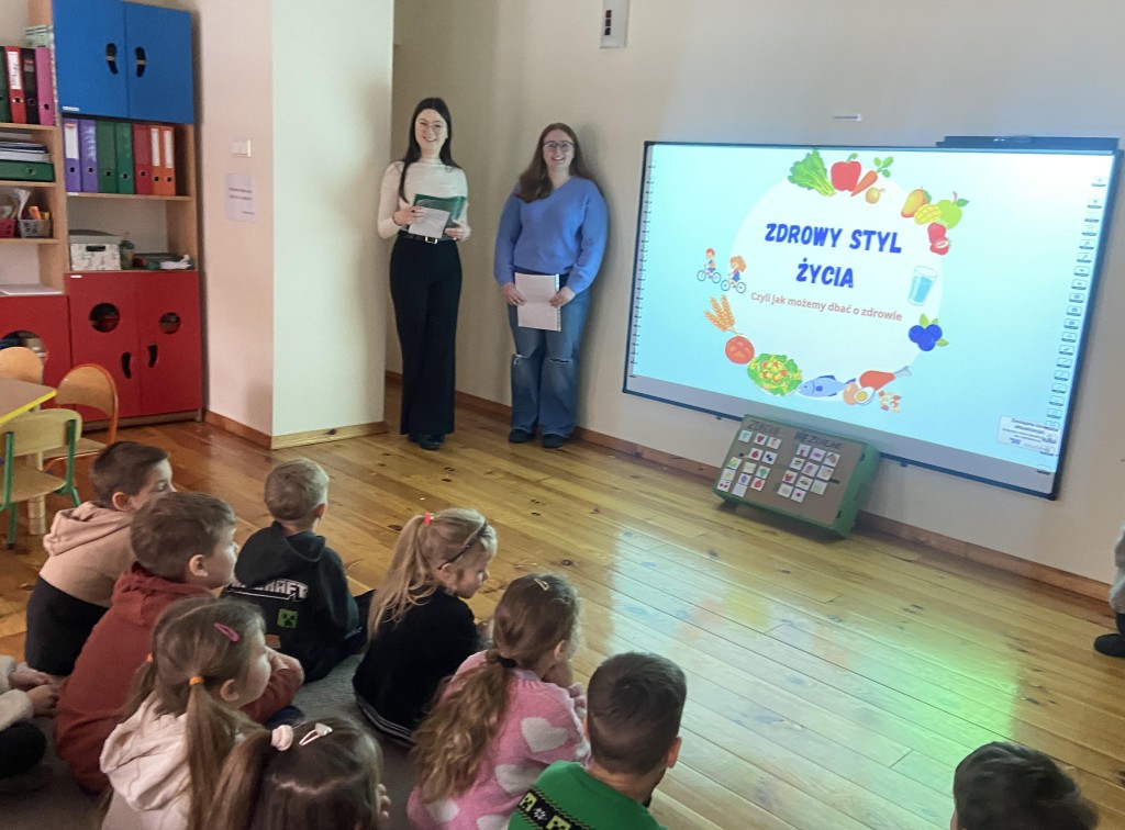 "Zdrowy styl życia"- to tematyka zajęć przygotowanych przez studentów Akademii Bialskiej, w których wzięły udział nasze 6 latki. Dzieci poprzez różne formy aktywności utrwalały treści bardzo ważne dla naszego zdrowia.