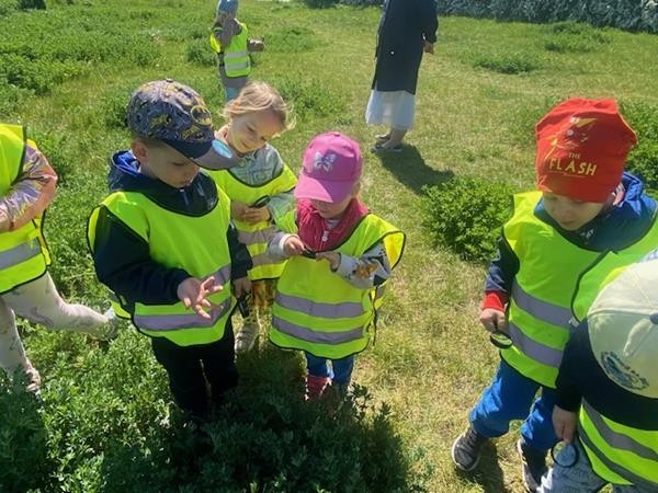 "Na majowej łące przypatrz się biedronce"- pod takim hasłem nasza grupa odwiedziła majową łąkę obserwując żyjące tam zwierzątka i roślinki. Za pomocą lup dzieci mogły obserwować biedronki, pająki, mrówki oraz roślinki, o których rozmawiały na zajęciach. Przedszkolaki świetnie bawiły się na łące, relaksując się, a jednocześnie doceniając piękno przyrody.