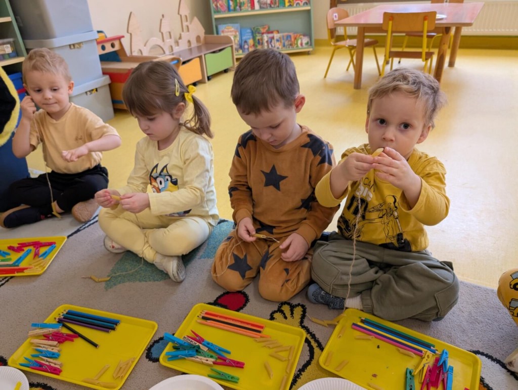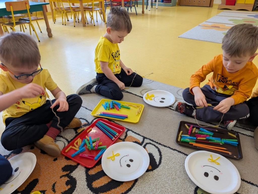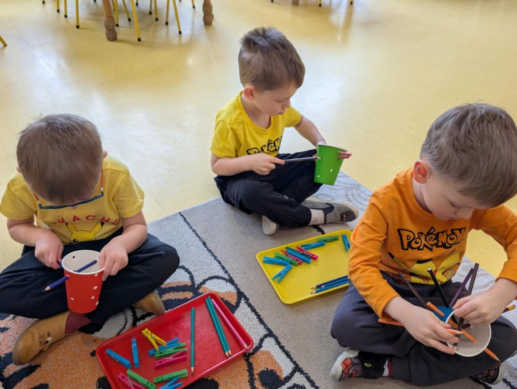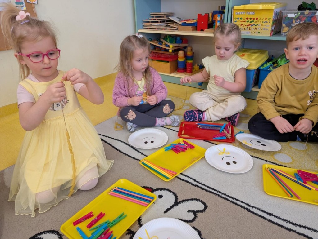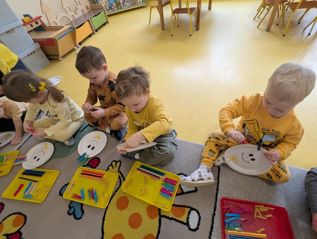 Dnia 13 stycznia świetnie bawiliśmy się podczas zajęć sensorycznych pt. "Sprawne paluszki - rozwijających motorykę małą. Na czym polegają zajęcia sensoryczne? Zajęcia te opierają się na stymulacji zmysłów: wzroku, słuchu, dotyku, smaku, węchu, a także zmysłu równowagi i propriocepcji (czucia głębokiego). Celem jest usprawnienie integracji sensorycznej, czyli procesu, w którym mózg prawidłowo odbiera, interpretuje i reaguje na bodźce z otoczenia. Dzieci, które mają dobrze rozwiniętą integrację sensoryczną, lepiej radzą sobie z codziennymi wyzwaniami, takimi jak ubieranie się, pisanie czy skupienie uwagi w przedszkolu.