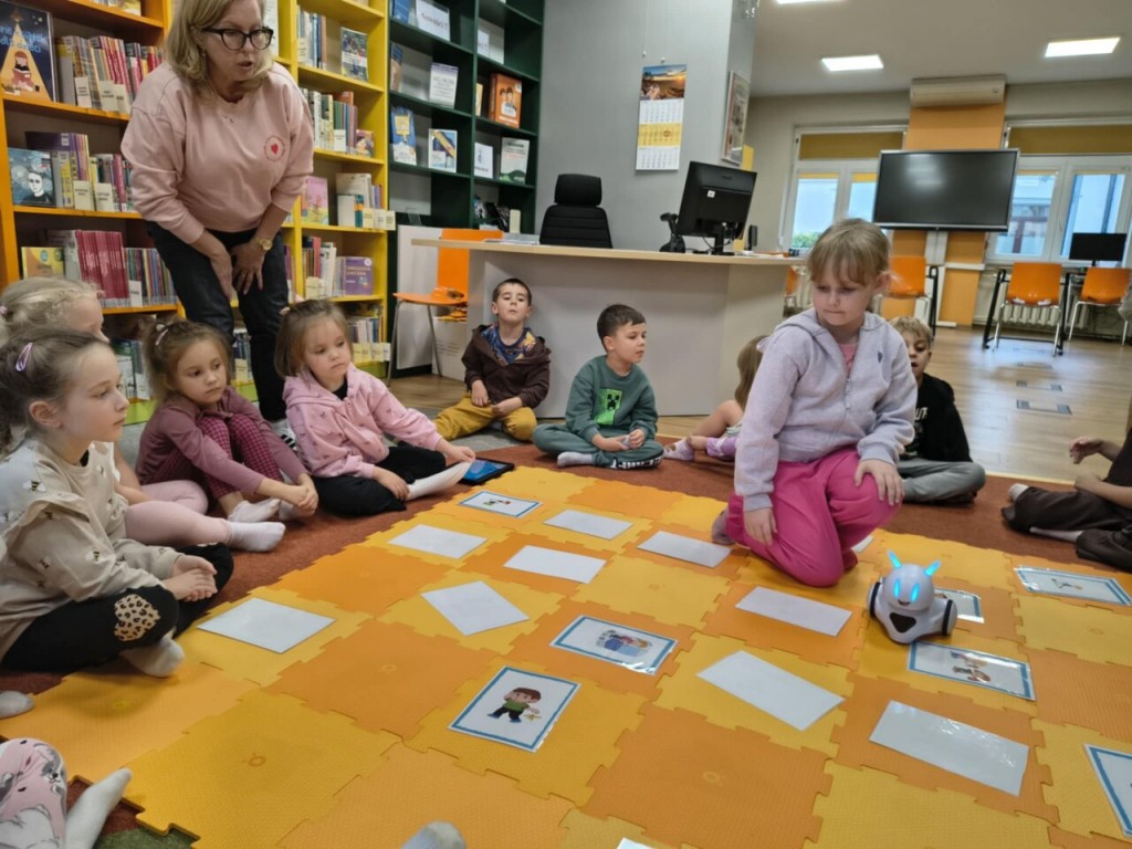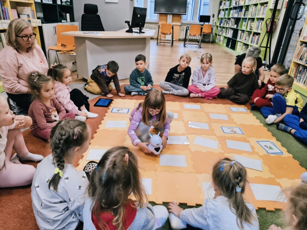 W dniu 16 września wybraliśmy się na nasze pierwsze w tym roku szkolnym zajęcia do Biblioteki Pedagogicznej w Białej Podlaskiej. Podczas zajęć musieliśmy wyznaczyć trasę na tablecie dla robota tak, aby odkryć obrazek, ktury był umieszczony na specjalnej macie do kodowania. Nie było to łatwe zadanie, trzeba było się wykazać umiejętnością liczenia, wyznaczania kierunków i spostrzegawczością wzrokową, ale sobie poradziliśmy. Dziękujemy za zajęcia, jak zawsze wiele się nauczyliśmy.