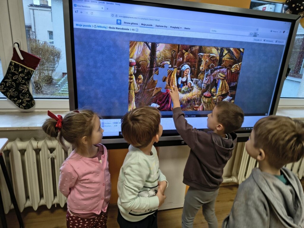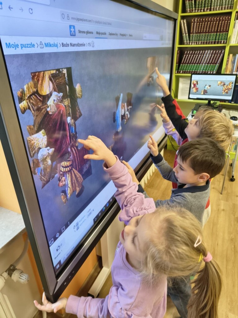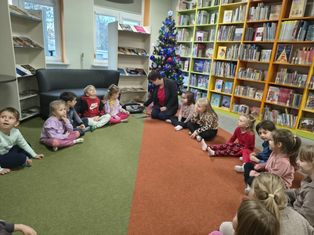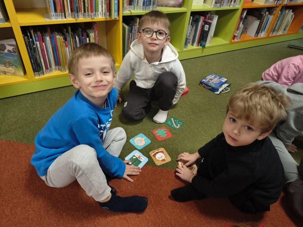 W grudniu wybralismy się na świąteczne zajęcia do Biblioteki Pedagogicznej w Białej Podlaskiej.Podczas zajęć mieliśmy okazję poznać tradycje i zwyczaje Świąt Bożego Narodzenia. Układaliśmy układanki, memory oraz puzzle na tablicy multimedialnej o tematyce świątecznej. Na zakończenie pięknie podziękowaliśmy i złożyliśmy życzenia z okazji Świąt Bożego Narodzenia.