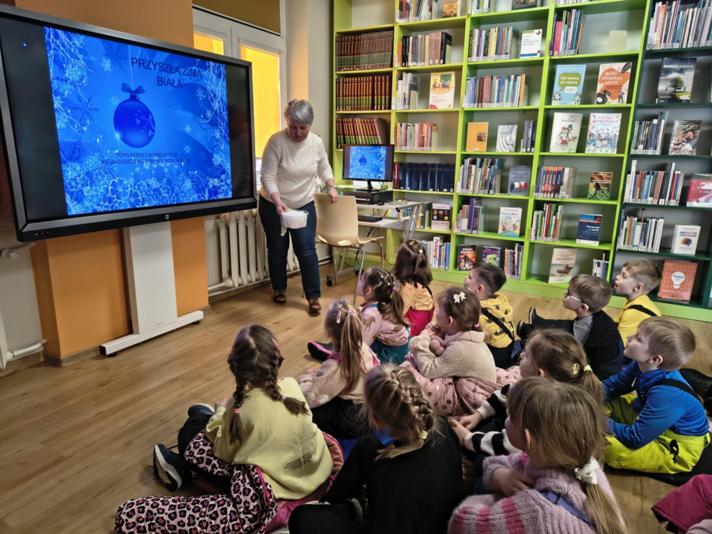 W styczniu podczas zajęć bibliotecznych w Bibliotece Pedagogicznej w Białej Podlaskiej poznaliśmy cechy charakterystyczne pory roku jaką jest zima oraz poznaliśmy zasady bezpiecznej zabawy na śniegu. Dziękujemy za pouczające zajęcia.