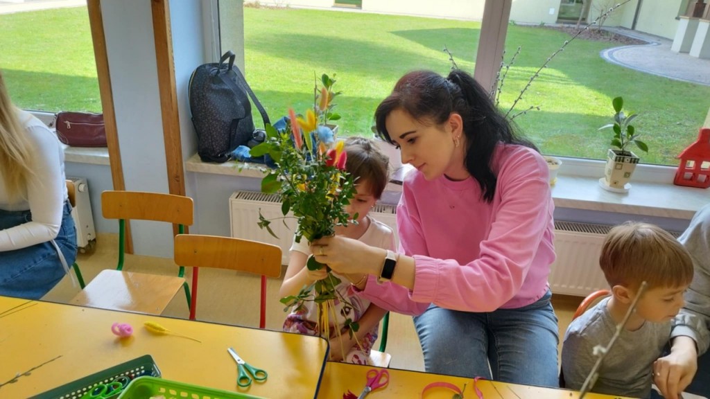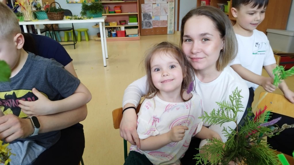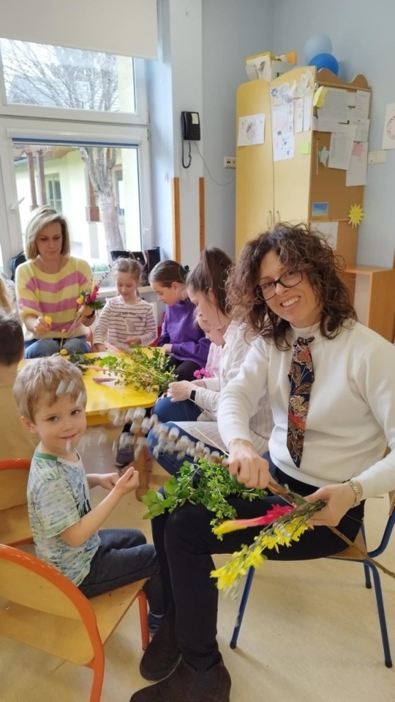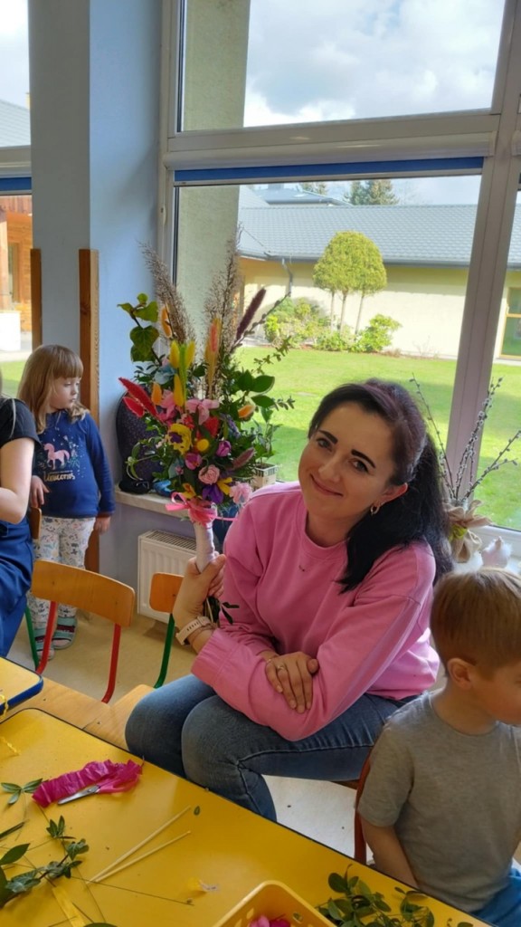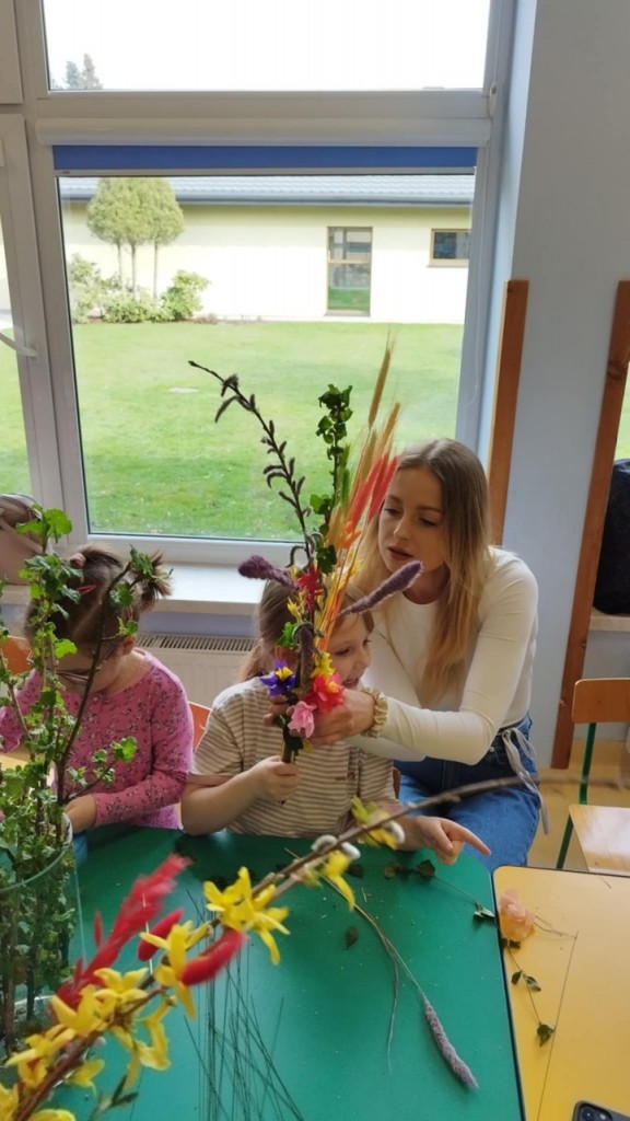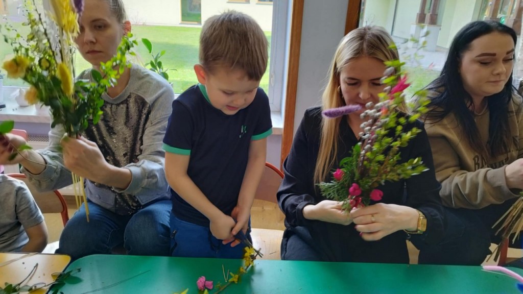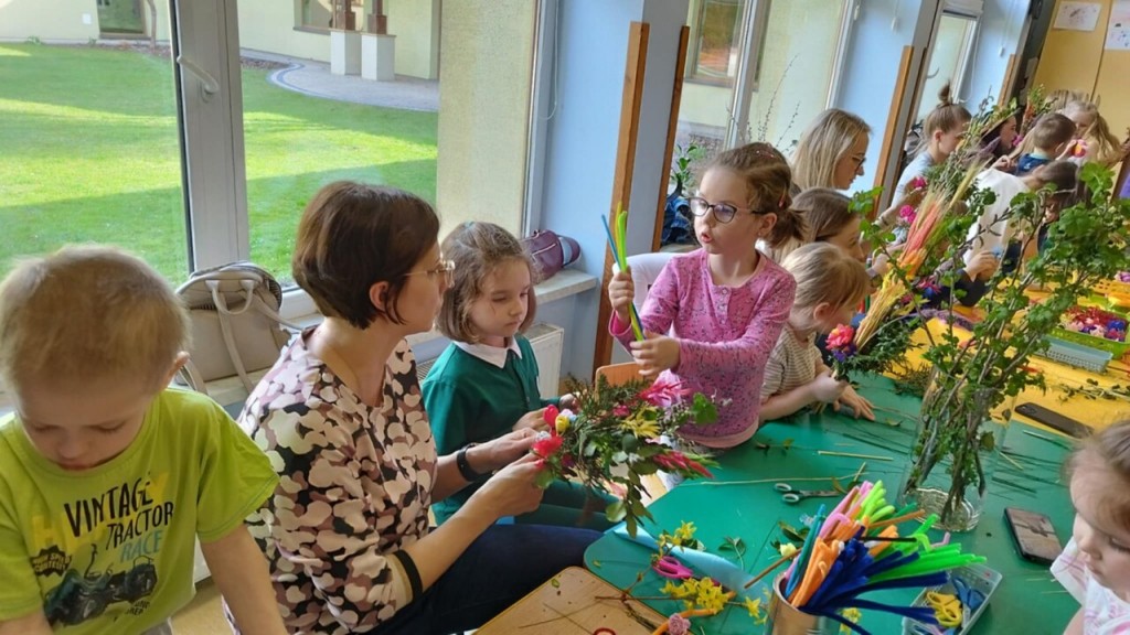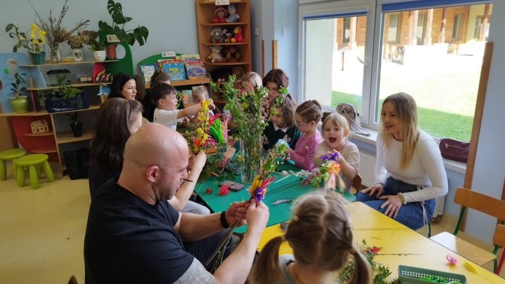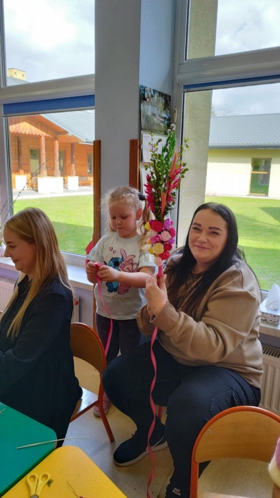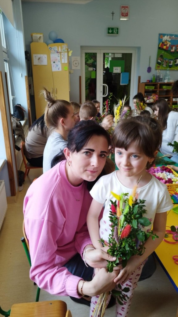 Dnia 8 kwietnia podczas zajęć otwartych z naszymi rodzicami mieliśmy zaszczyt i przyjemność gościć Panie z Koła Gospodyń Wiejskich z Koroszczyna. Panie przybliżyły nam tradycje ludowe związane ze Świętami Wielkanocnymi oraz wyjaśniły z czego i jak powinno się tworzyć palmę wielkanocną. Następnie wspólnie z rodzicami pod czujnym okiem „Ekspertów” wykonywaliśmy palmy. Wyszły przepiękne, kolorowe, każda inna i niepowtarzalna…A na zakończenie pięknie podziękowaliśmy i wręczyliśmy małe upominki dla naszych gości. Pięknie dziękujemy Paniom za odwiedziny w naszej grupie i podzielnie się z nami swoją wiedzą na temat zwyczajów ludowych.