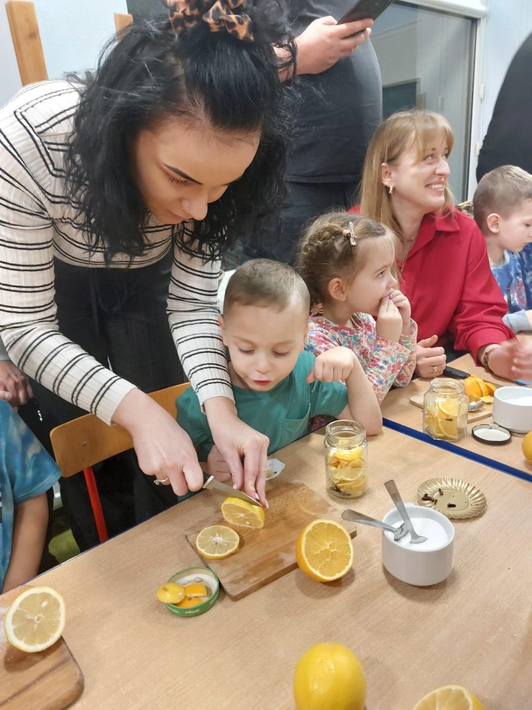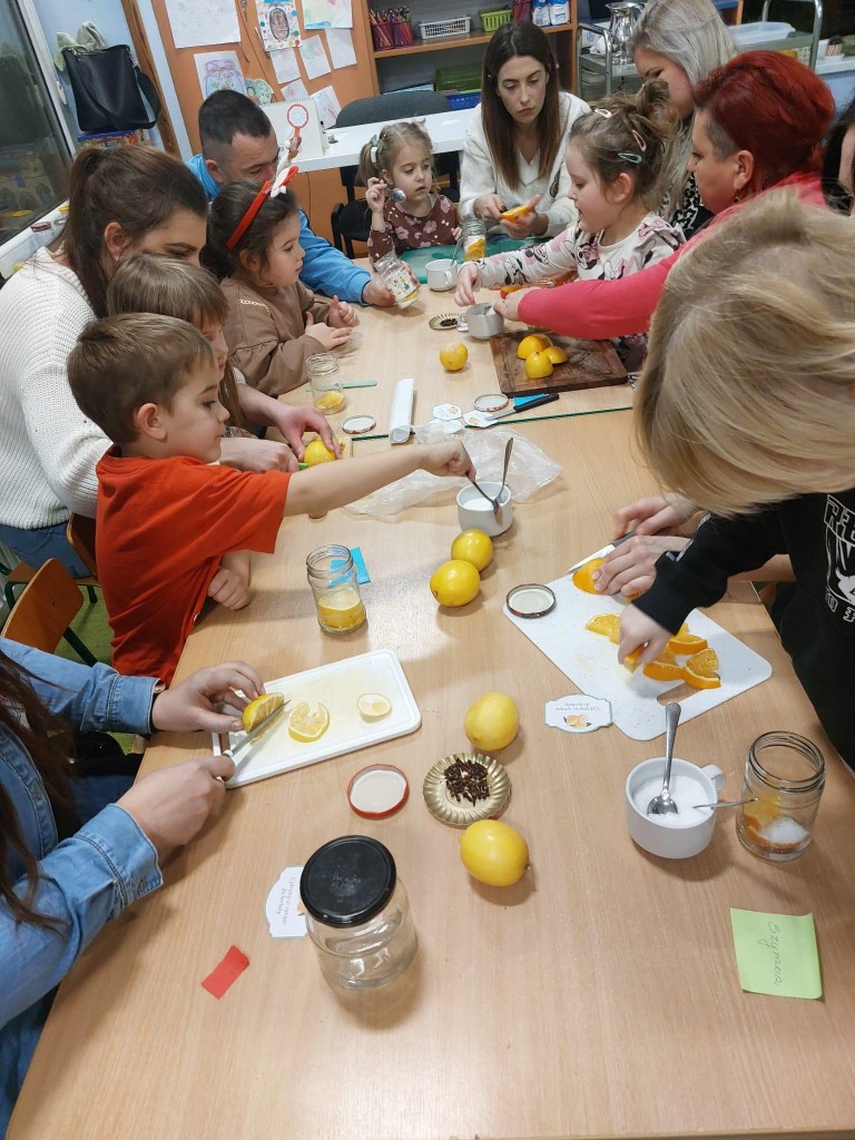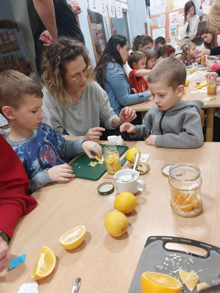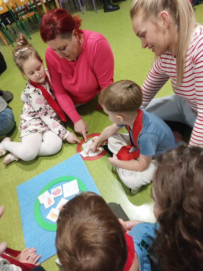 "Zdrowy mini turniej rodzinny"- pod takim hasłem przebiegły zajęcia otwarte w naszej grupie. Dzieci wspólnie z rodzicami miały do wykonania zadania z zakresu dbania o swoje zdrowie . 4/5 latki wykazały się dużą wiedzą na temat zdrowego odżywiania oraz innych sposobów na to aby być silnym i zdrowym. Na koniec wspólnych działań dzieci z rodzicami przygotowały syrop cytrynowy do herbaty- na pewno przyda się po powrocie do domku z jesiennego spaceru. Dziękujemy rodzicom za wspólną zabawę.