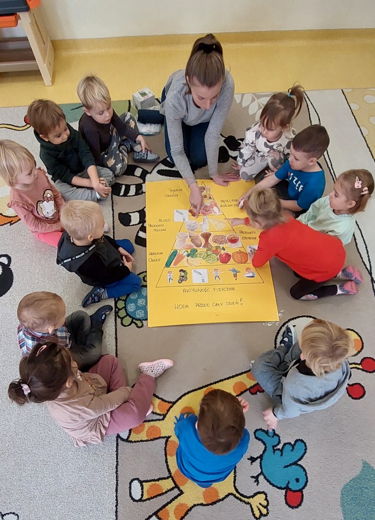 W ramach realizacji projektu Ministerstwa Zdrowia ,, Zdrowe dzieci" nasze przedszkolaki zgłębiały wiedzę na temat zdrowego odżywiania. Poznały piramidę zdrowego odżywiania oraz dowiedziały się ,że ruch to zdrowie !