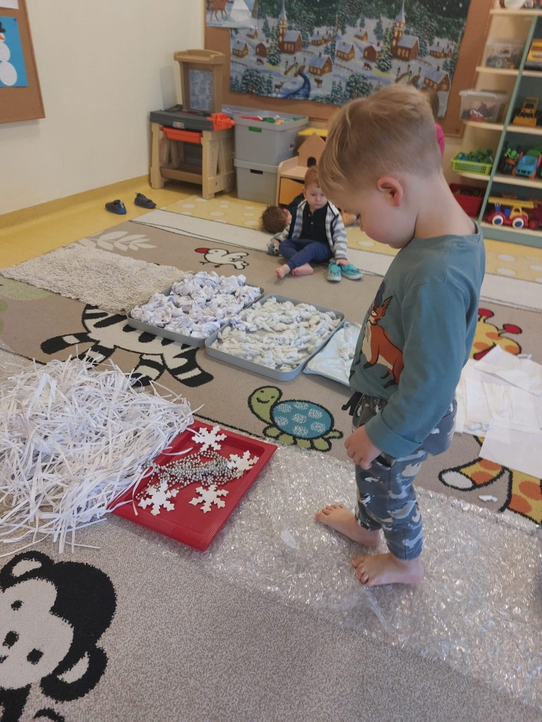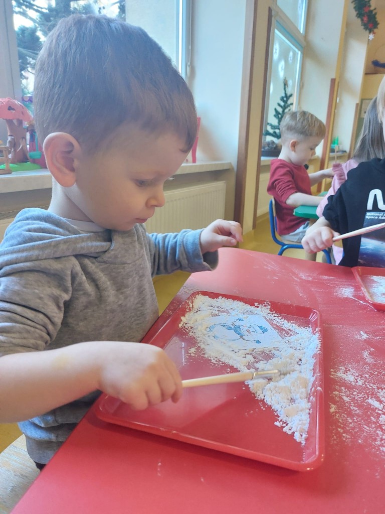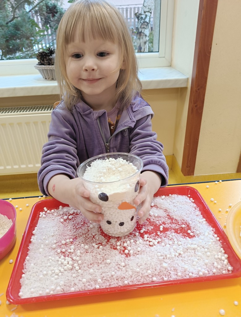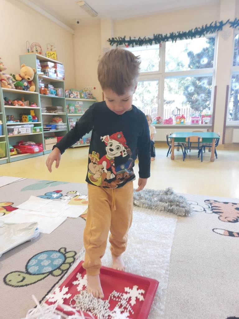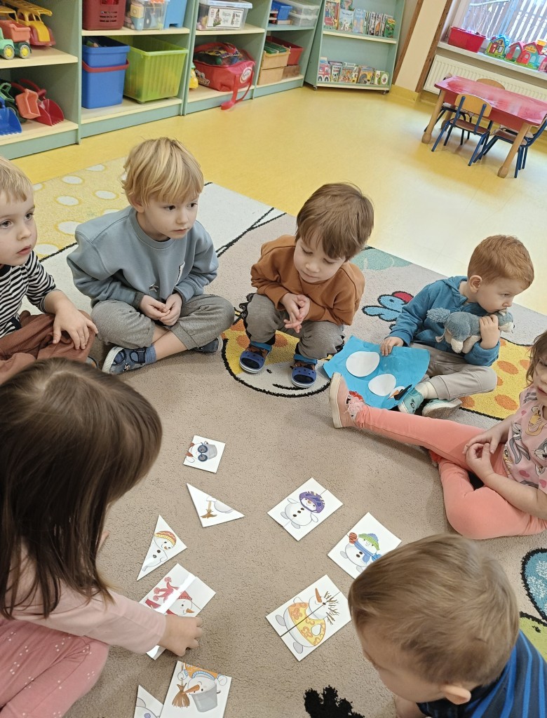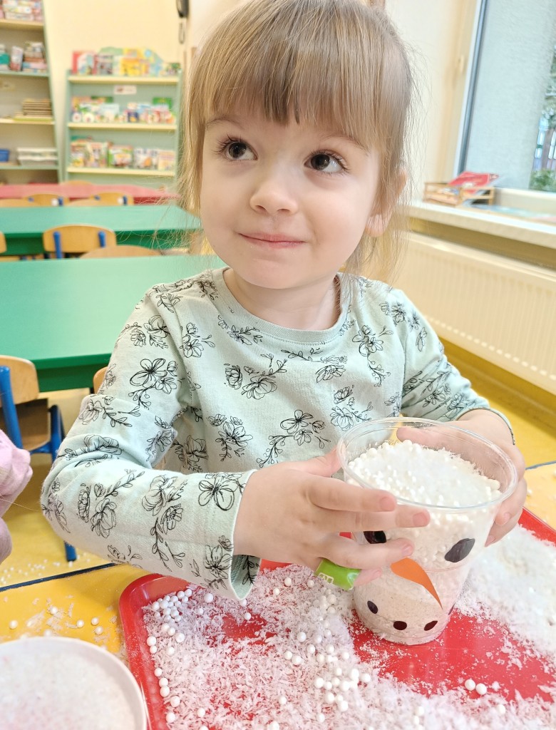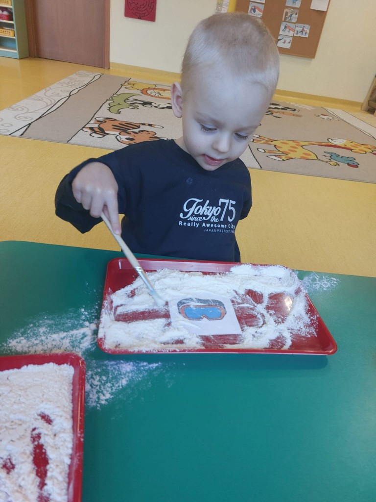 W minionym tygodniu dzieci realizowały temat związany z zimowymi zabawami. Tydzień zaczęliśmy zajęciami o tym,jak bezpiecznie bawić się zimą. I choć za oknem śniegu brak,my stworzyliśmy zimowa atmosferę w naszej sali. Dzieci spacerowały po ścieżce sensorycznej, zabawiliśmy się w zimowe odśnieżanie. Usypaliśmy bałwanki z różnych materiałów sypkich przy okazji ćwicząc sprawność małych rączek. W oparciu o wiersz D. Kossakowskiej dzieci "ulepily" bałwana. Nie zabrakło również zabaw rytmiczno-ruchowych oraz spacerów na świeżym powietrzu.