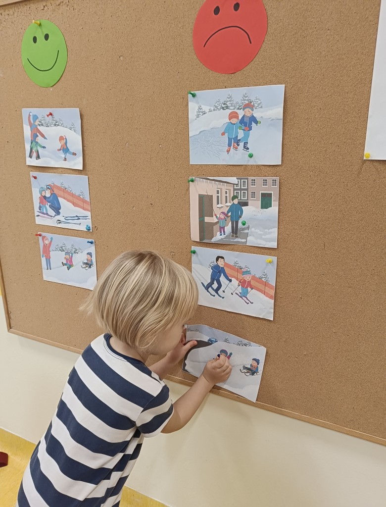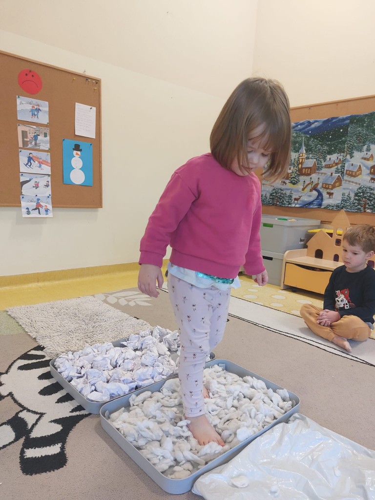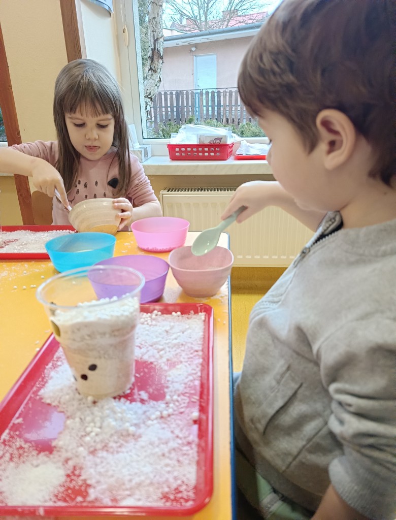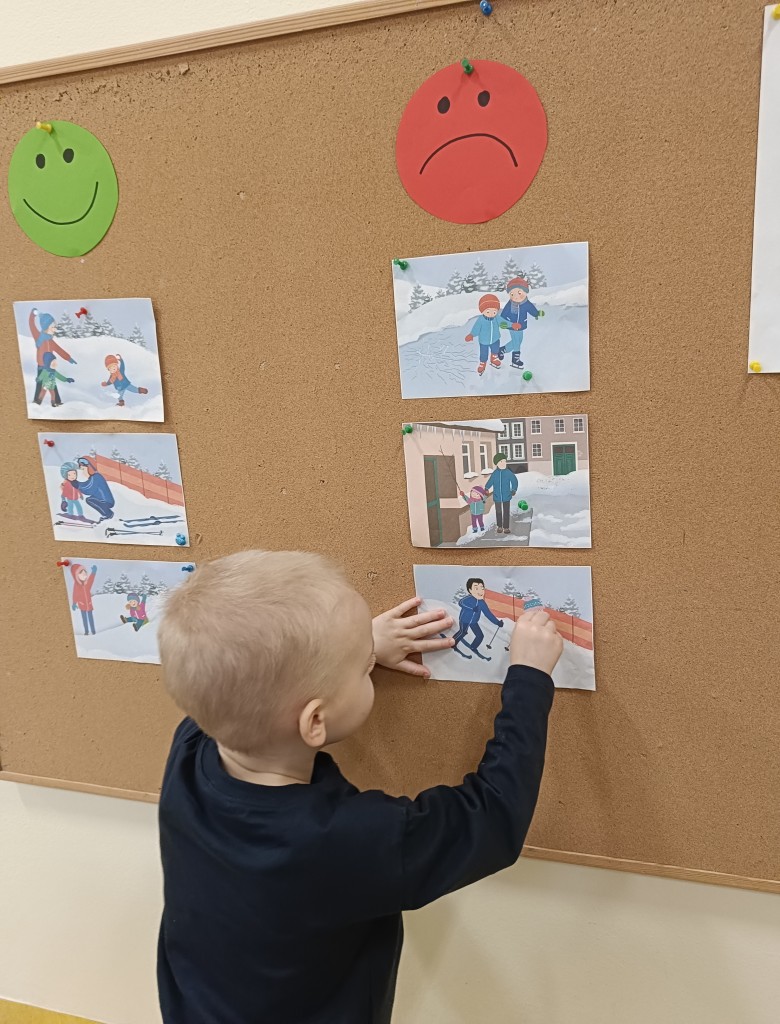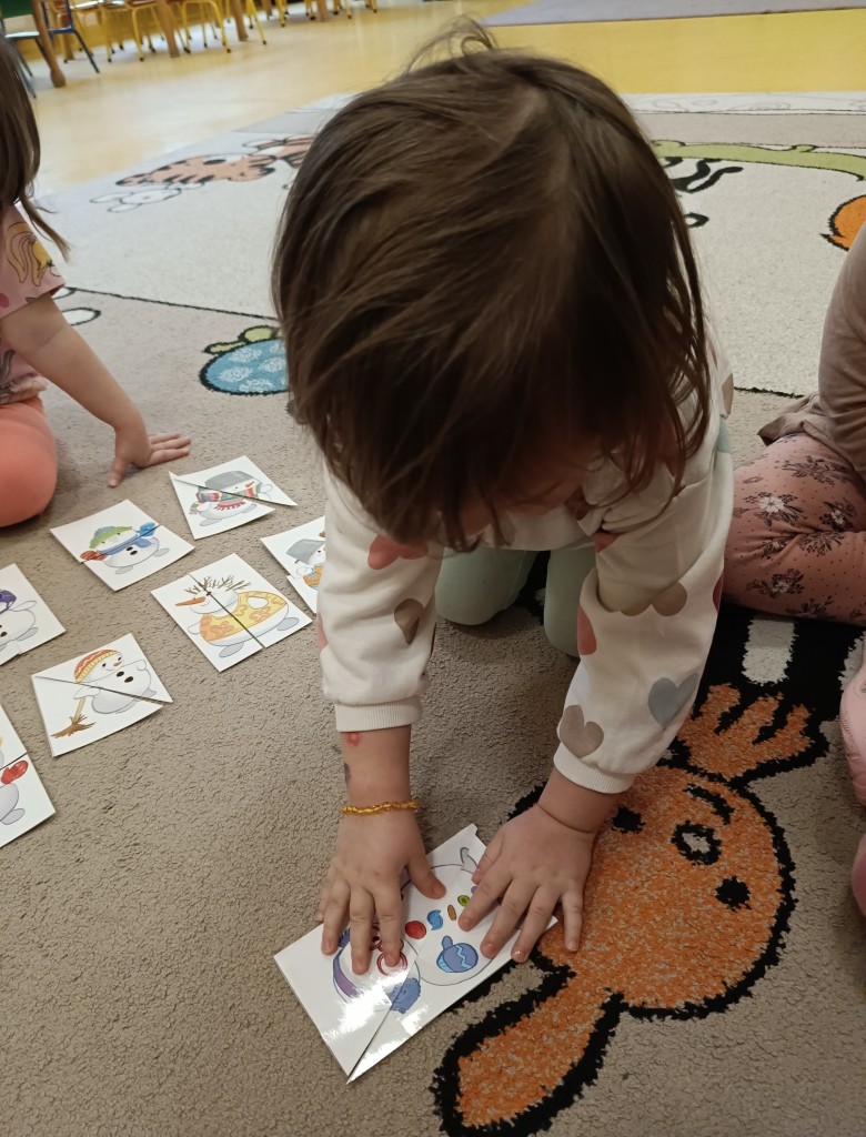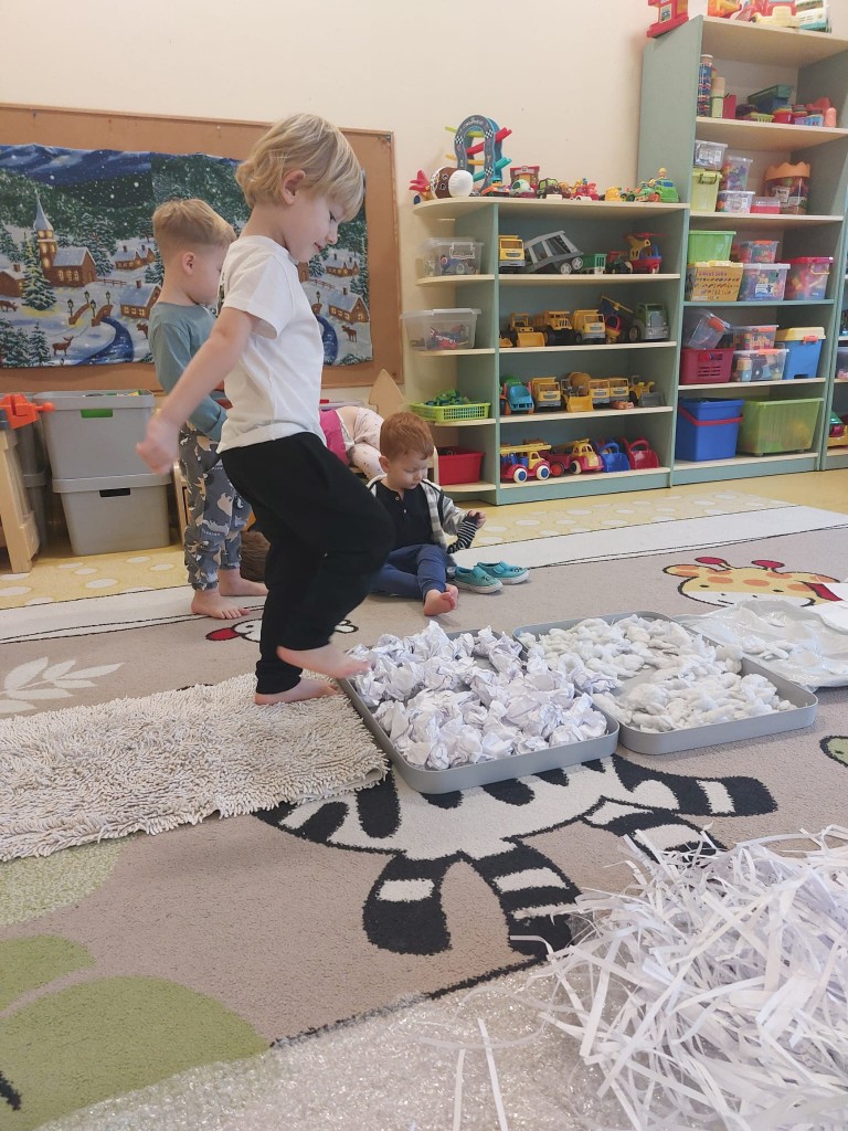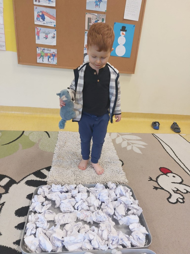 W minionym tygodniu dzieci realizowały temat związany z zimowymi zabawami. Tydzień zaczęliśmy zajęciami o tym,jak bezpiecznie bawić się zimą. I choć za oknem śniegu brak,my stworzyliśmy zimowa atmosferę w naszej sali. Dzieci spacerowały po ścieżce sensorycznej, zabawiliśmy się w zimowe odśnieżanie. Usypaliśmy bałwanki z różnych materiałów sypkich przy okazji ćwicząc sprawność małych rączek. W oparciu o wiersz D. Kossakowskiej dzieci "ulepily" bałwana. Nie zabrakło również zabaw rytmiczno-ruchowych oraz spacerów na świeżym powietrzu.