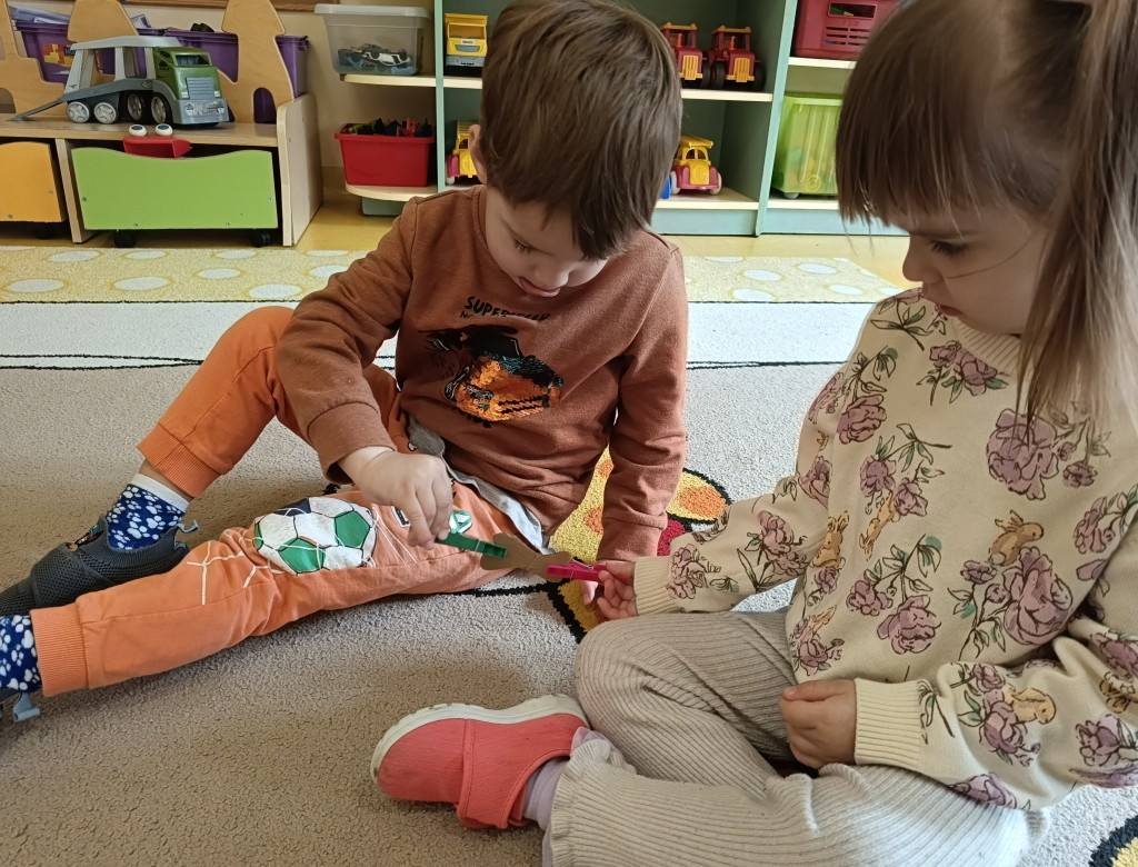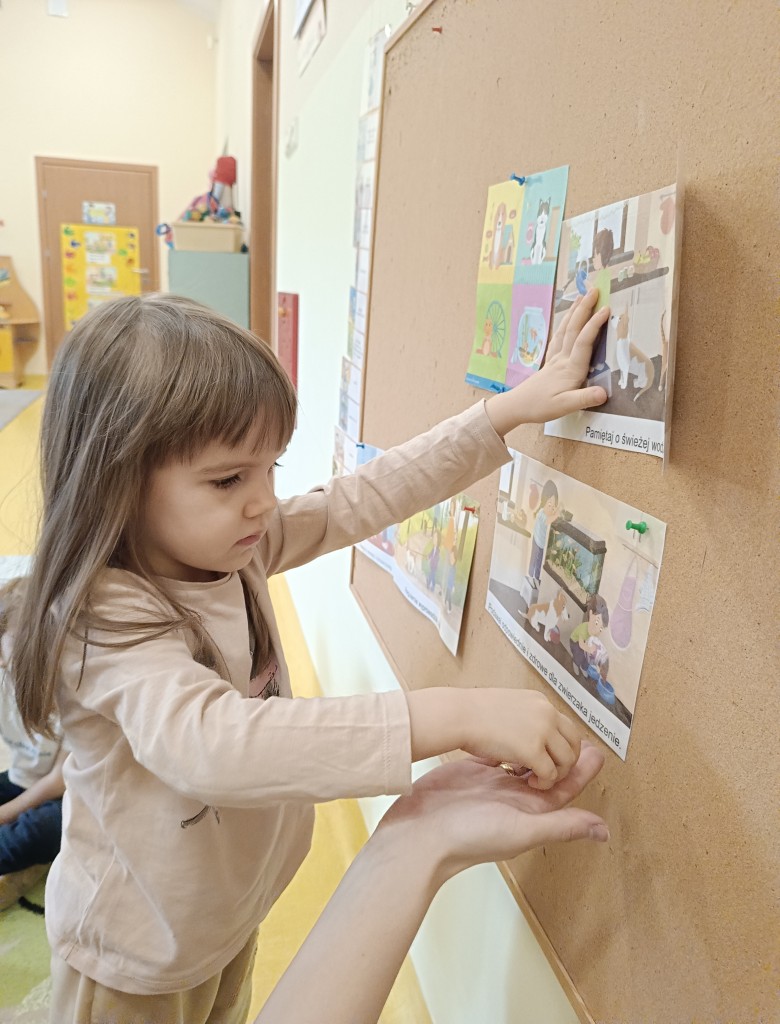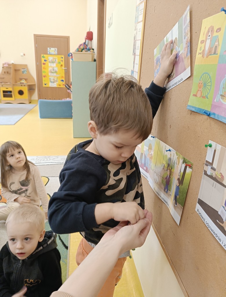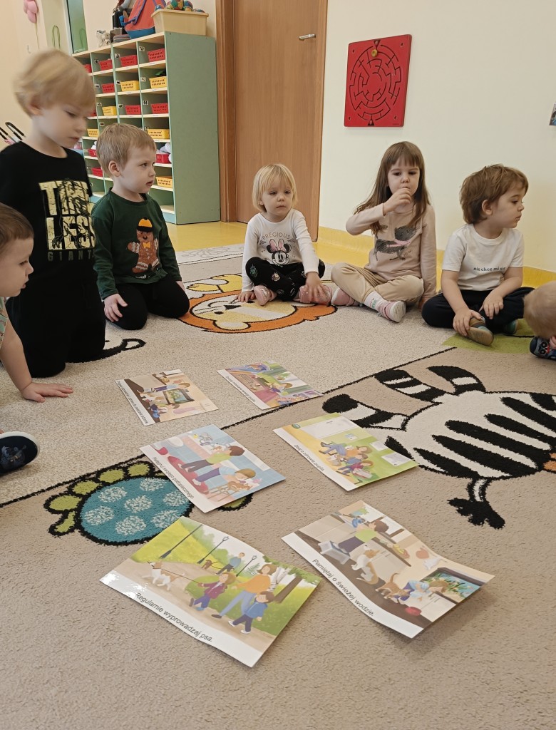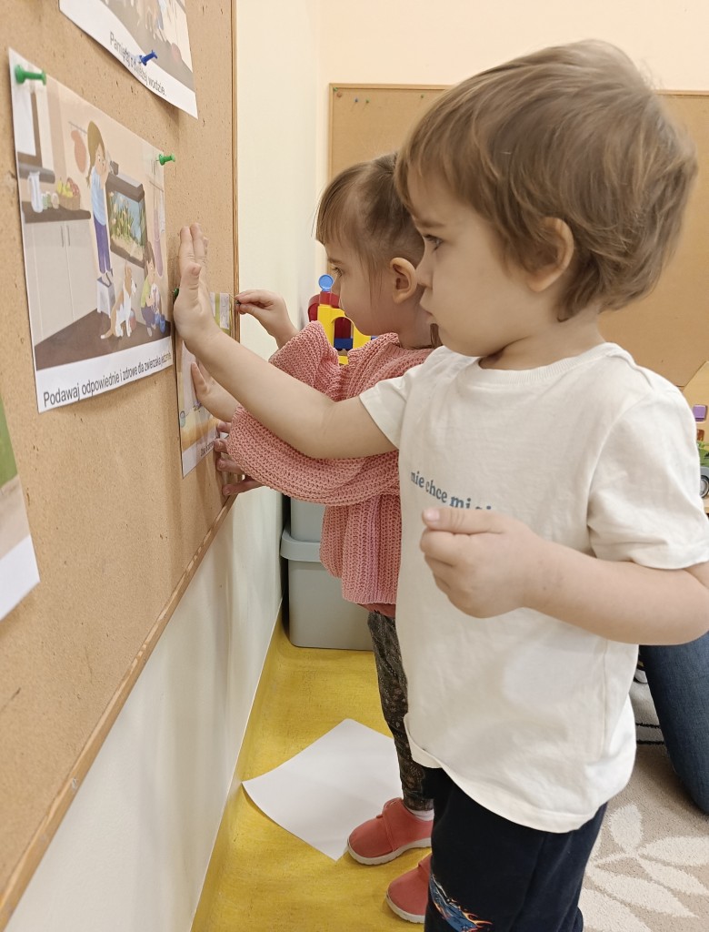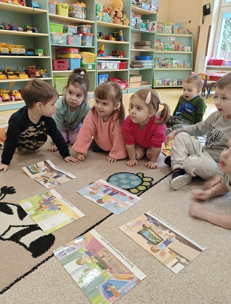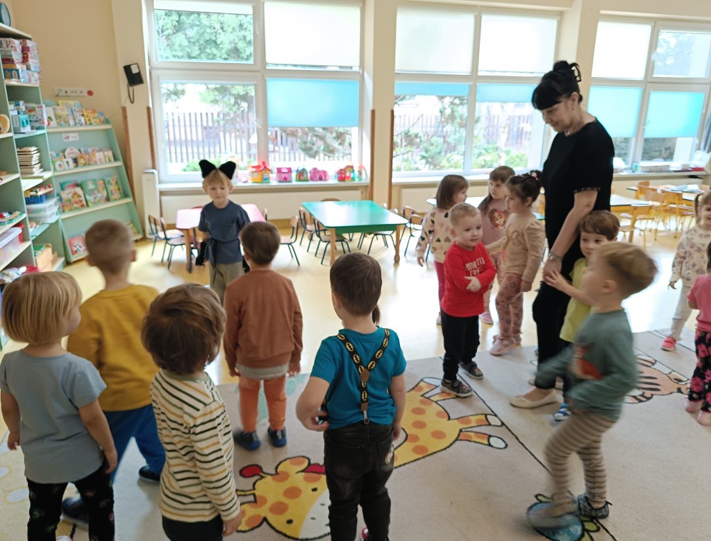 Nasze najmłodsze przedszkolaki poznawały zwierzęta mieszkające w domu. Mówiły o swoich marzeniach posiadania własnego zwierzątka. Dowiedziały się jakie potrzeby i zwyczaje mają zwierzęta mieszkające w domu, a także w jaki sposób należy codziennie opiekować się i dbać o swoich pupili. Maluszki chętnie naśladowały zwierzątka, oraz ćwiczyły sprawność małych rączek. Na zakończenie całego tygodnia wykonały pracę plastyczną- kotka.