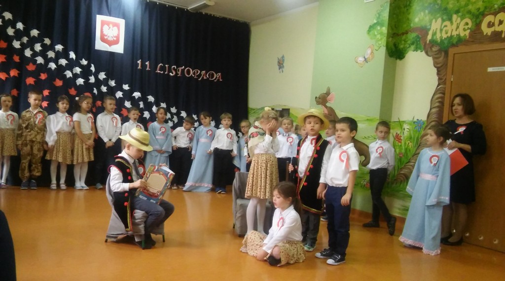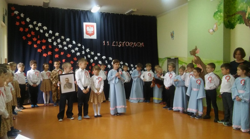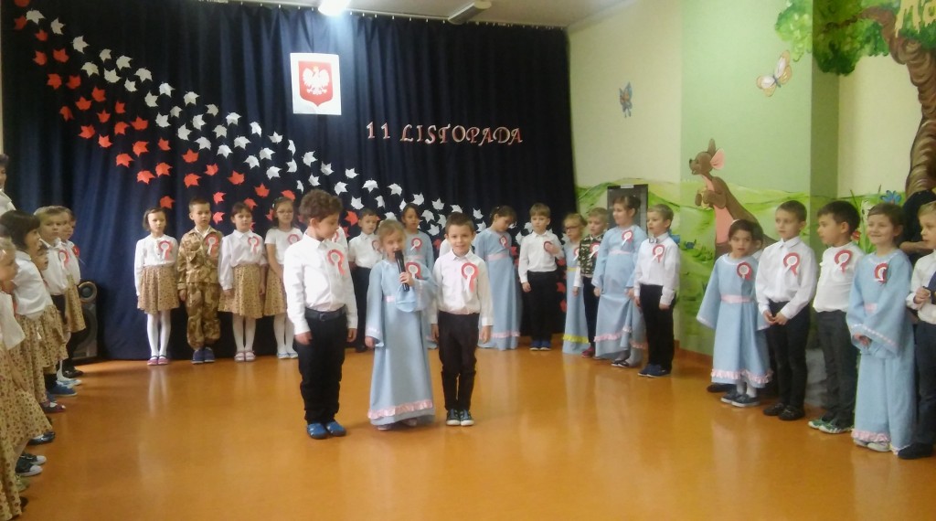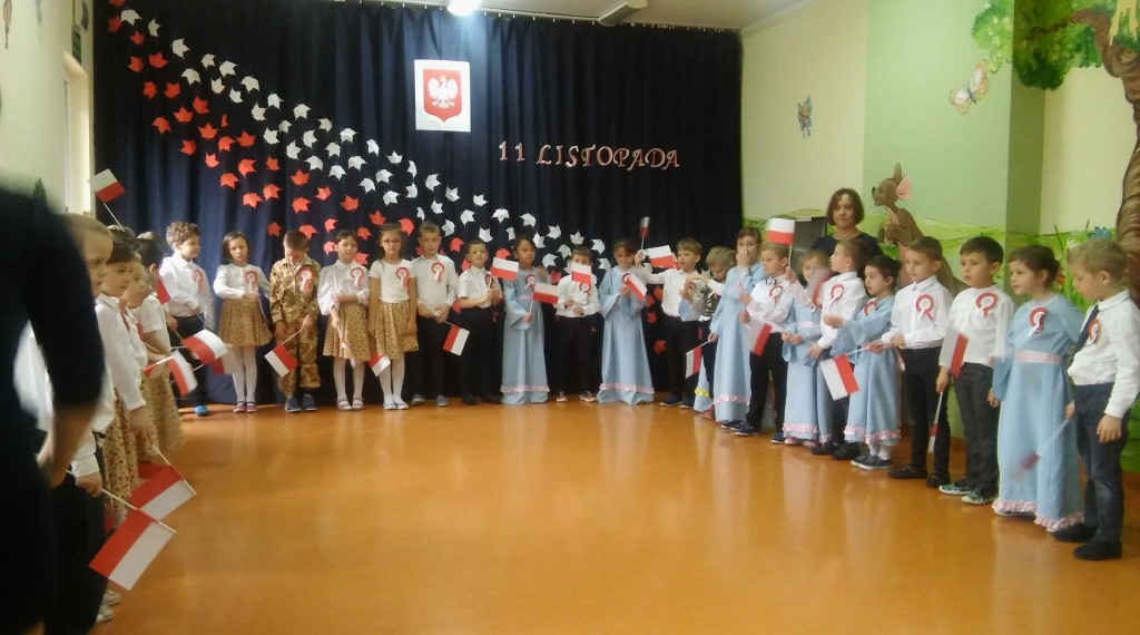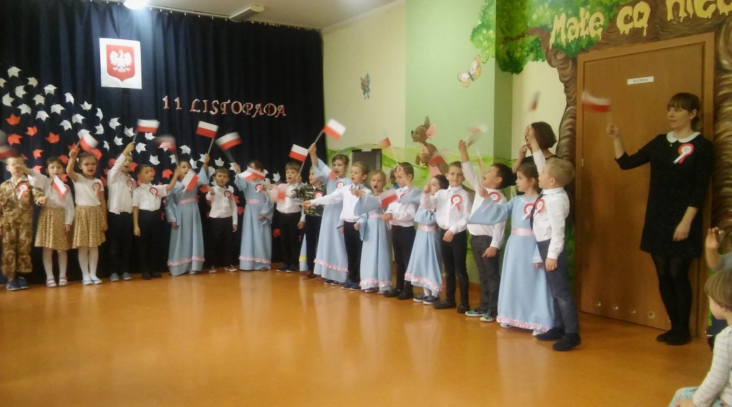 Dzień 11 listopada to niezwykle ważna data dla każdego Polaka - to dzień, kiedy nasza ojczyzna odzyskała wolność po wielu latach niewoli. Znaczenie tego wydarzenia oraz szacunek i miłość do naszego kraju staramy się ukazywać dzieciom już od najmłodszych lat. Z tej okazji , we czwartek 9 listopada, w murach naszego przedszkola odbyła się uroczysta akademia z okazji Święta Niepodległości, przygotowana przez I i II grupę 6 latków. Atmosfera podczas uroczystości była bardzo podniosła i niezwykle wzruszająca. Warto docenić wysiłek naszych kochanych przedszkolaków. Przedstawiły one trudne treści historyczne w sposób bardzo przystępny dla swoich młodszych kolegów i koleżanek. Ale przede wszystkim przypomniały, jak wielkim darem jest życie w wolnej Ojczyźnie. Niektórym dorosłym zakręciła się łza w oku na widok małych patriotów. Z tego młodego pokolenia Polaków naprawdę możemy być dumni. I jesteśmy. Dziękujemy!