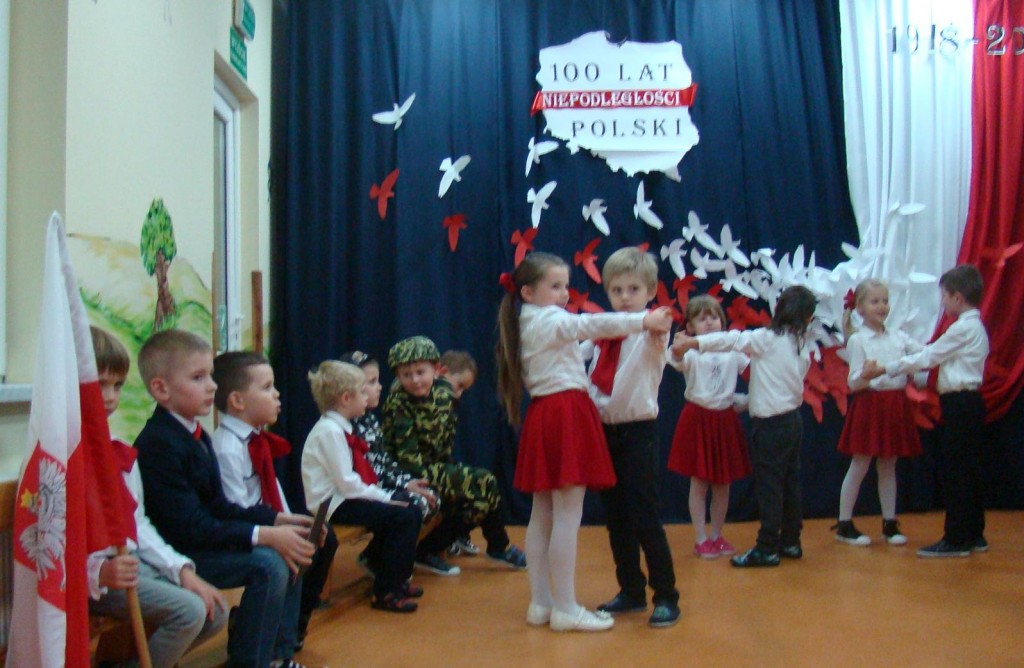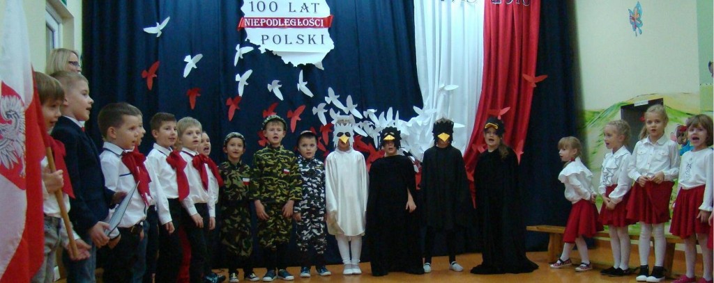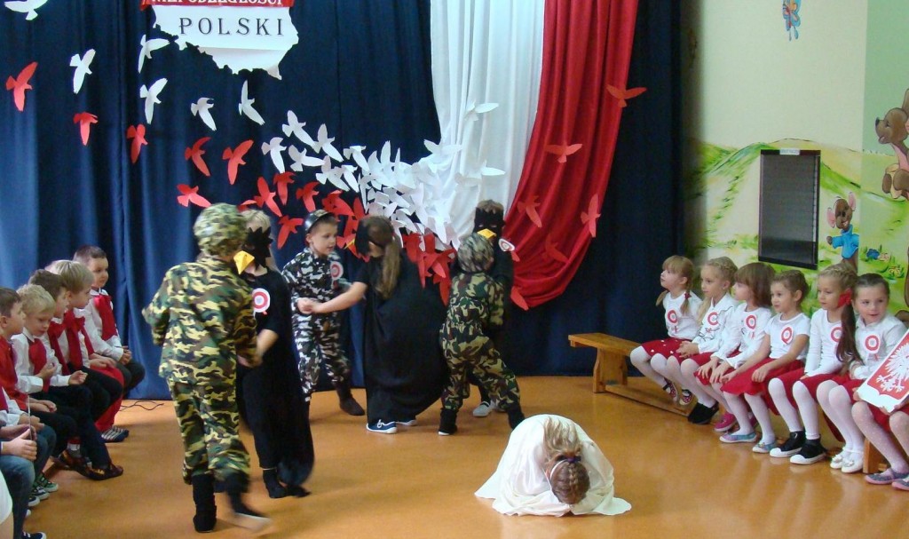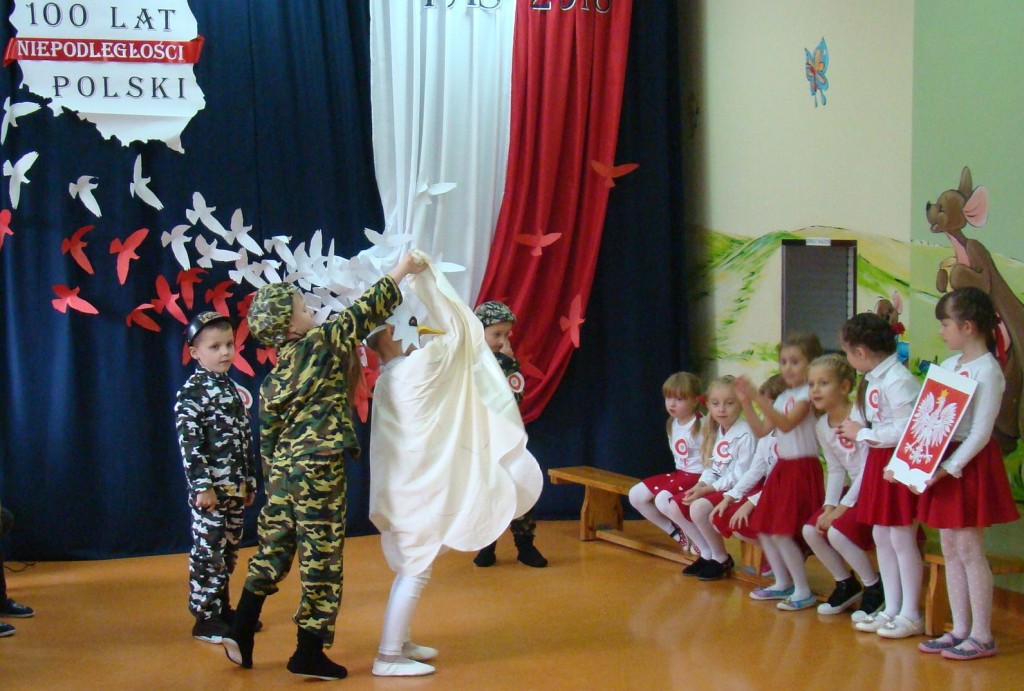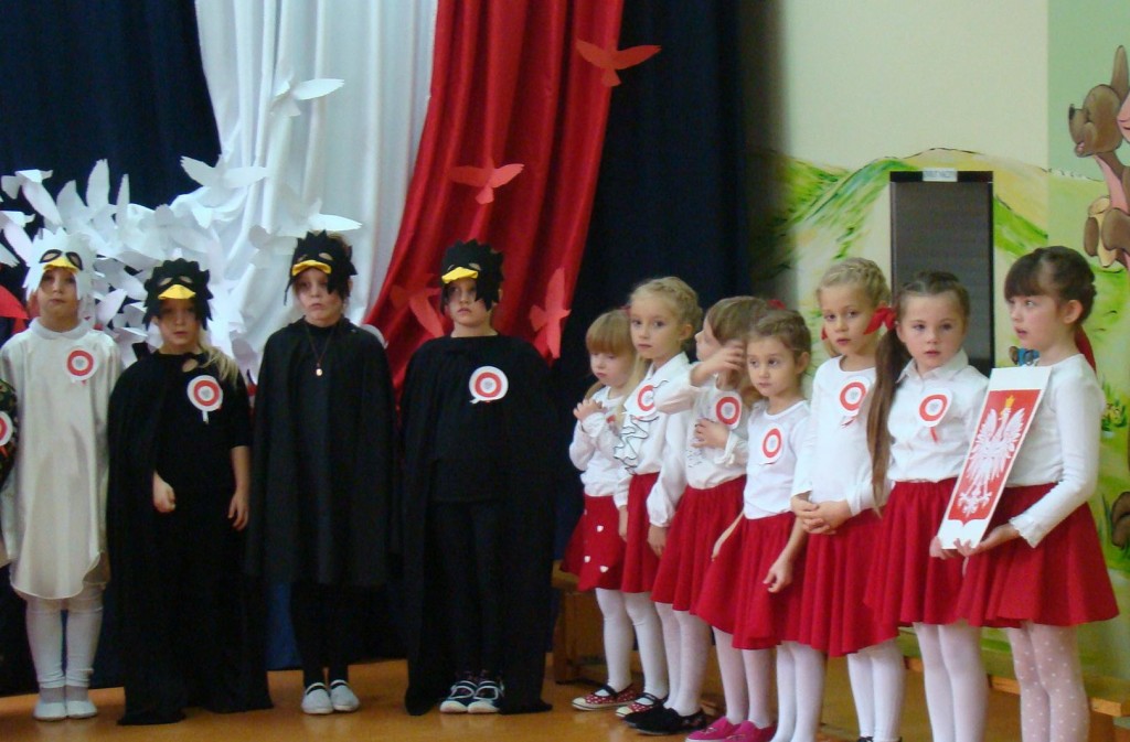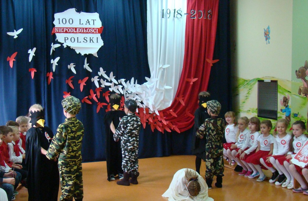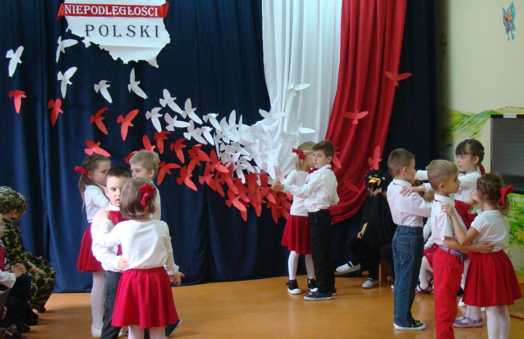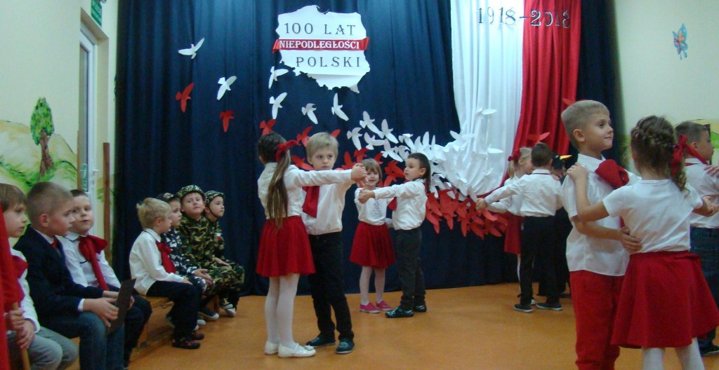 Dzień 11 listopada to niezwykle ważna data dla każdego Polaka - to dzień, kiedy nasza ojczyzna odzyskała wolność po wielu latach niewoli. W tym roku jest to szczególna rocznica ponieważ obchodzimy ją po raz setny. Z tej okazji 9 listopada w murach naszego przedszkola odbyła się uroczysta akademia z okazji Święta Niepodległości, przygotowana przez grupę 6 latków. Podczas występu dzieci recytowały wiersze patriotyczne i śpiewały pieśni opowiadające o historii Polski, ale także te tłumaczące sens współczesnej polskości oraz ukazujące piękno naszej ojczyzny. Wielkie wrażenie wywarła na dzieciach improwizacja taneczna w wykonaniu dzieci przebranych za ptaki, symbolizujące Polskę oraz trzech zaborców. Atmosfera podczas uroczystości była bardzo podniosła i niezwykle wzruszająca. Warto docenić wysiłek naszych kochanych przedszkolaków. Przedstawiły one trudne treści historyczne w sposób bardzo przystępny dla swoich młodszych kolegów i koleżanek. Ale przede wszystkim przypomniały, jak wielkim darem jest życie w wolnej Ojczyźnie. Niektórym dorosłym zakręciła się łza w oku na widok małych patriotów. Z tego młodego pokolenia Polaków naprawdę możemy być dumni. I jesteśmy. Dziękujemy!