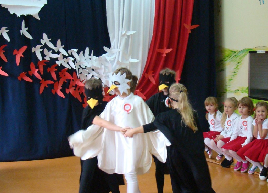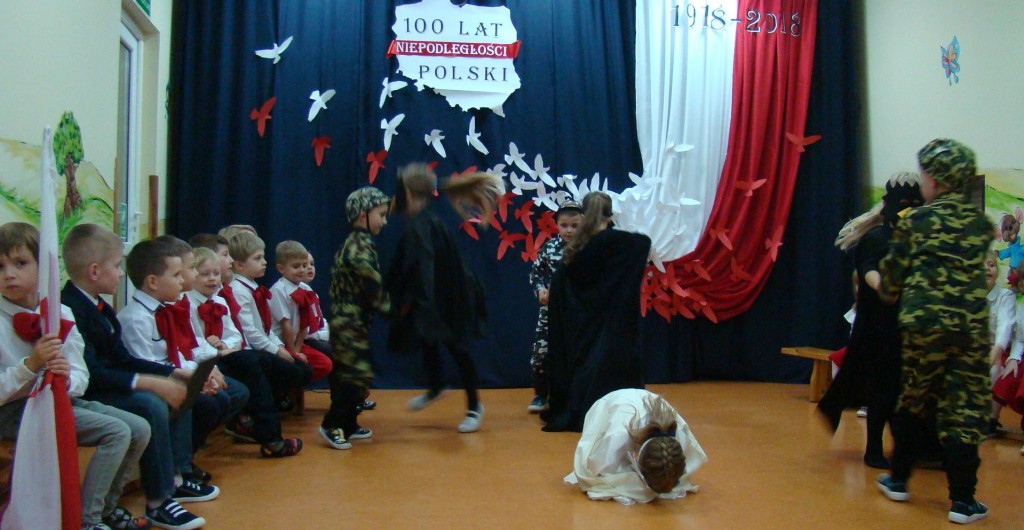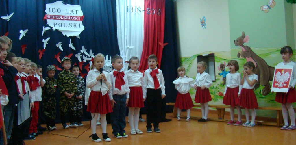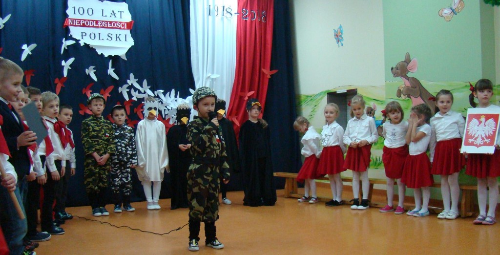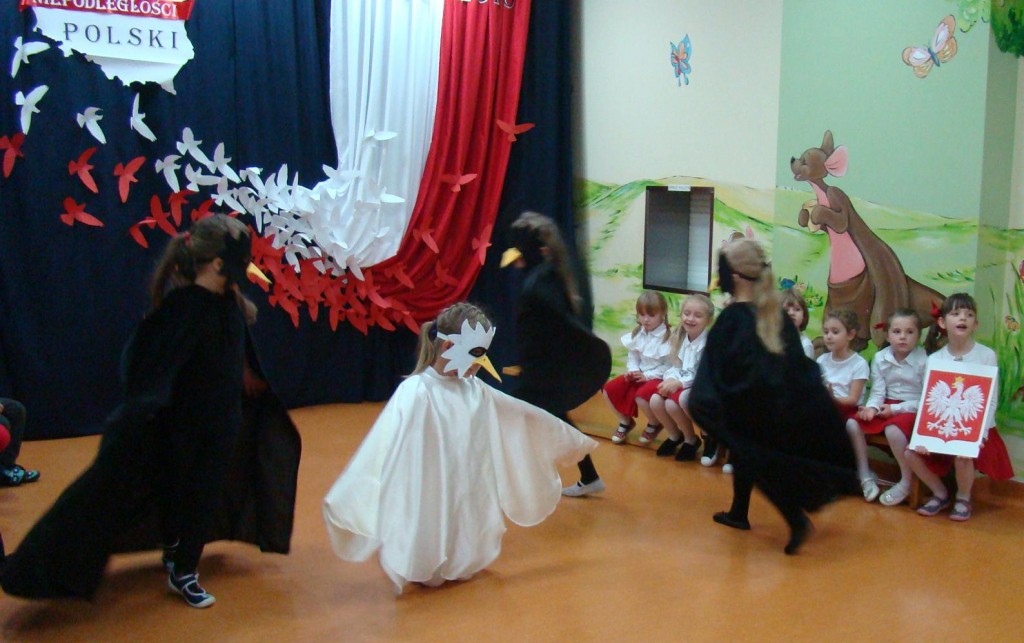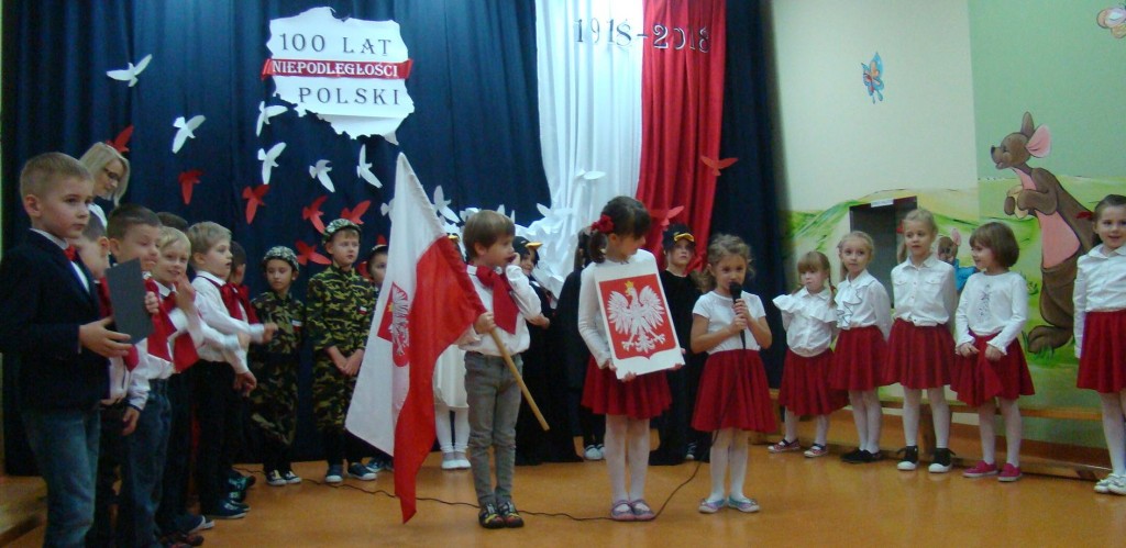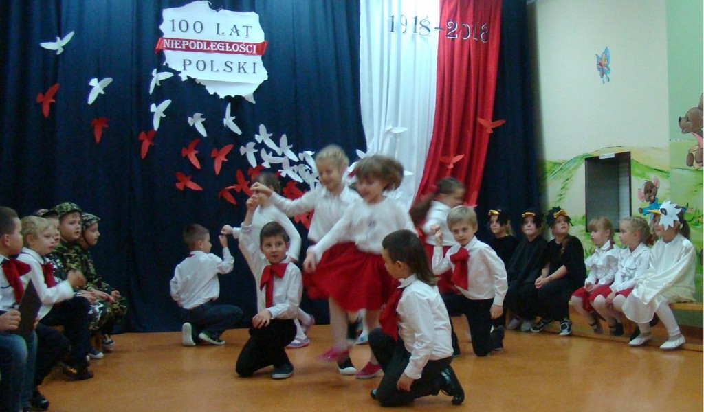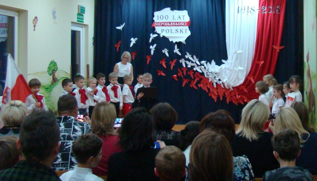 Dzień 11 listopada to niezwykle ważna data dla każdego Polaka - to dzień, kiedy nasza ojczyzna odzyskała wolność po wielu latach niewoli. W tym roku jest to szczególna rocznica ponieważ obchodzimy ją po raz setny. Z tej okazji 9 listopada w murach naszego przedszkola odbyła się uroczysta akademia z okazji Święta Niepodległości, przygotowana przez grupę 6 latków. Podczas występu dzieci recytowały wiersze patriotyczne i śpiewały pieśni opowiadające o historii Polski, ale także te tłumaczące sens współczesnej polskości oraz ukazujące piękno naszej ojczyzny. Wielkie wrażenie wywarła na dzieciach improwizacja taneczna w wykonaniu dzieci przebranych za ptaki, symbolizujące Polskę oraz trzech zaborców. Atmosfera podczas uroczystości była bardzo podniosła i niezwykle wzruszająca. Warto docenić wysiłek naszych kochanych przedszkolaków. Przedstawiły one trudne treści historyczne w sposób bardzo przystępny dla swoich młodszych kolegów i koleżanek. Ale przede wszystkim przypomniały, jak wielkim darem jest życie w wolnej Ojczyźnie. Niektórym dorosłym zakręciła się łza w oku na widok małych patriotów. Z tego młodego pokolenia Polaków naprawdę możemy być dumni. I jesteśmy. Dziękujemy!
