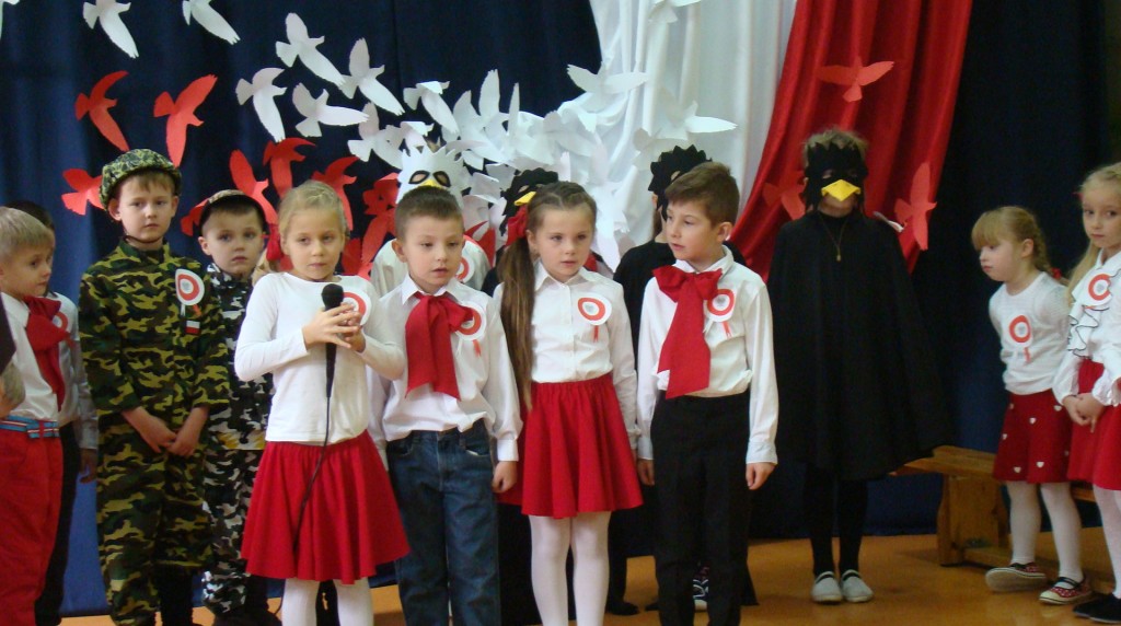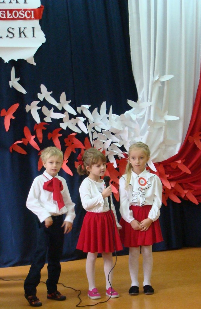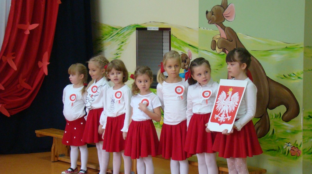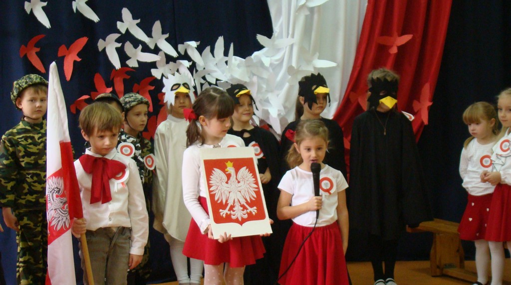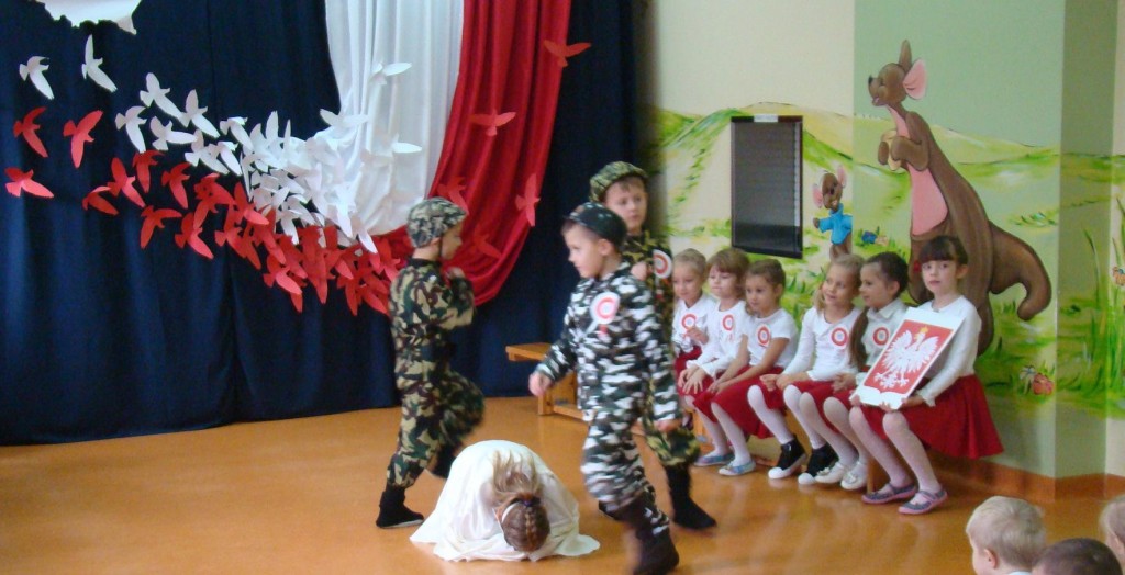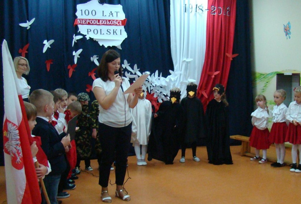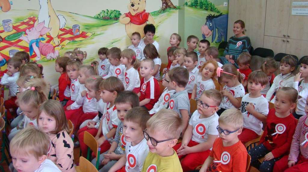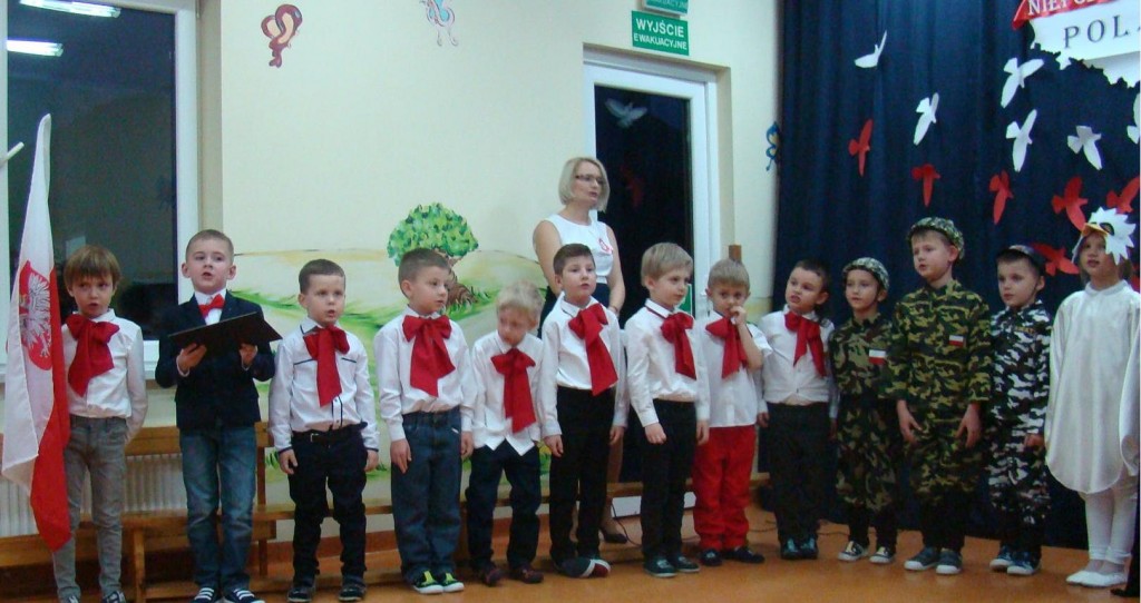 Dzień 11 listopada to niezwykle ważna data dla każdego Polaka - to dzień, kiedy nasza ojczyzna odzyskała wolność po wielu latach niewoli. W tym roku jest to szczególna rocznica ponieważ obchodzimy ją po raz setny. Z tej okazji 9 listopada w murach naszego przedszkola odbyła się uroczysta akademia z okazji Święta Niepodległości, przygotowana przez grupę 6 latków. Podczas występu dzieci recytowały wiersze patriotyczne i śpiewały pieśni opowiadające o historii Polski, ale także te tłumaczące sens współczesnej polskości oraz ukazujące piękno naszej ojczyzny. Wielkie wrażenie wywarła na dzieciach improwizacja taneczna w wykonaniu dzieci przebranych za ptaki, symbolizujące Polskę oraz trzech zaborców. Atmosfera podczas uroczystości była bardzo podniosła i niezwykle wzruszająca. Warto docenić wysiłek naszych kochanych przedszkolaków. Przedstawiły one trudne treści historyczne w sposób bardzo przystępny dla swoich młodszych kolegów i koleżanek. Ale przede wszystkim przypomniały, jak wielkim darem jest życie w wolnej Ojczyźnie. Niektórym dorosłym zakręciła się łza w oku na widok małych patriotów. Z tego młodego pokolenia Polaków naprawdę możemy być dumni. I jesteśmy. Dziękujemy!