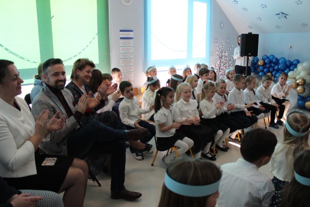 We wspólnym świętowaniu uczestniczyli: Dyrektor Przedszkola Pani Beata Rychlik, Prezydent Miasta Pan Michał Litwiniuk, Dyrektor Miejskiego Ośrodka Pomocy Społecznej Pani Ewa Borkowska wraz ze współpracownikami z Działu Pomocy Rodzinie i Dziecku, spokrewniona rodzina zastępcza czyli Pani Bożena i jej wnuczki Patrycja i Amelka oraz nasi starszacy wraz ze swoimi Paniami. W tym roku świętowanie podsumowania akcji miało formę koncertu kolęd i pastorałek. W koncercie tym wystąpiły dzieci z I, II i III grupy 6 latków, nauczycielka przedszkola Pani Karolina Kowalczyk, Prezydent Miasta Pan Michał Litwiniuk oraz Patrycja i Amelka, których marzenie wspólnie spełniliśmy. Koncert prowadziły nauczycielki przedszkola Pani Angelika Piekarska i Pani Justyna Kowaluk. Ważną częścią tego świętowania był moment wręczenia przez Panią Dyrektor voucherów na zimowisko w Bieszczadach dla Patrycji i Amelki. Dziewczynki otrzymały róznież niezbędną odzież oraz wyposażenie potrzebne do jazdy na nartach.