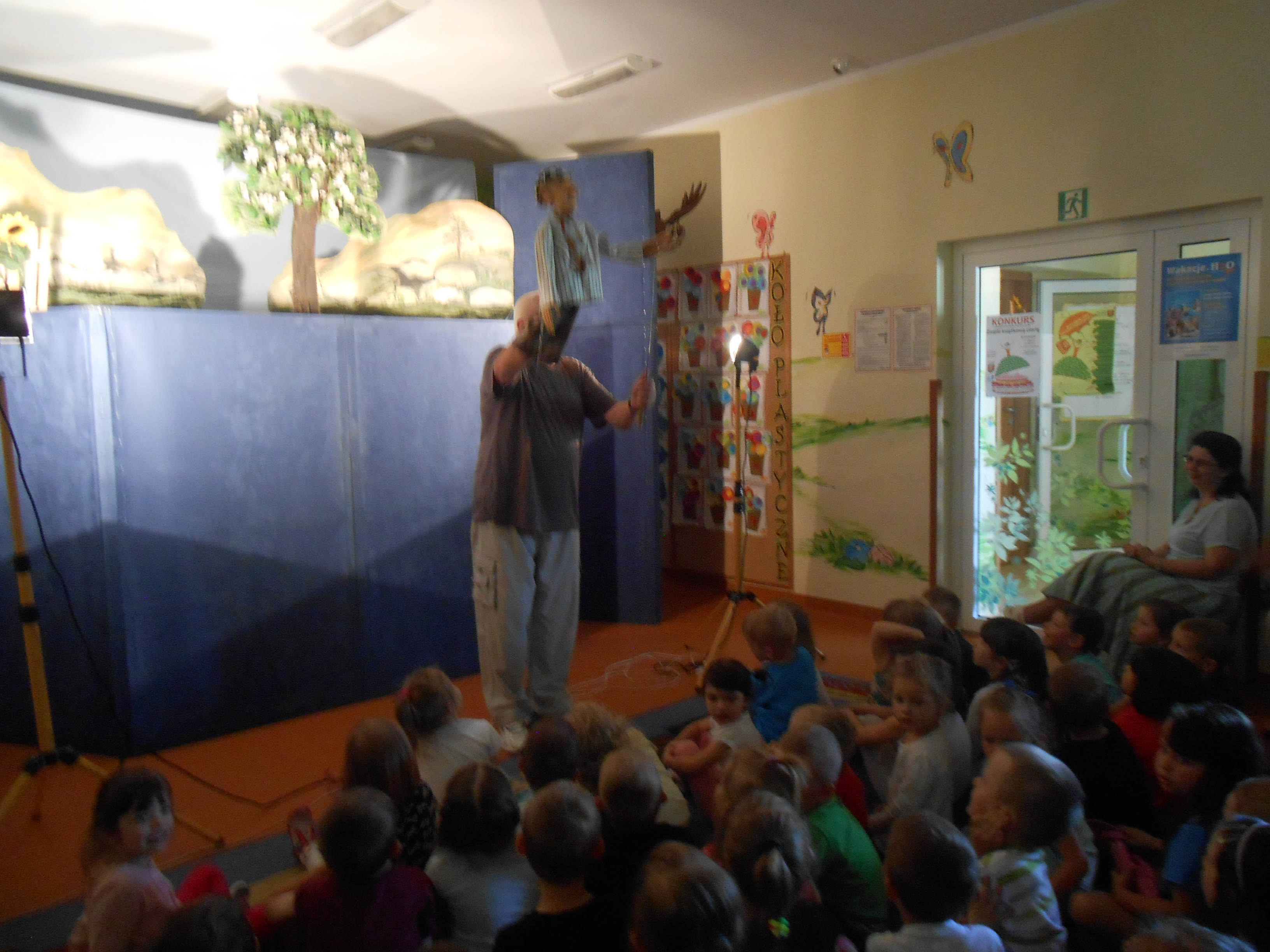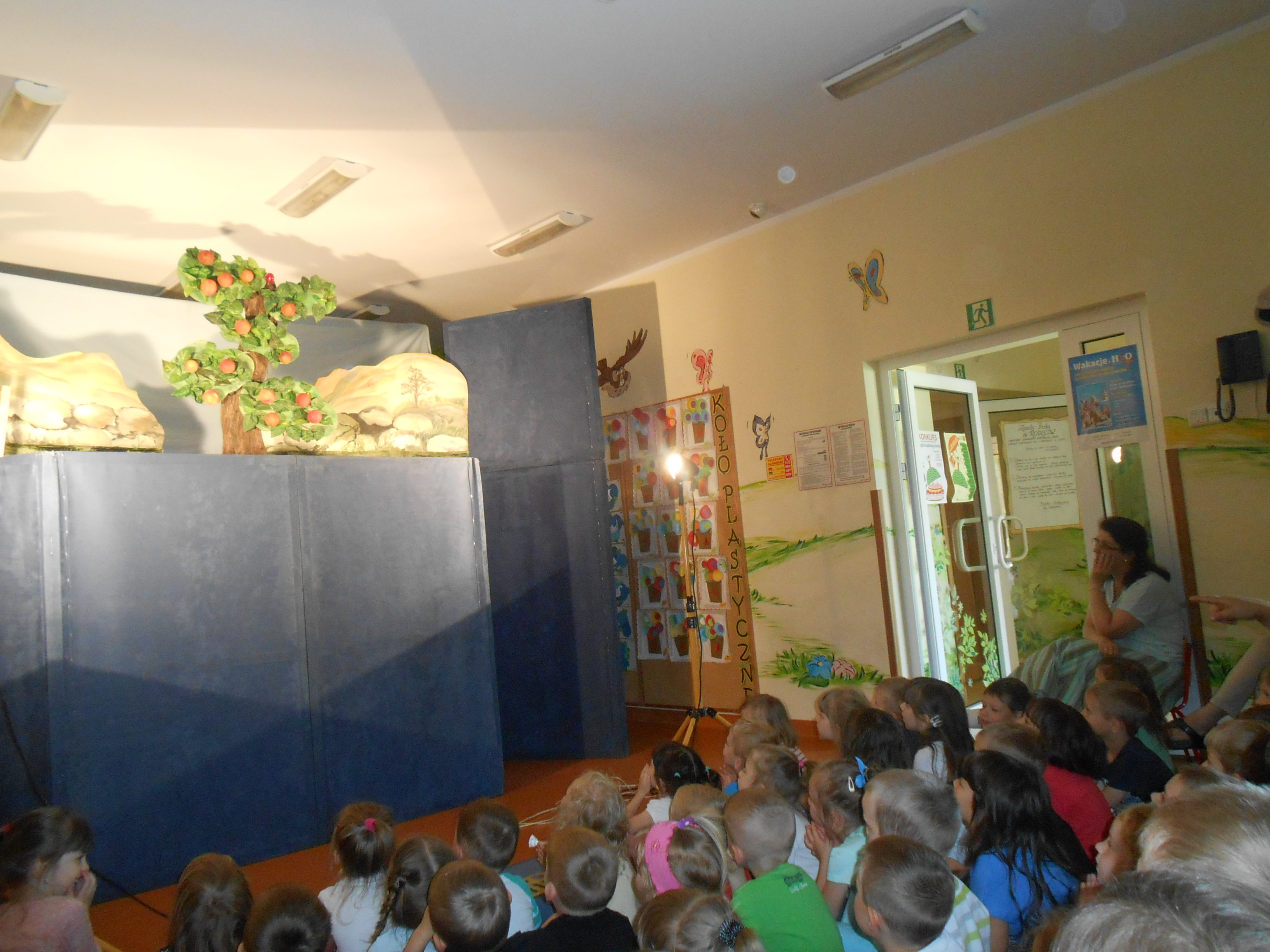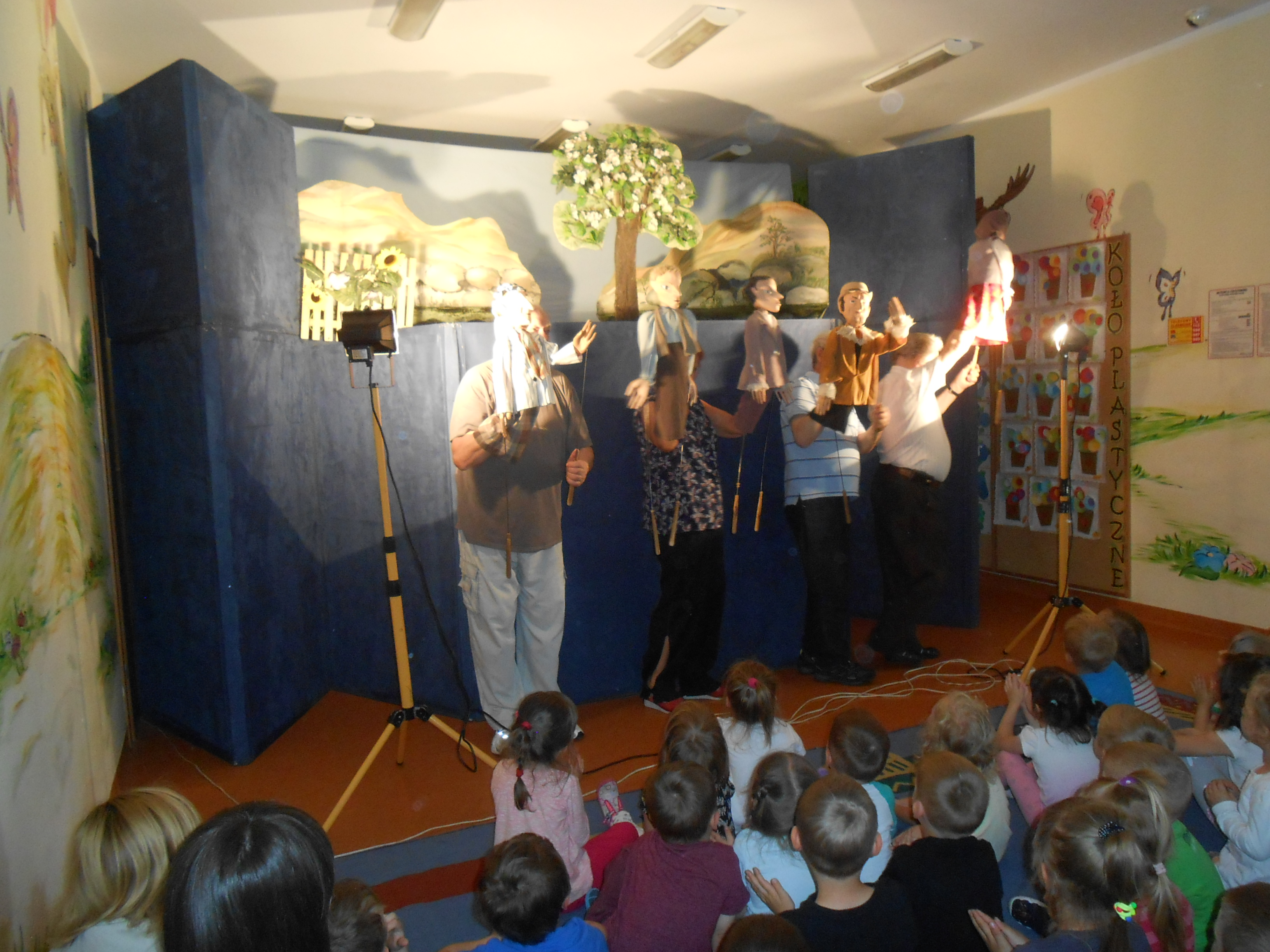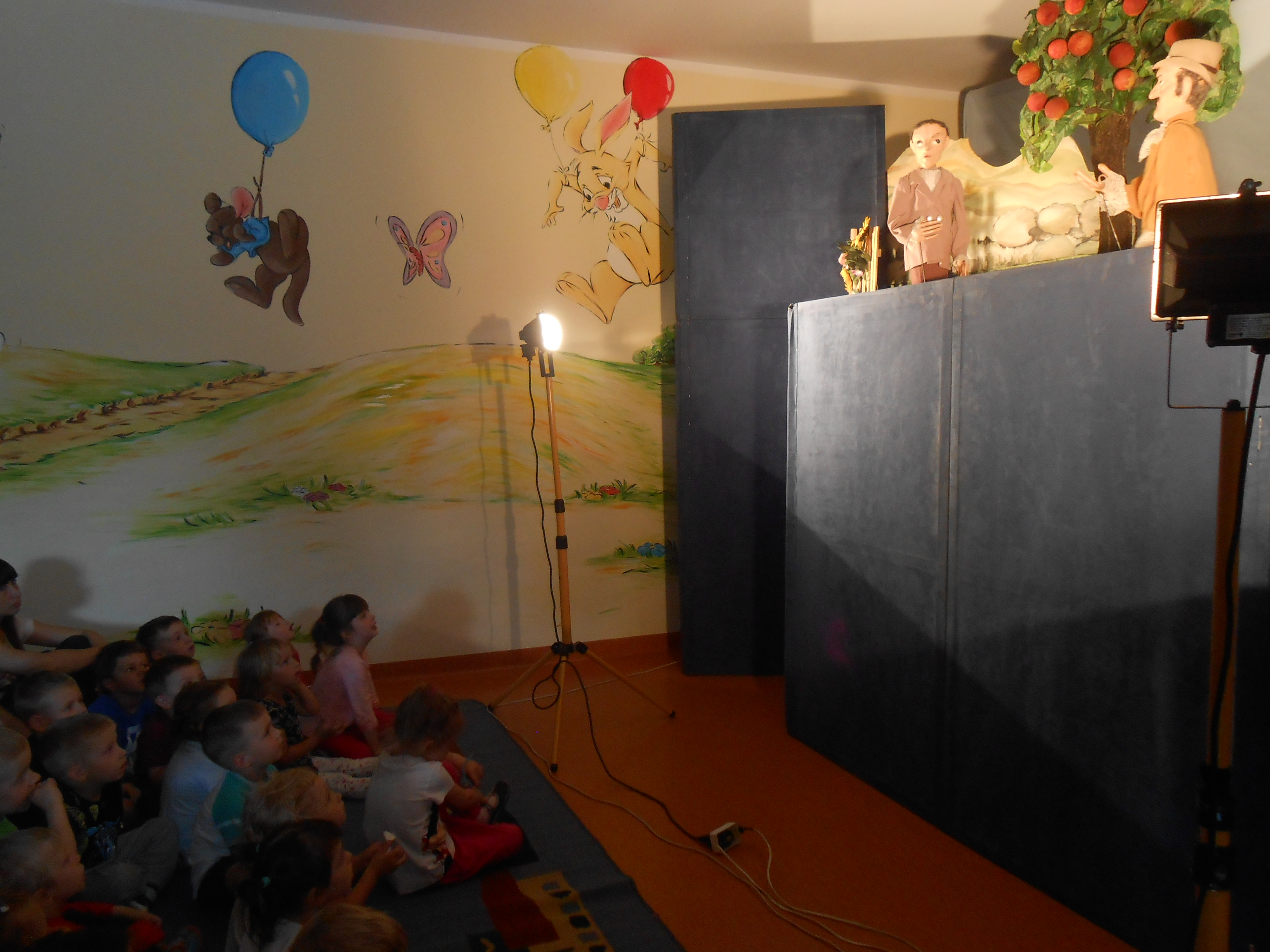 24 maja w naszym przedszkolu gościł Teatr Lalek „Fraszka” z Warszawy. Aktorzy zaprezentowali dzieciom bajkę pt. „Cudowna jabłoń”. Opowiada ona o przygodach chciwego ogrodnika Onufrego, biednej wdowy Dominiki i ich synów oraz o cudownej pestce, z której wyrosła wspaniała jabłoń, która stała się przyczyną waśni między rodzinami. Ale jak w każdej bajce wszystko skończyło się dobrze, a dobroć i mądrość zwyciężyła.