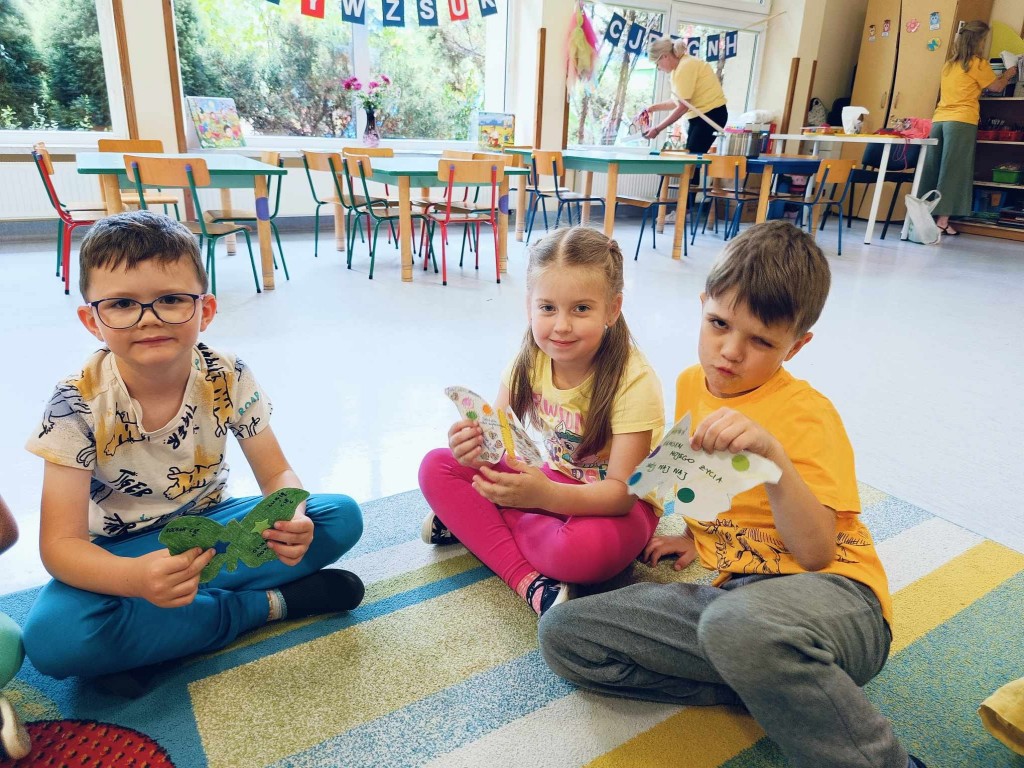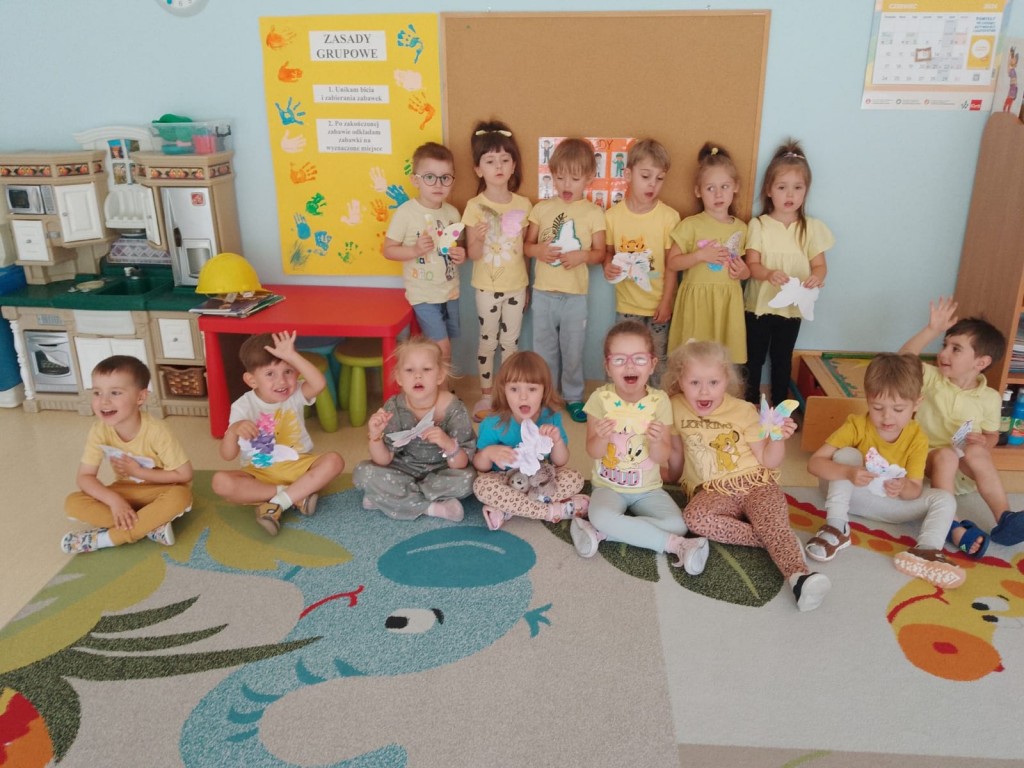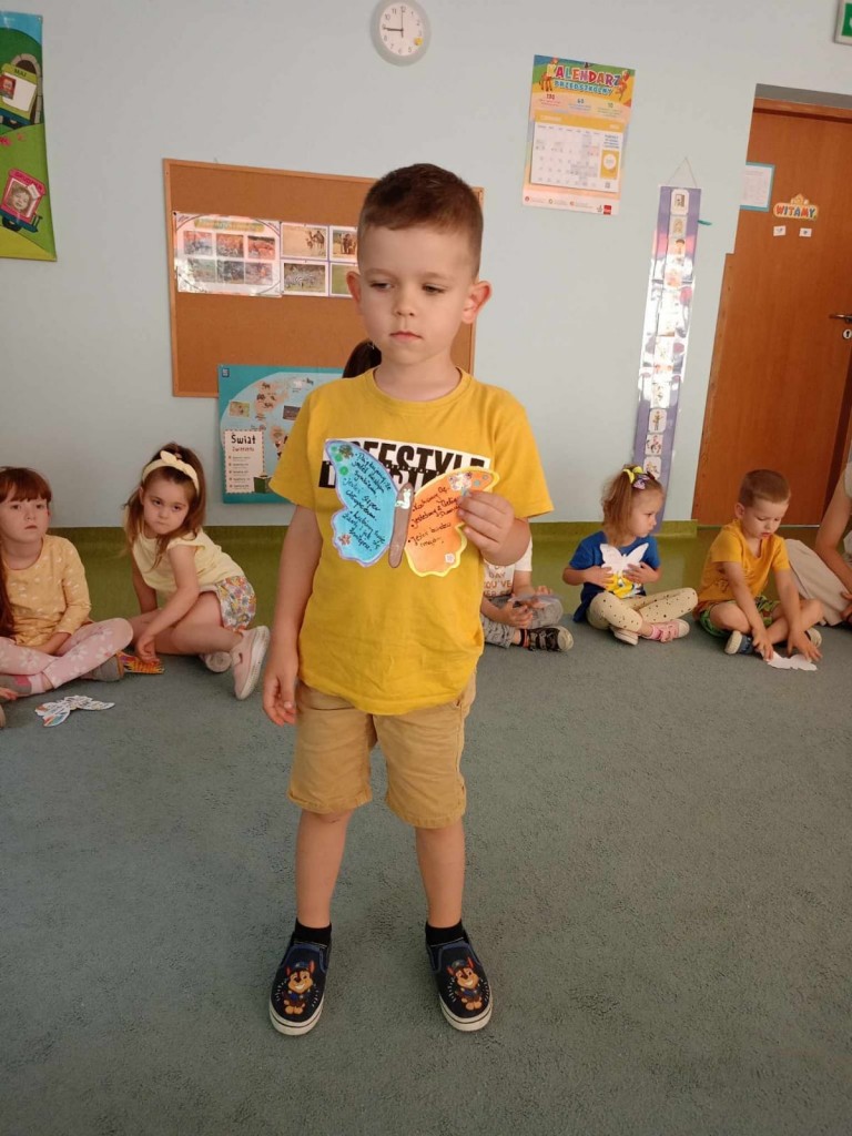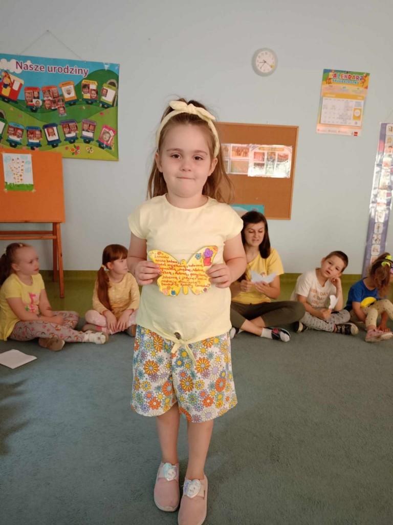 Dzieci wspólnie z rodzicami wykonali motyle zawierające dobre słowa rodziców dotyczące ich dziecka. Zadaniem dzieci było ozdobienie motyli. Drodzy Rodzice dziękujemy Wam za to działanie - słowa, które zapisaliście na motylach były odczytane przez panie w obecności pozostałych dzieci. Były one przysłowiowym miodem na serce Waszych dzieci.