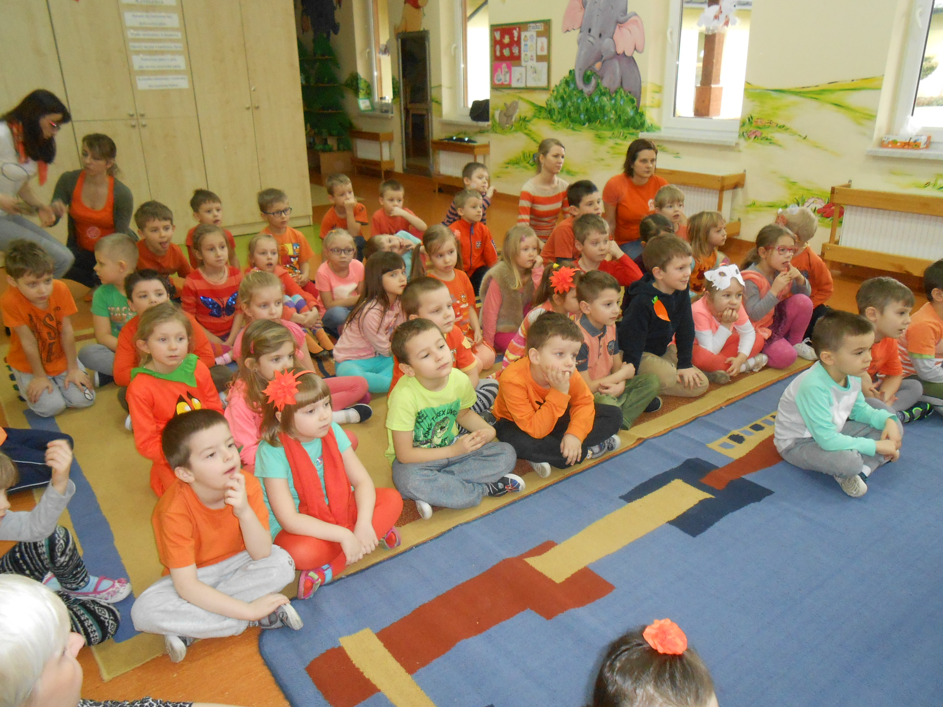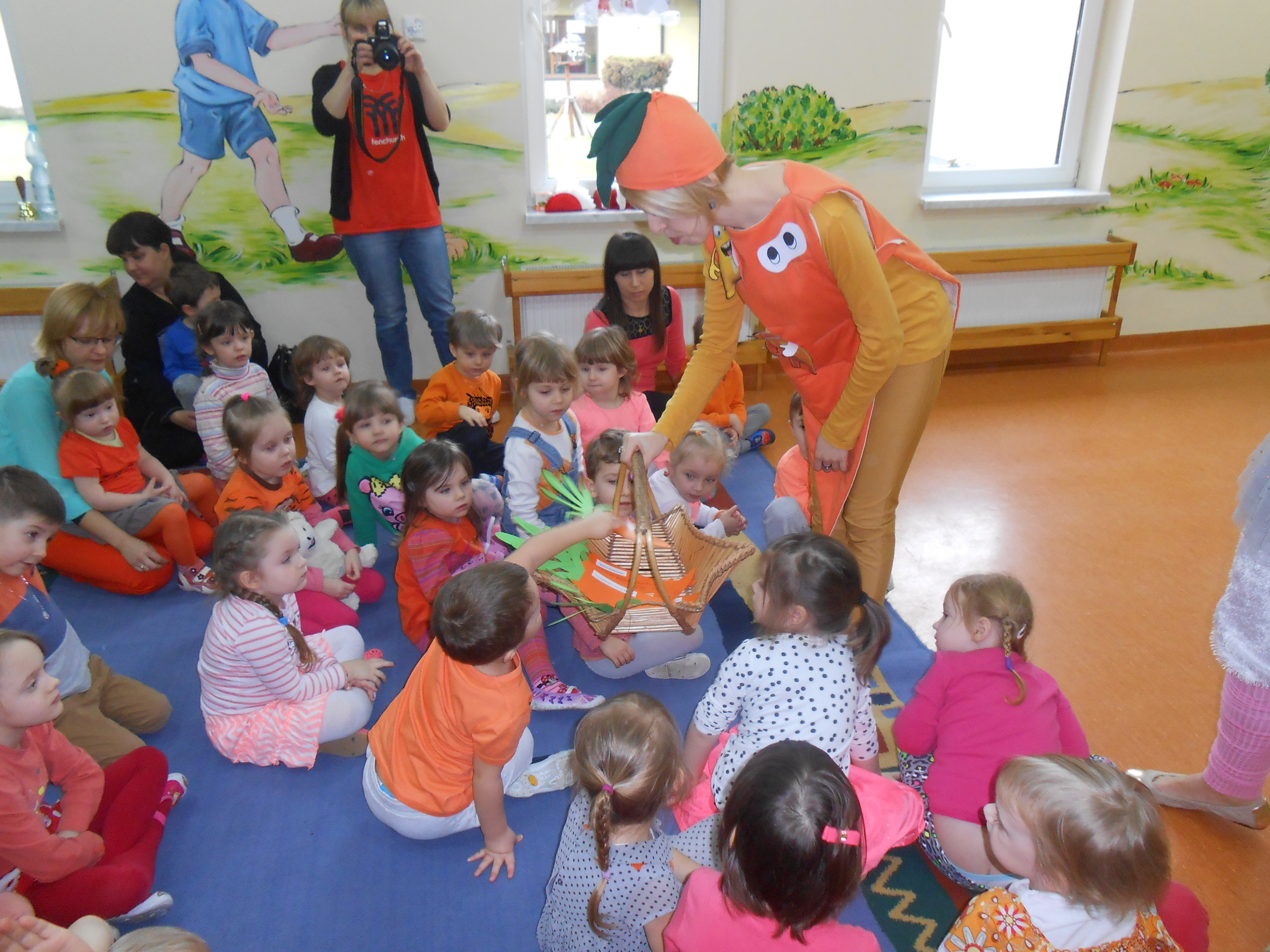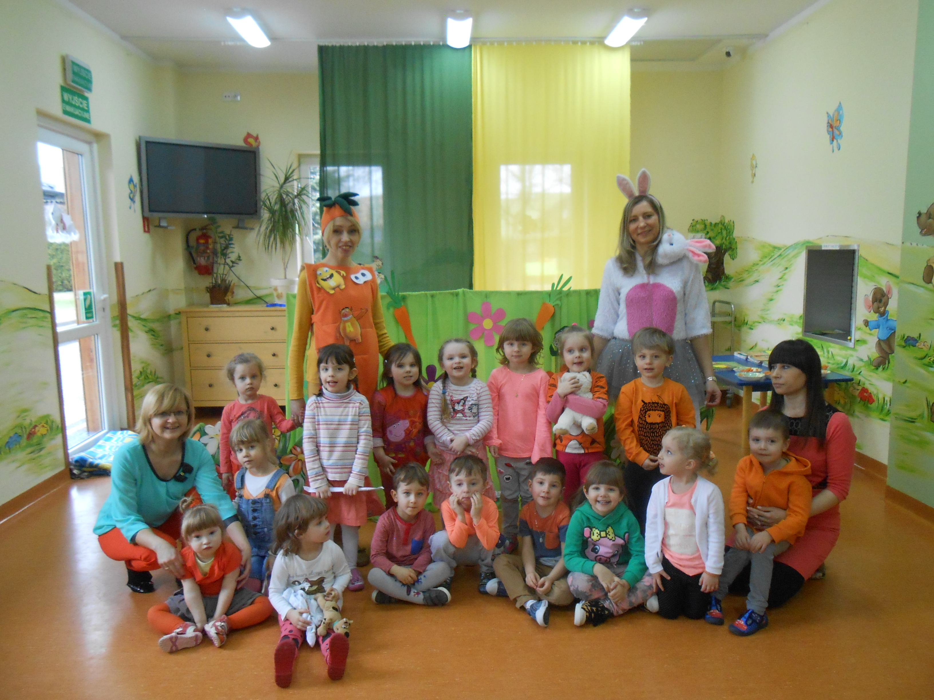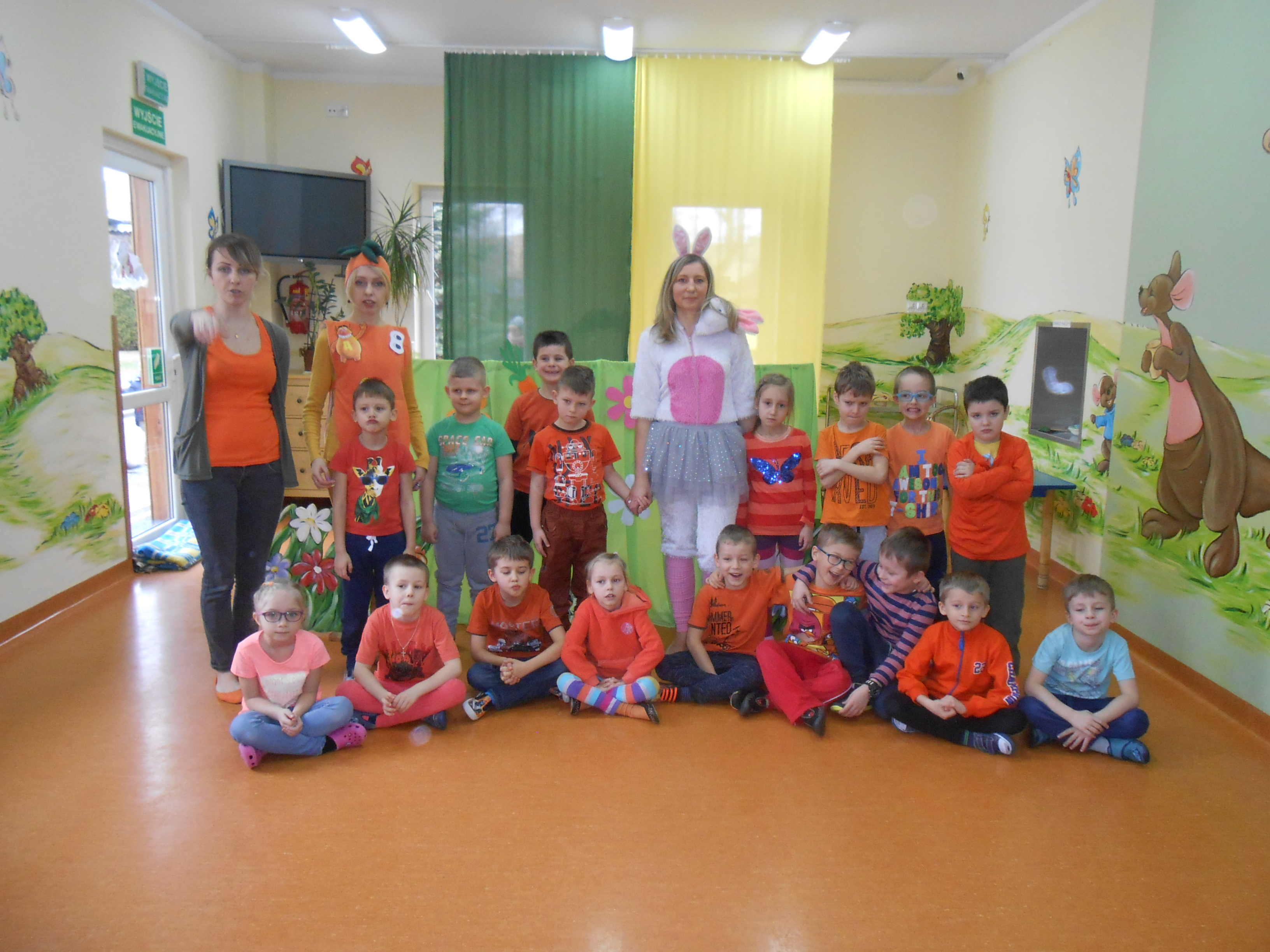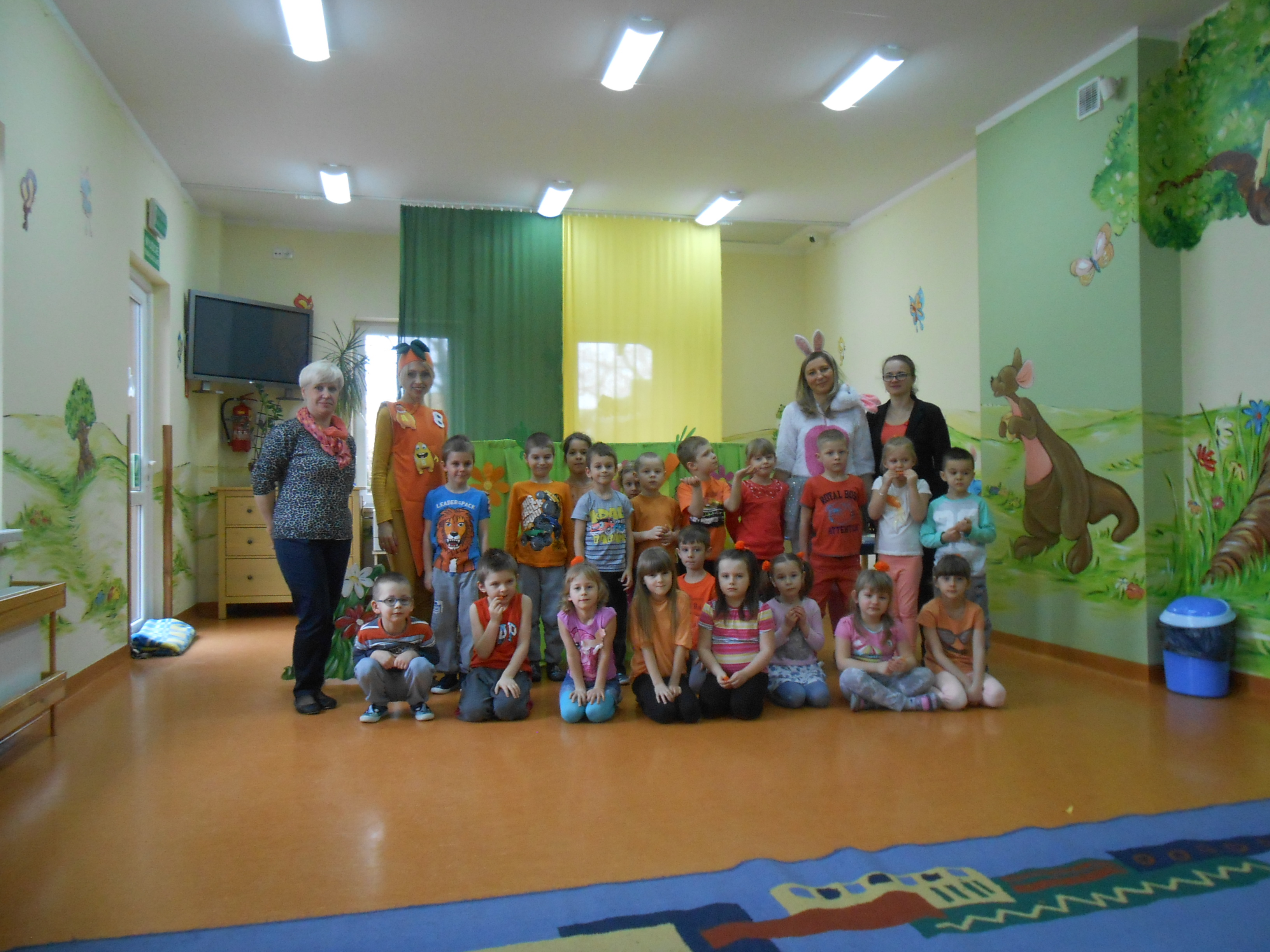 Drugi tydzień marca poświęcony był realizacji programu "Kubusiowi Przyjaciele Natury". W ciągu tego tygodnia, poznawaliśmy zasady zdrowego odżywiania. Szczególnie uroczyście obchodziliśmy "Dzień Marchewki" podczas którego, każdy przedszkolak ubrany był na pomarańczowo. Marchewkowa impreza przypomniała dzieciom o korzyściach płynących ze spożywania tego warzywa. Dzieci poszerzyły swoją wiedzę na temat budowy i wyglądu marchewki, a także dowiedziały się, iż jest ona przysmakiem wielu zwierząt. Okazało się także, że przedszkolaki znają mnóstwo marchewkowych potraw. Zdobytą wiedzę, miały okazję zaprezentować podczas quizu. Zwieńczeniem imprezy była degustacja słodkiej i chrupiącej marchewki. Na pamiątkę wspólnego świętowania, każde dziecko otrzymało książeczkę "Kubusiowi Przyjaciele Natury", dzięki której utrwalą zdobytą wiedzę i będą pamiętać o spożywaniu tego smaczenego i zdrowego warzywa.