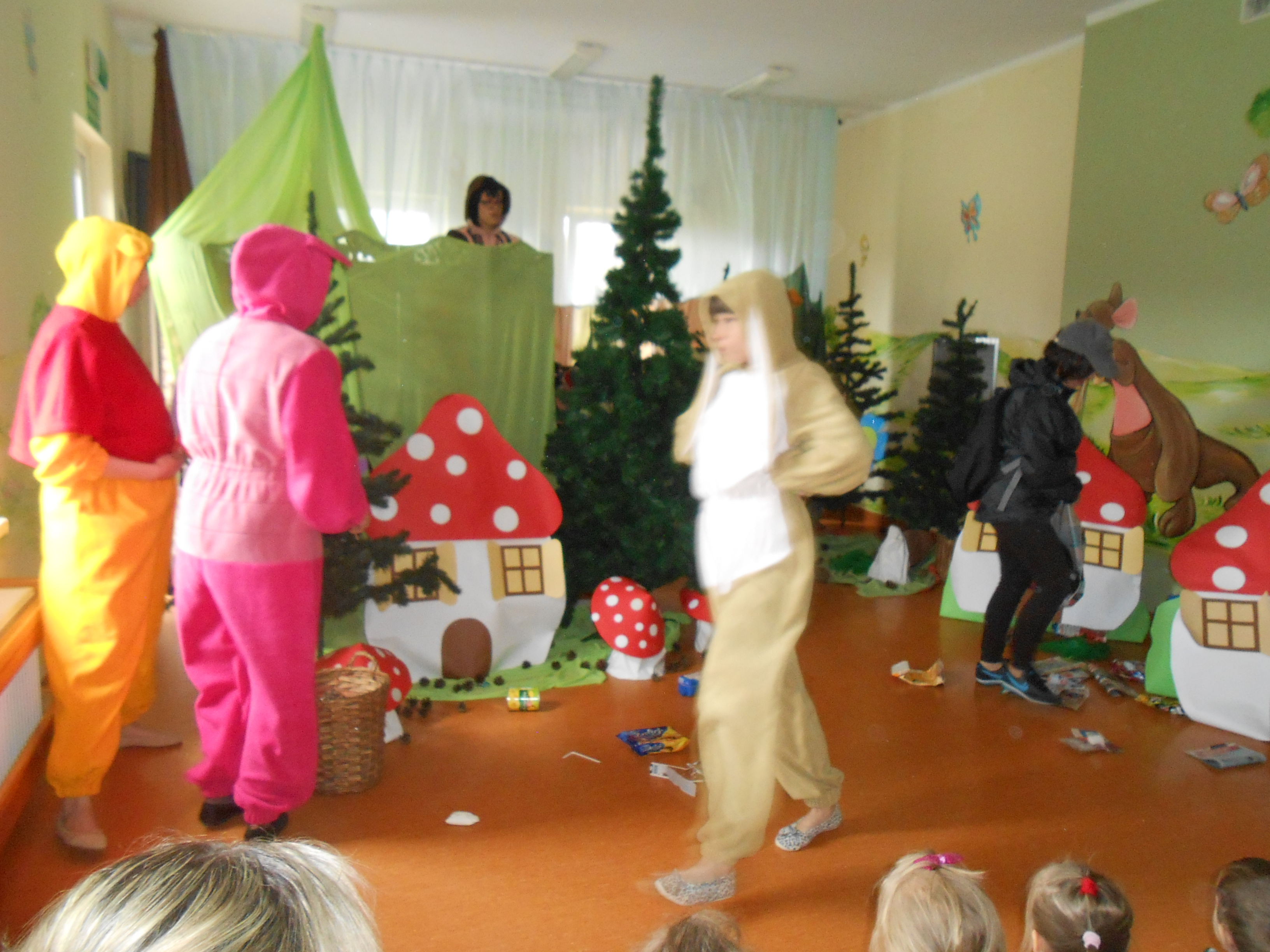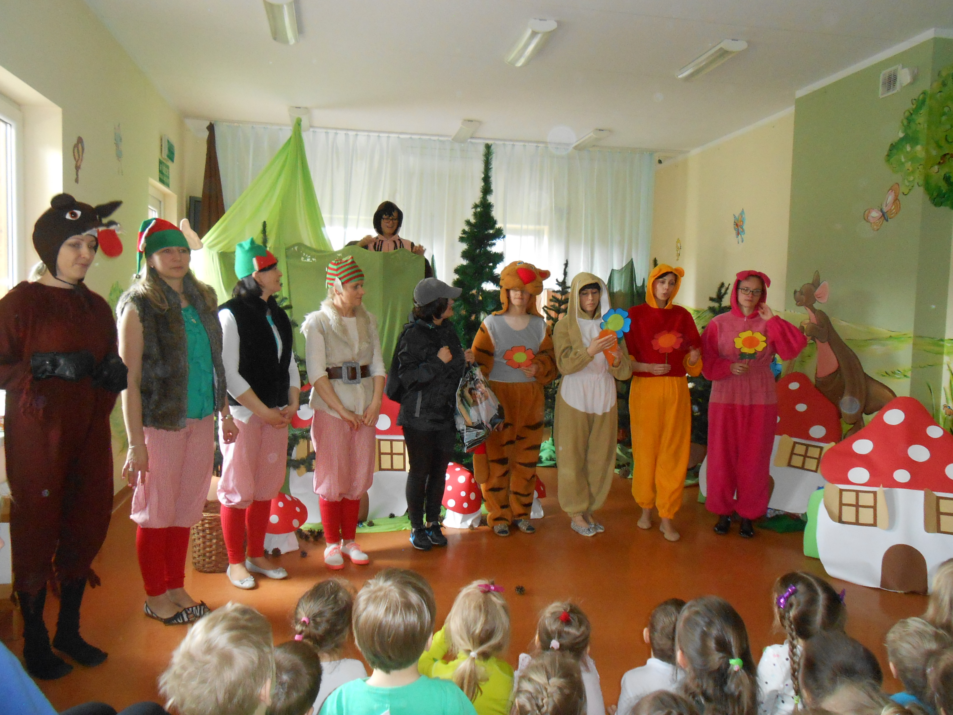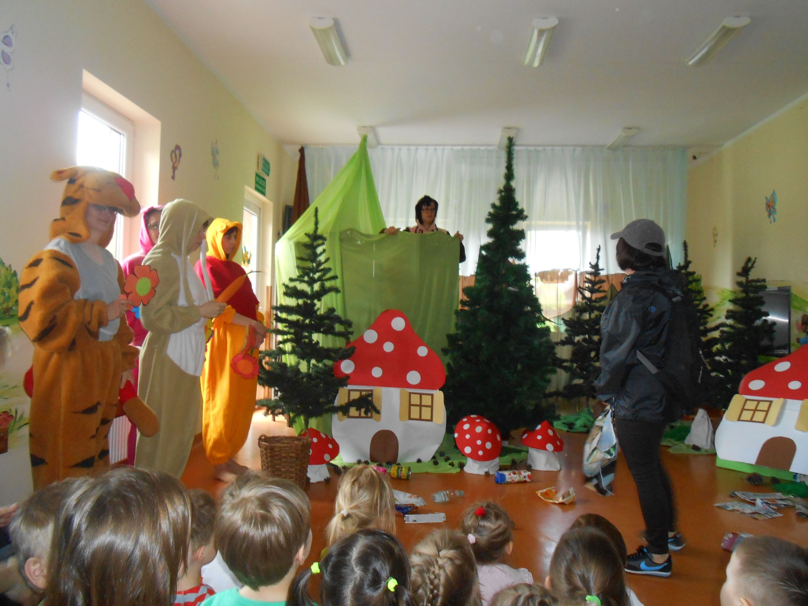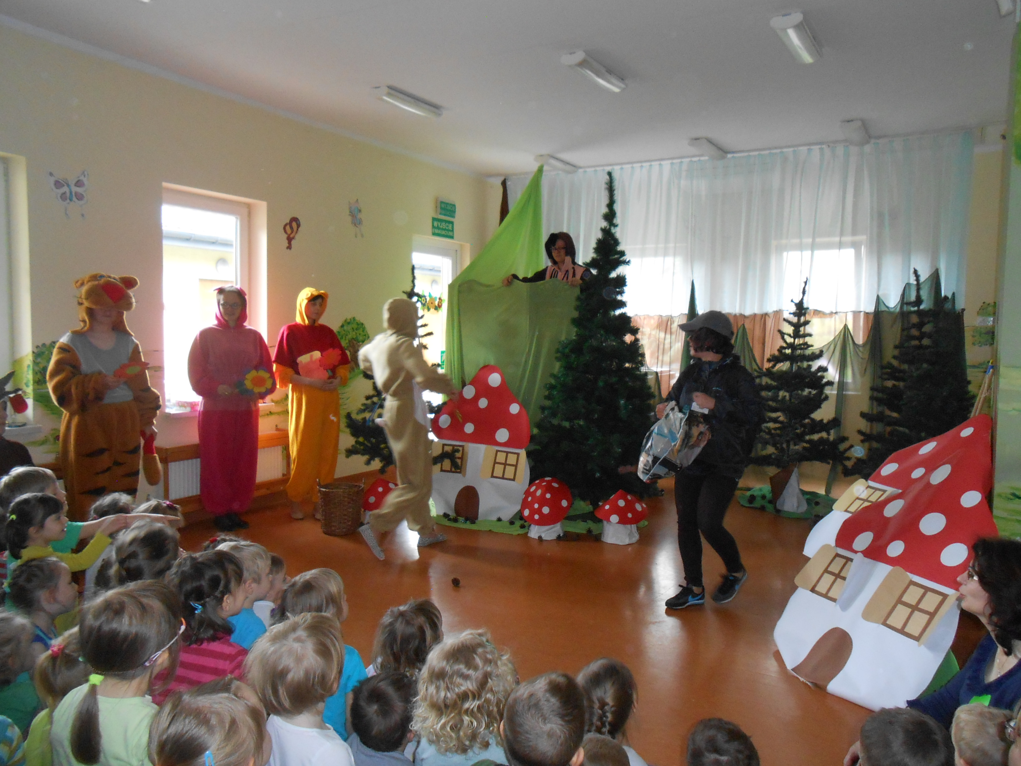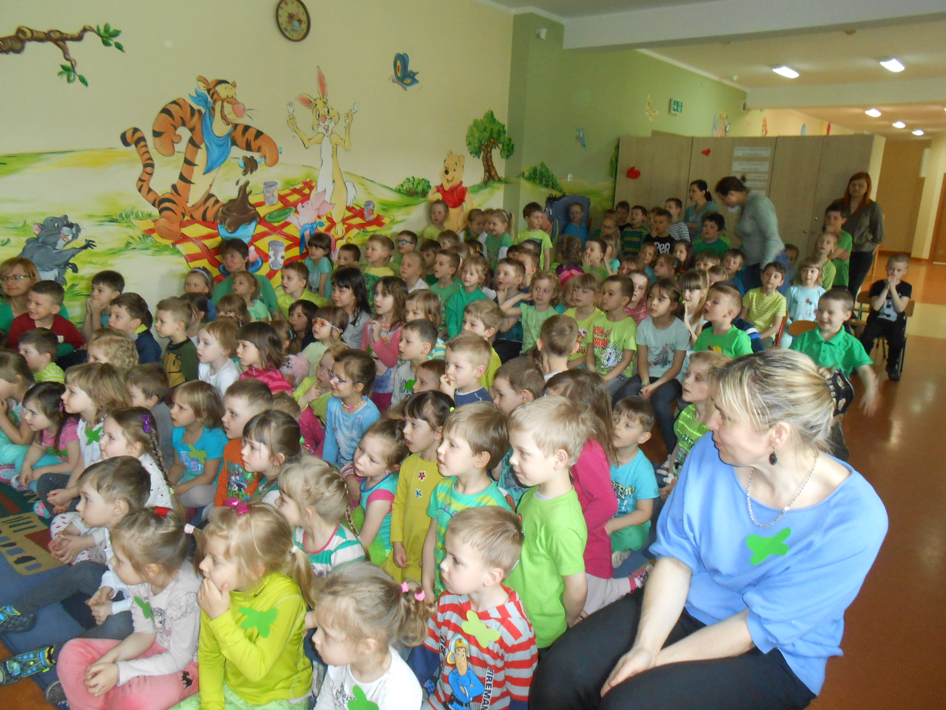 Dzień 22 kwietnia upłynął w naszym przedszkolu pod hasłem Ekologia, a wszystko to z okazji obchodów „Dnia Ziemi”. W tym dniu wszyscy przyszyliśmy do przedszkola ubrani na zielono - na znak tego, że chcemy, aby nasza planeta była czysta, zielona i wesoła. Świętowanie rozpoczęło się inscenizacją „Ekologiczna przygoda w Stumilowym Lesie” w wykonaniu naszych pań, które wcieliły się w rolę Kubusia Puchatka i jego przyjaciół. Leśne Duszki słowami piosenki zachęciły wszystkich do sprzątania, a pozostali bohaterowie określili zasady segregacji śmieci i korzystania z dobrodziejstw natury. Ten wspaniały, „Zielony Dzień” na długo pozostanie w pamięci nas wszystkich, a w konsekwencji rozbudzi ciekawość światem a także uzmysłowi, że każdy człowiek jest zależny od jednej i tej samej Ziemi, dlatego musimy o nią dbać niezależnie od tego kim jesteśmy, ile mamy lat, jak i gdzie żyjemy!!!