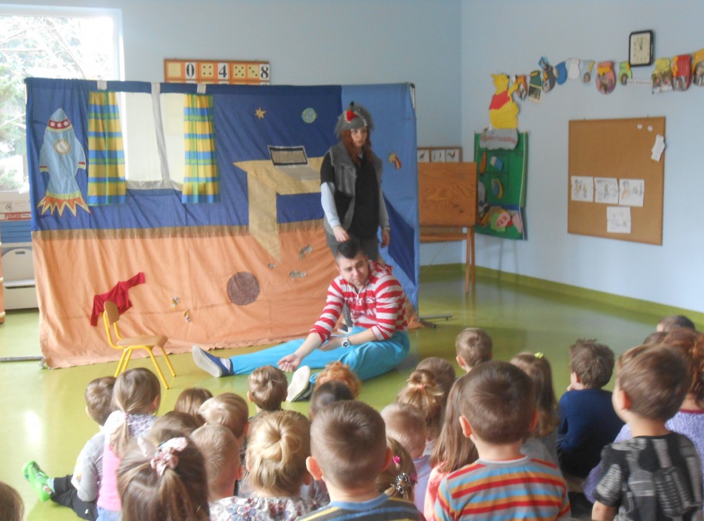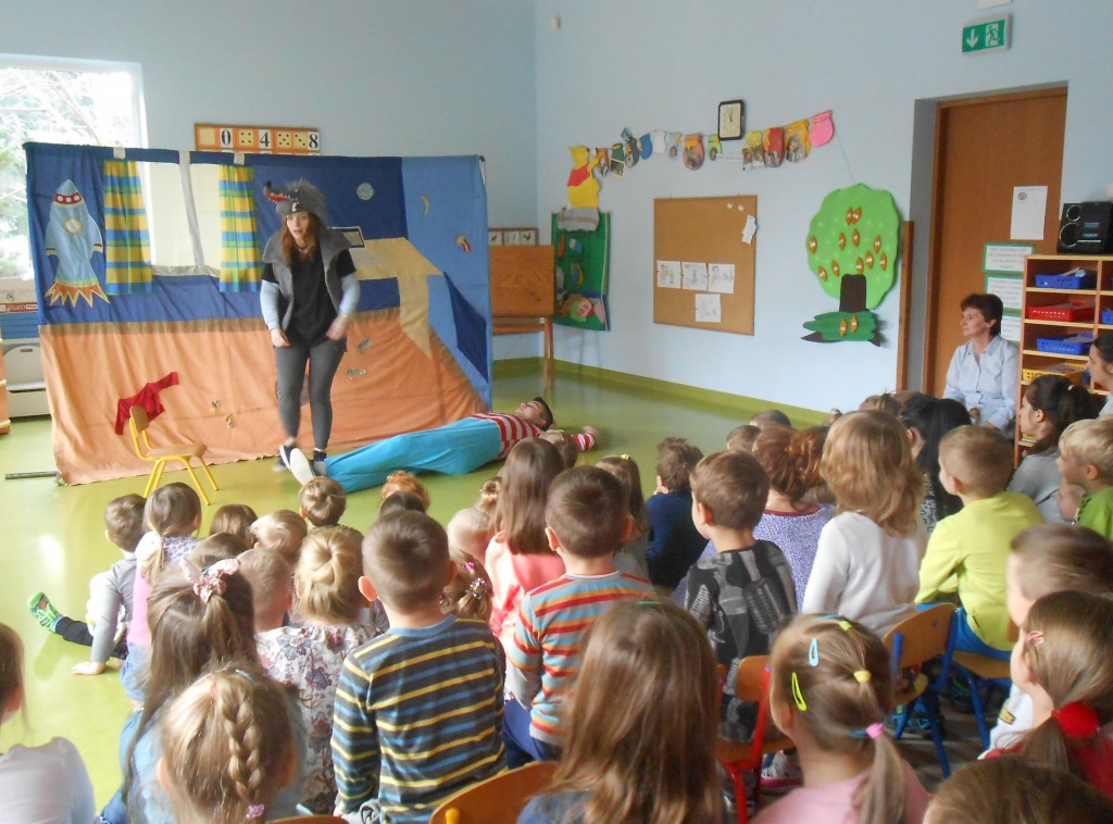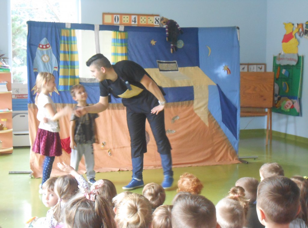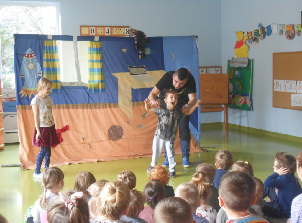 Dnia 29 listopada nasze przedszkole odwiedził teatr Studio Artystyczne „Akada” z Suwałk. Przedstawienie nosiło tytuł „Fernando przepędza lenia”. Główna bohaterka Hiacynta miała bardzo trudne zadanie mianowicie wypędzić lenia z przyjaciela Fernanda, który tylko spał, leniuchował, nie chciał chodzić do szkoły i uczyć się. Hiacyncie pomogły leśne Chochliki, które znalazły magiczny napój, sprowadzony aż z Egiptu. Najważniejsze, że się udało. Było to przedstawienie interaktywne, gdzie dzieci stawały się prawdziwymi aktorami a na ich twarzach gościły promienne uśmiechy.