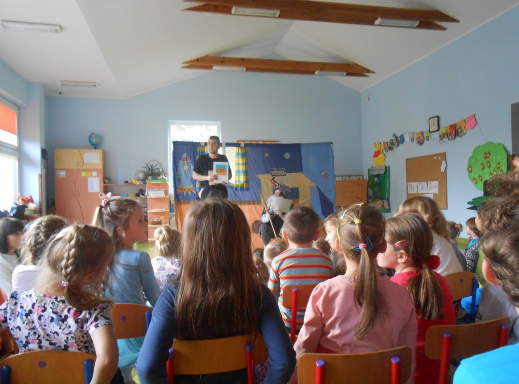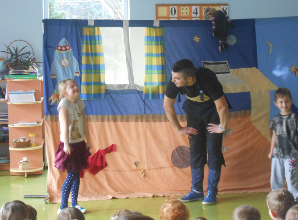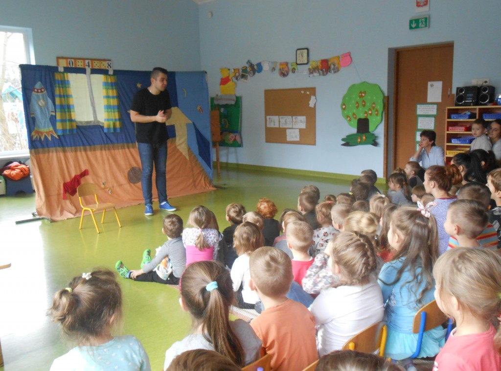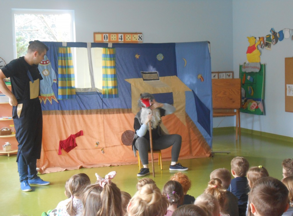 Dnia 29 listopada nasze przedszkole odwiedził teatr Studio Artystyczne „Akada” z Suwałk. Przedstawienie nosiło tytuł „Fernando przepędza lenia”. Główna bohaterka Hiacynta miała bardzo trudne zadanie mianowicie wypędzić lenia z przyjaciela Fernanda, który tylko spał, leniuchował, nie chciał chodzić do szkoły i uczyć się. Hiacyncie pomogły leśne Chochliki, które znalazły magiczny napój, sprowadzony aż z Egiptu. Najważniejsze, że się udało. Było to przedstawienie interaktywne, gdzie dzieci stawały się prawdziwymi aktorami a na ich twarzach gościły promienne uśmiechy.