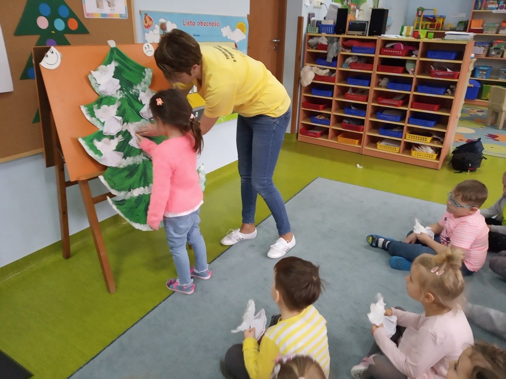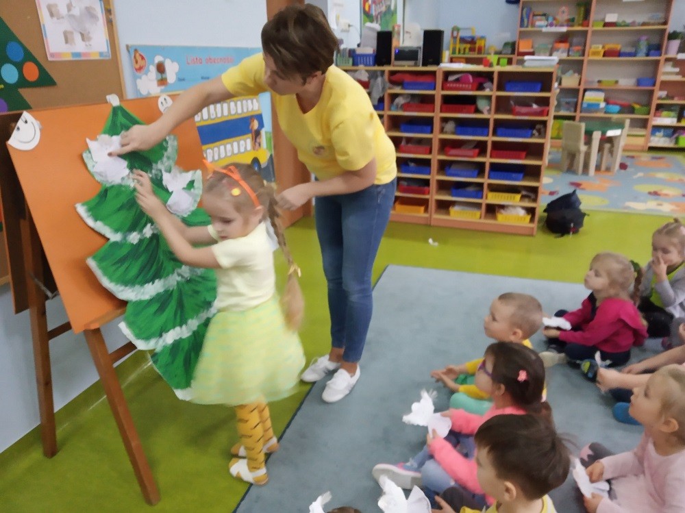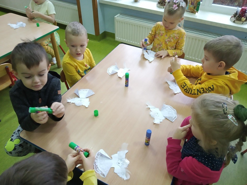 Grudniowe świętowanie Dnia Dobrego Słowa połączyliśmy ze świętowaniem Narodzin Jezusa - przygotowaliśmy "Sianko z dobrym słowem" oraz Aniołki z dobrymi słowami, które umieściliśmy na grupowych choinkach. Grudniowy Dzień Dobrego Słowa był wspaniałą okazją do obdarowania rodziców życzliwymi słowami z okazji zbliżających się świąt Bożego Narodzenia.