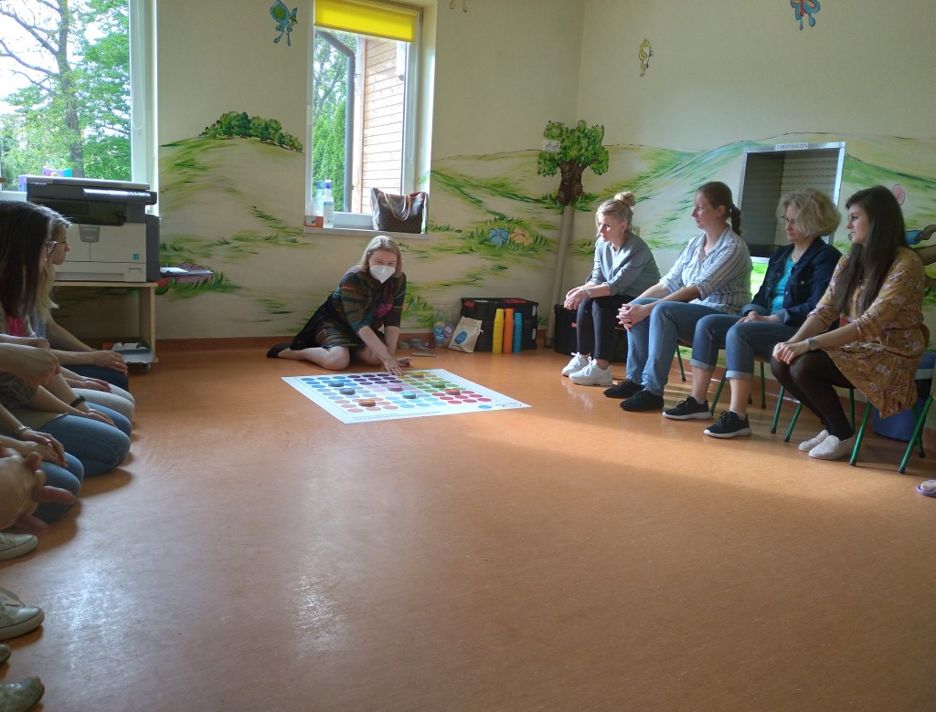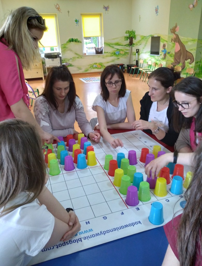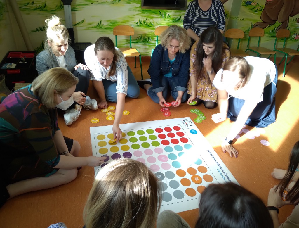 18 maja odbyło się szkolenie z zakresu tzw. kodowania na dywanie. Było ono prowadzone przez Panią mgr Annę Świć - trenerka w programie Mistrzowie Kodowania. Prowadząca pokazała wiele sposobów wykorzystania maty do kodowania na zajęciach z dziećmi. Możliwość uczestniczenia w tych działaniach była cenną lekcją kodowania dla nauczycieli.