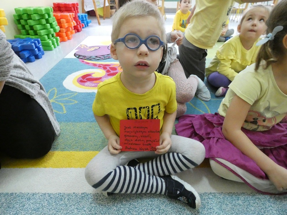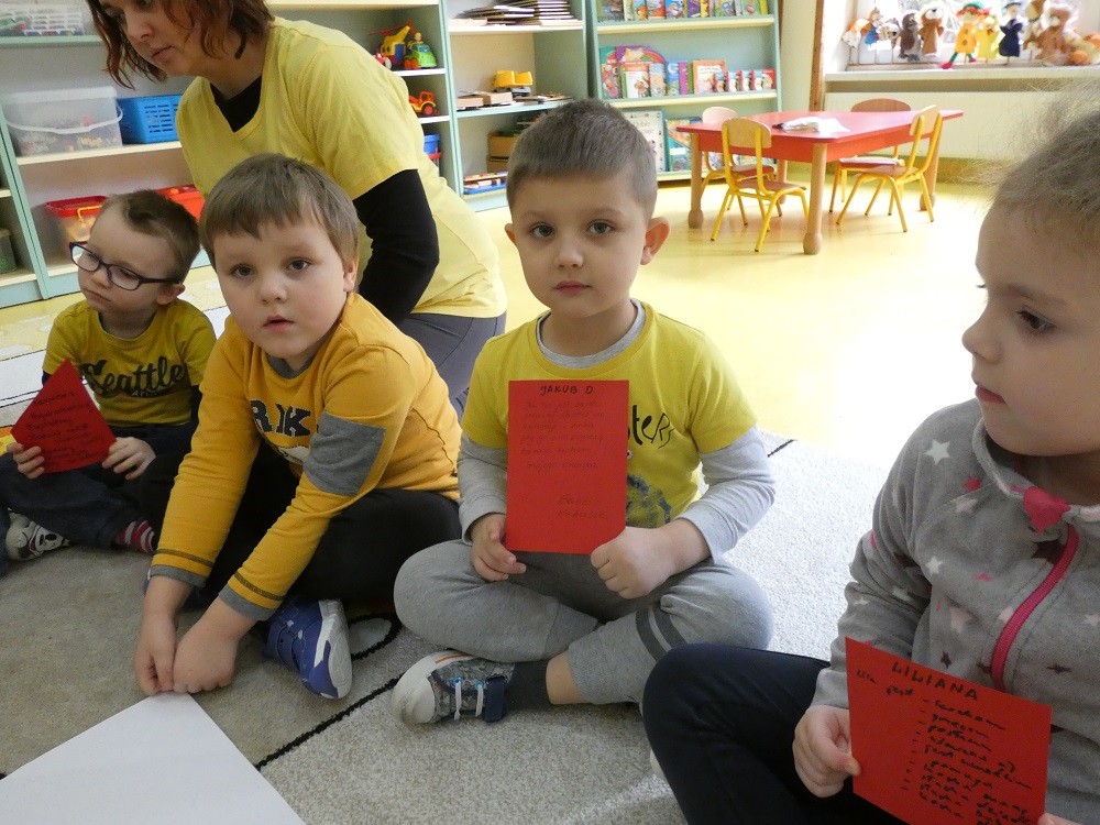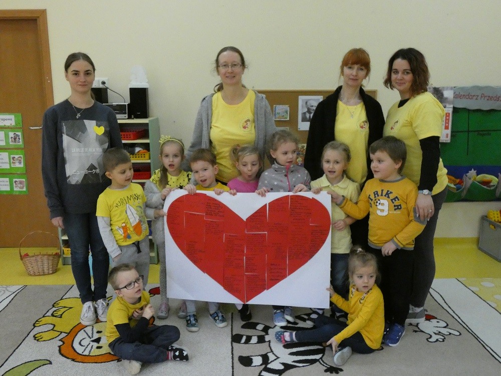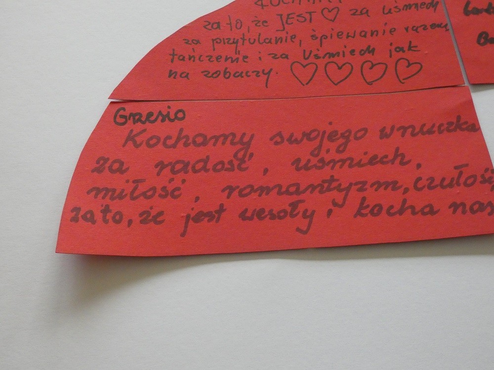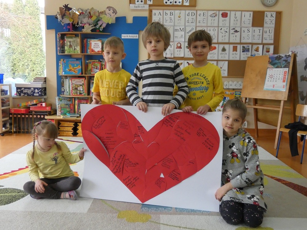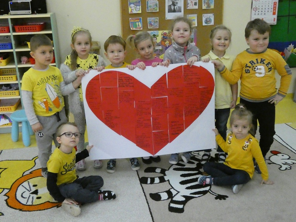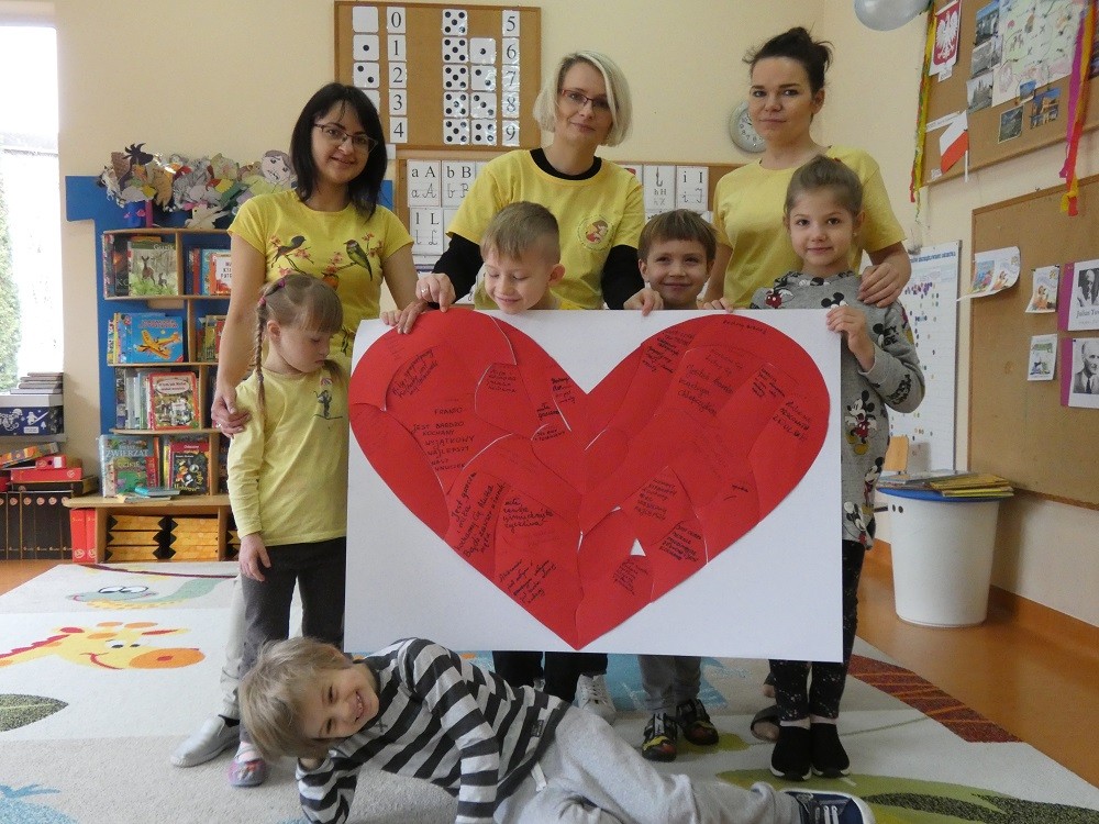 Dzień Dobrego Słowa to inicjatywa, która ma pomóc czynić świat lepszym, piękniejszym i szczęśliwszym. W styczniu gościliśmy w naszym przedszkolu wyjątkowych gości : nasze Babcie i naszch Dziadków. Podczas uroczystości zaprosiliśmy ich do wspólnego działania w ramach obchodów Dnia Dobrego Słowa. Nasze Babcie i nasi Dziadkowie napisali na puzzlach piękne, wzruszające, pełne miłości słowa o swoich wnukach. Z tych puzzli powstało Serce Pełne Dobrych Słów. Pamętajmy, że nie ma większej siły niż miłość do drugiego człowieka - Babci i Dziadka do wnuków, a najsilniejsze słowa to proszę, jestem wdzięczna, jestem wdzięczny, dziękuję, a w przypadku najbliższych Kocham Cię.