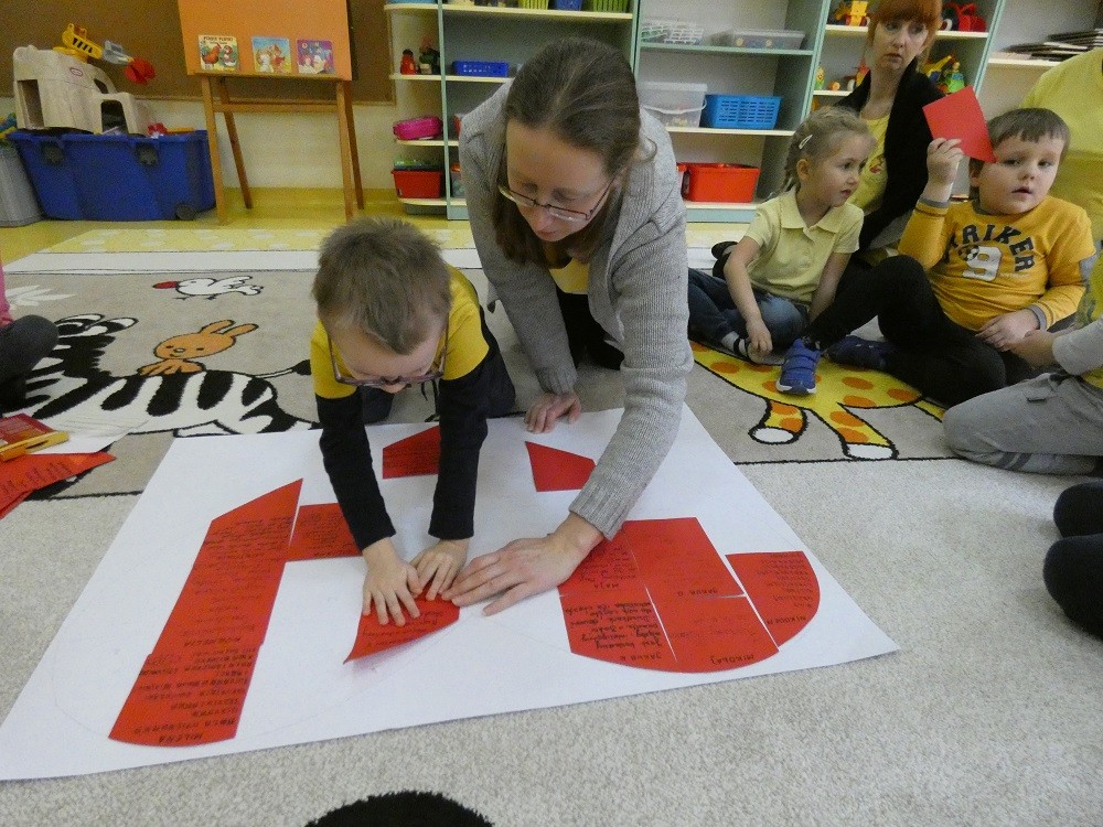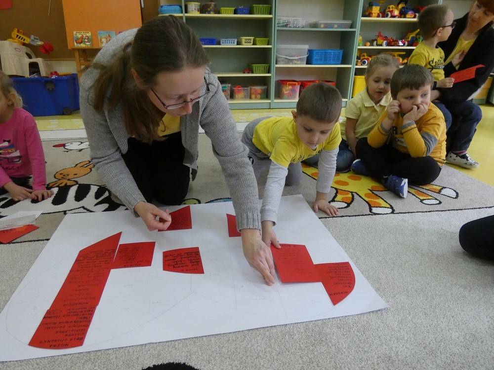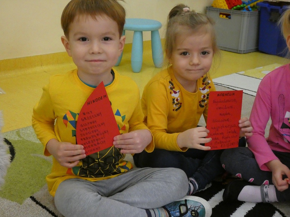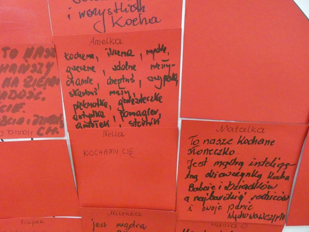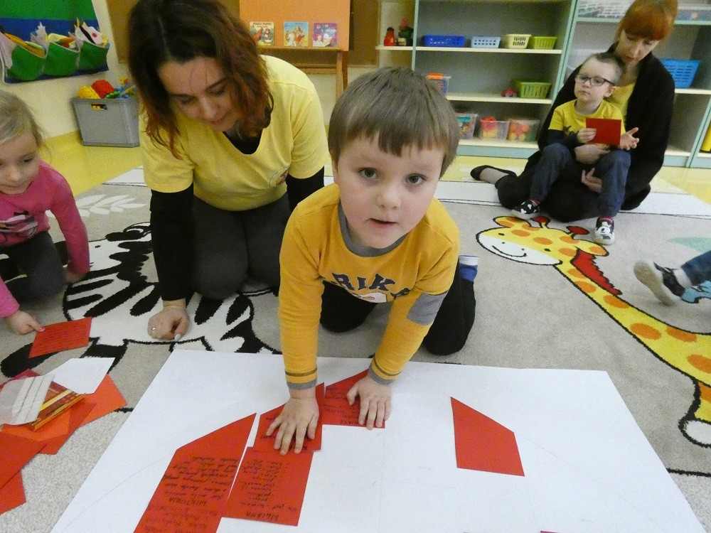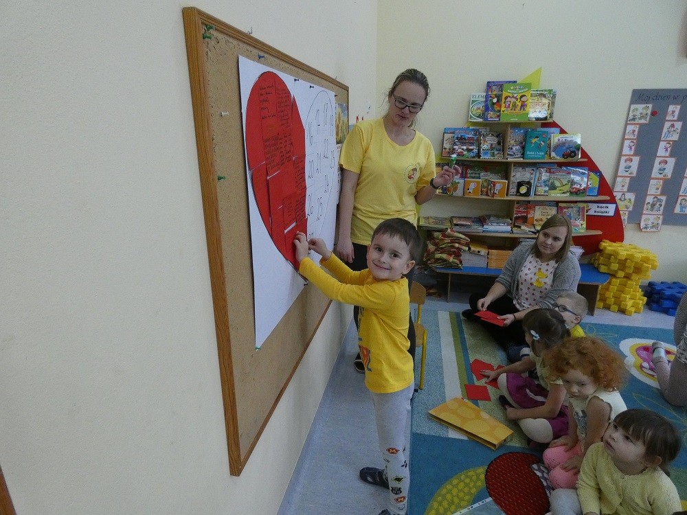 Dzień Dobrego Słowa to inicjatywa, która ma pomóc czynić świat lepszym, piękniejszym i szczęśliwszym. W styczniu gościliśmy w naszym przedszkolu wyjątkowych gości : nasze Babcie i naszch Dziadków. Podczas uroczystości zaprosiliśmy ich do wspólnego działania w ramach obchodów Dnia Dobrego Słowa. Nasze Babcie i nasi Dziadkowie napisali na puzzlach piękne, wzruszające, pełne miłości słowa o swoich wnukach. Z tych puzzli powstało Serce Pełne Dobrych Słów. Pamętajmy, że nie ma większej siły niż miłość do drugiego człowieka - Babci i Dziadka do wnuków, a najsilniejsze słowa to proszę, jestem wdzięczna, jestem wdzięczny, dziękuję, a w przypadku najbliższych Kocham Cię.