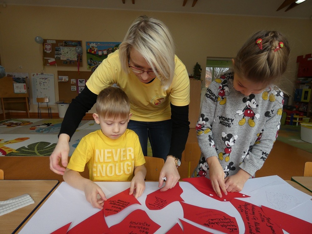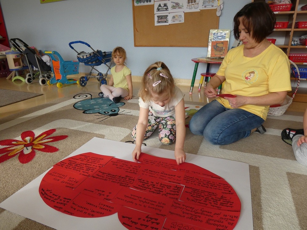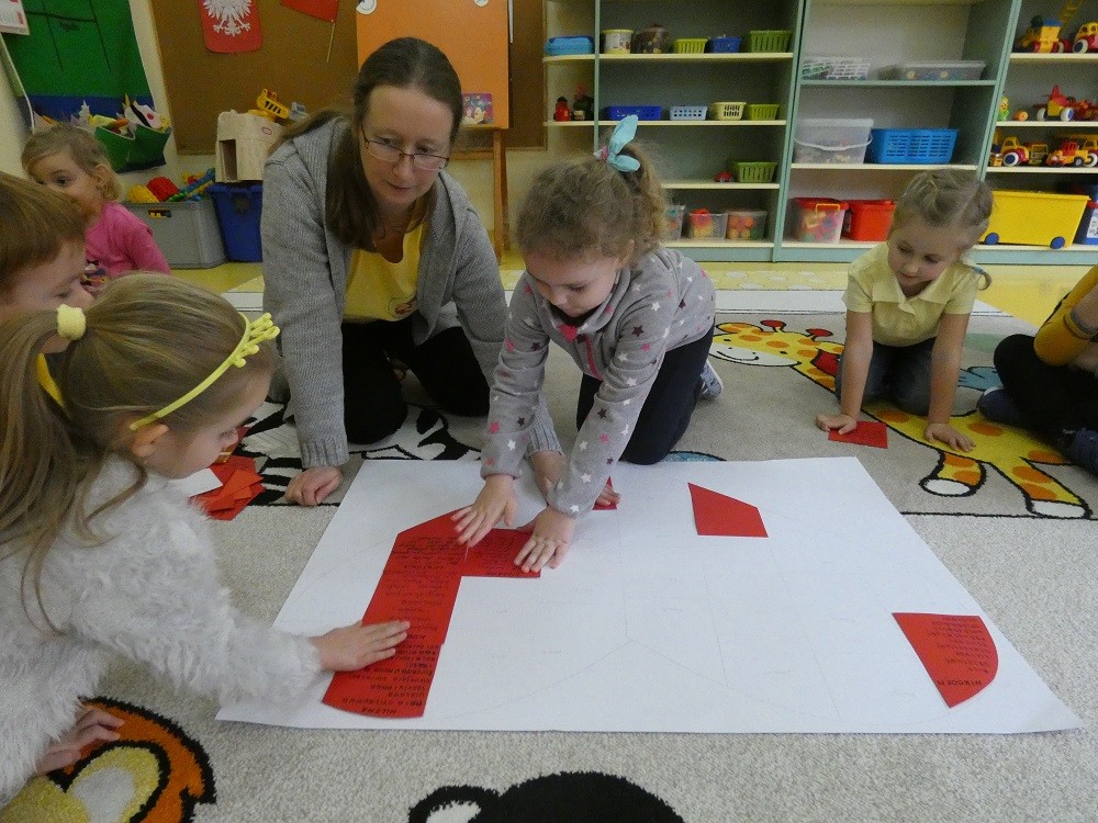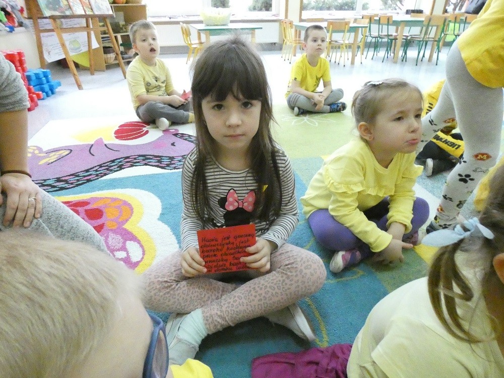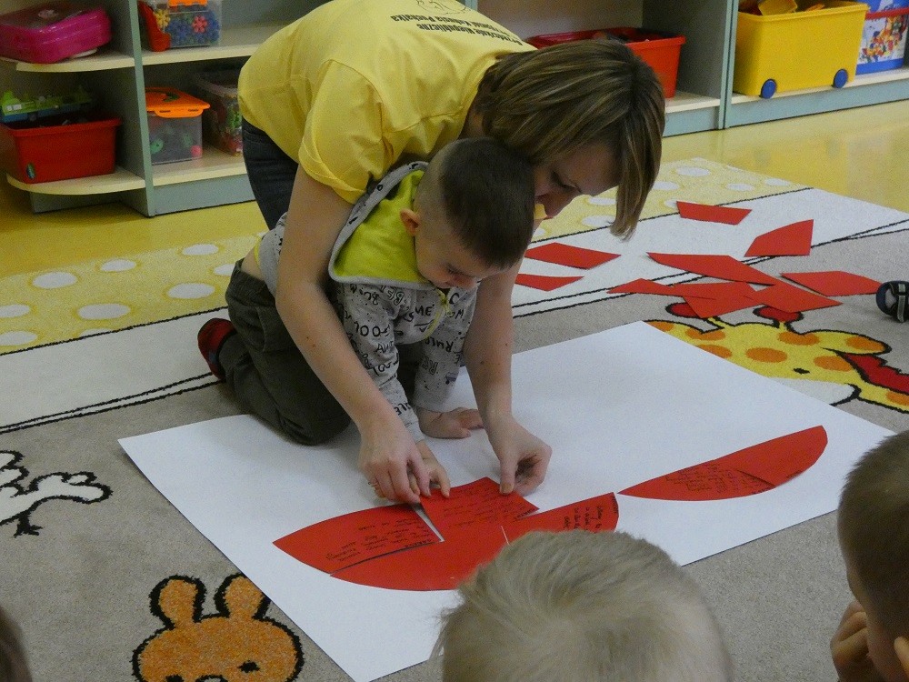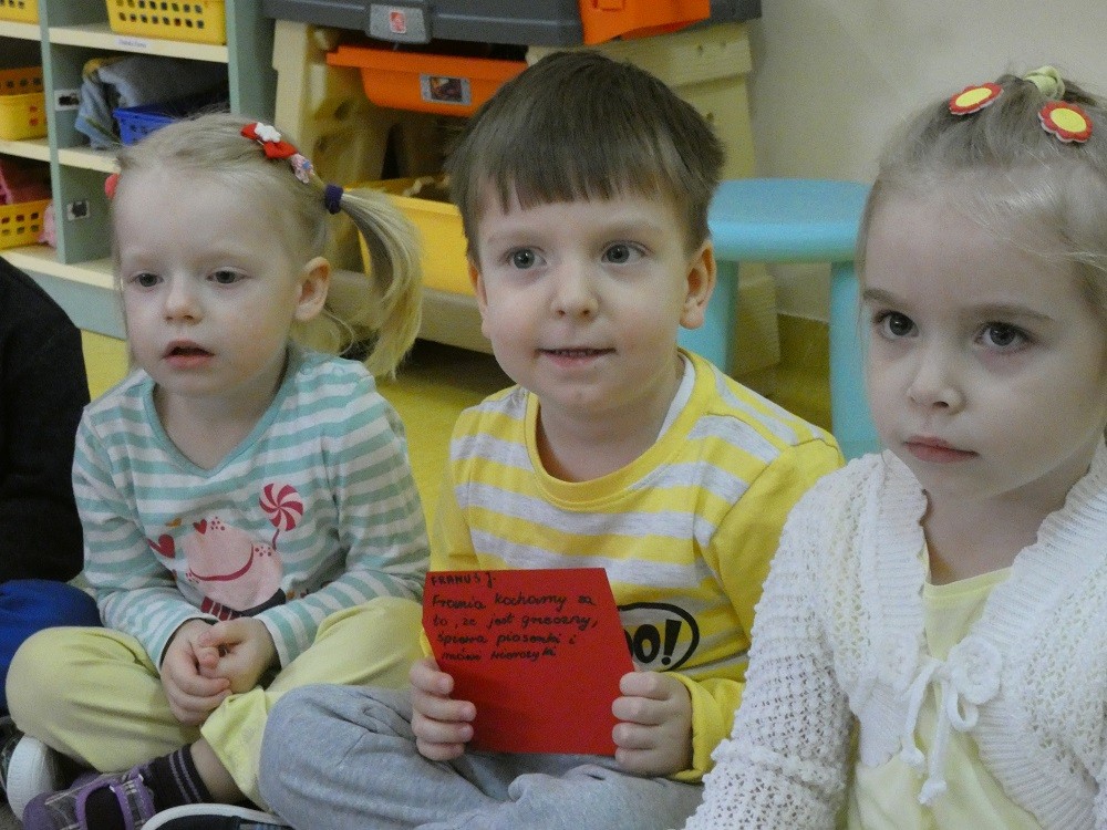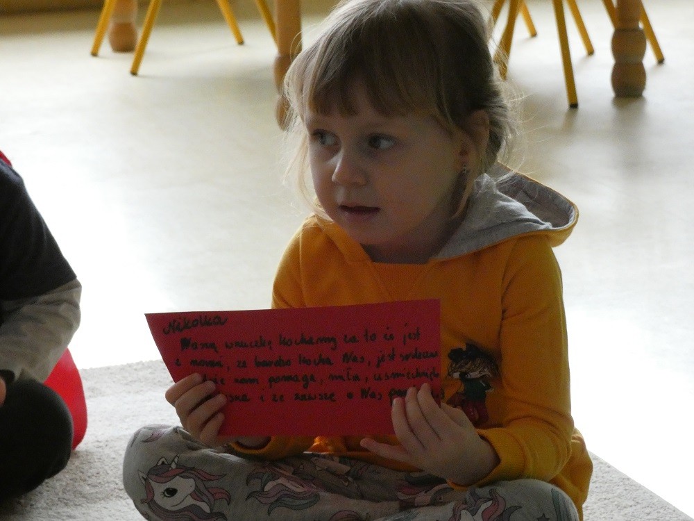 Dzień Dobrego Słowa to inicjatywa, która ma pomóc czynić świat lepszym, piękniejszym i szczęśliwszym. W styczniu gościliśmy w naszym przedszkolu wyjątkowych gości : nasze Babcie i naszch Dziadków. Podczas uroczystości zaprosiliśmy ich do wspólnego działania w ramach obchodów Dnia Dobrego Słowa. Nasze Babcie i nasi Dziadkowie napisali na puzzlach piękne, wzruszające, pełne miłości słowa o swoich wnukach. Z tych puzzli powstało Serce Pełne Dobrych Słów. Pamętajmy, że nie ma większej siły niż miłość do drugiego człowieka - Babci i Dziadka do wnuków, a najsilniejsze słowa to proszę, jestem wdzięczna, jestem wdzięczny, dziękuję, a w przypadku najbliższych Kocham Cię.