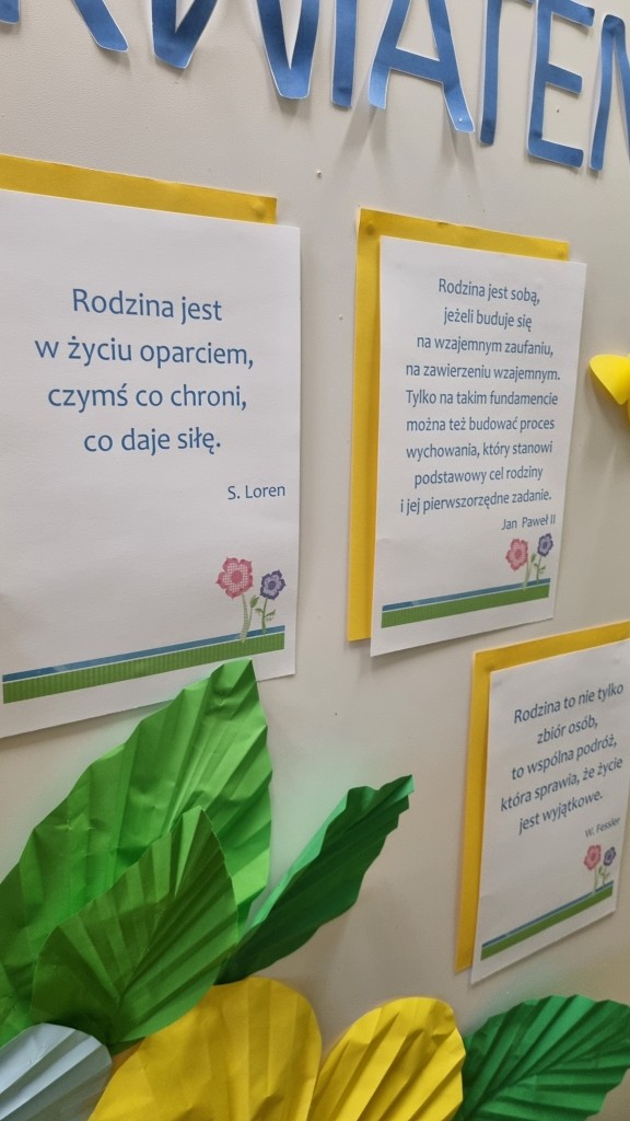 Pod takim hasłem świętowaliśmy dzień Dobrego Słowa w maju. W ramach tego świętowania podkreślałyśmy wartość Rodziny i wazjemnej miłości pomiędzy jej członkami. Dzieci pod kierunkiem nauczycieli przygotwały "serdeczne" kwiaty z ważnymi słowami do swoich Kochanych Rodziców.