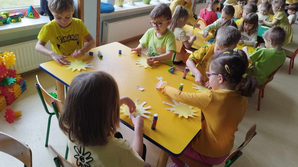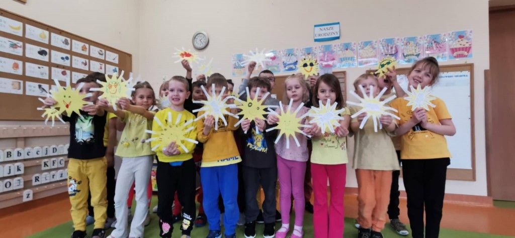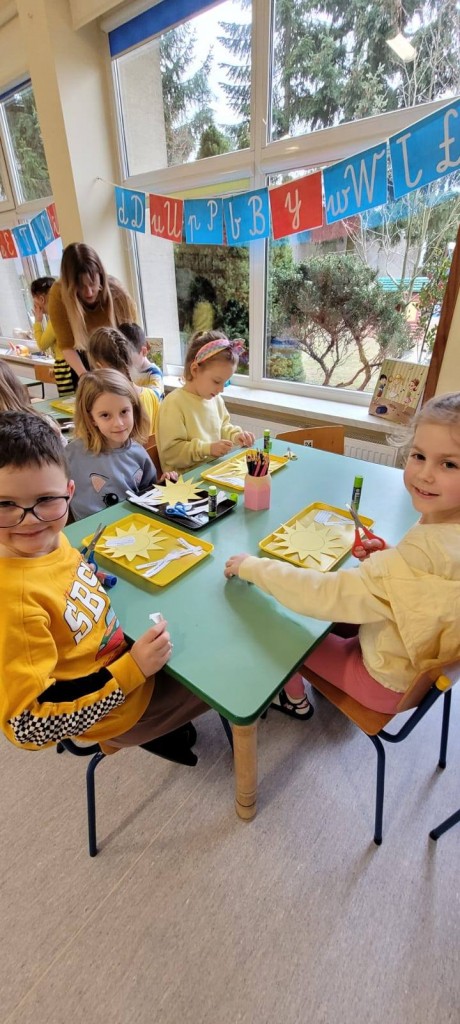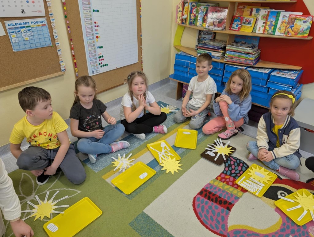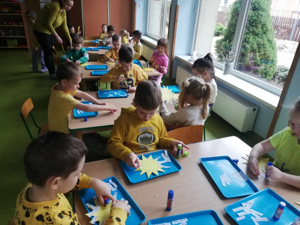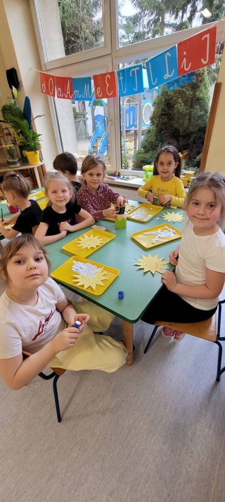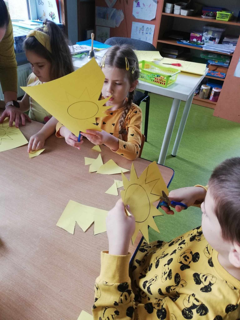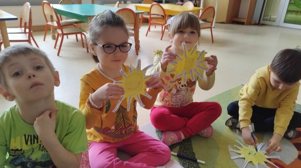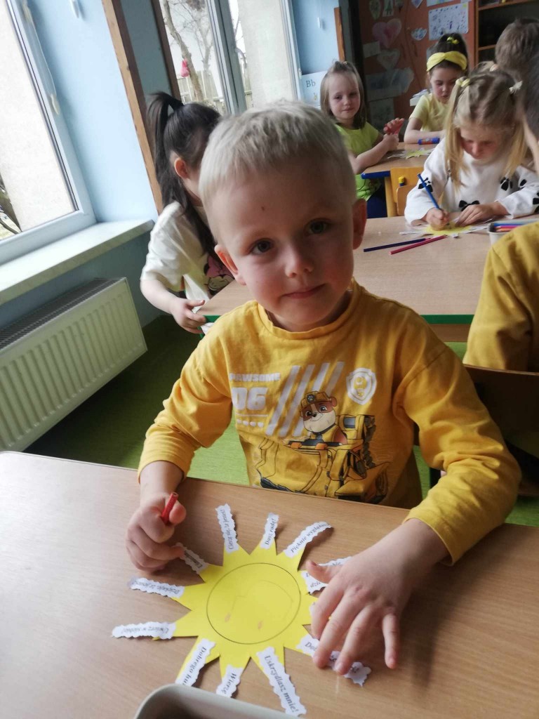 Dzieci pod kierunkiem swoich pań wykonały słoneczka zawierające dużo dobrych słów.