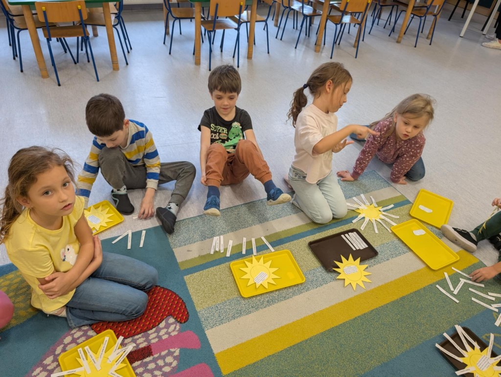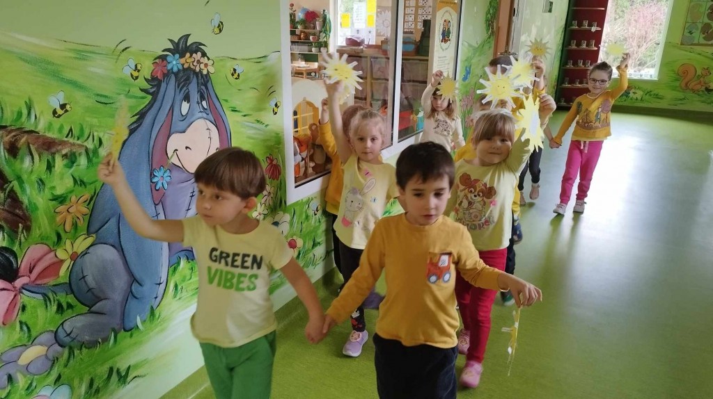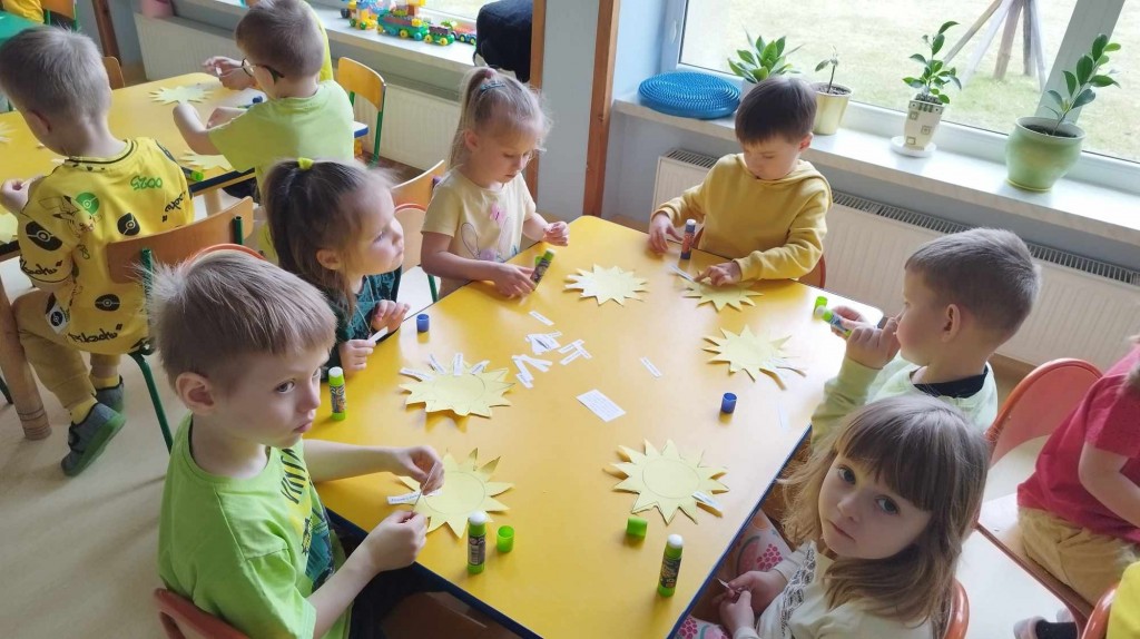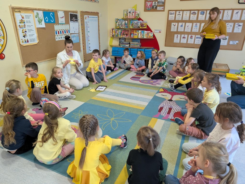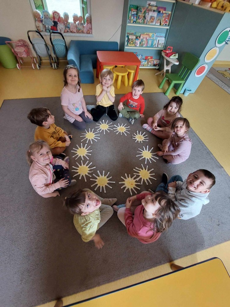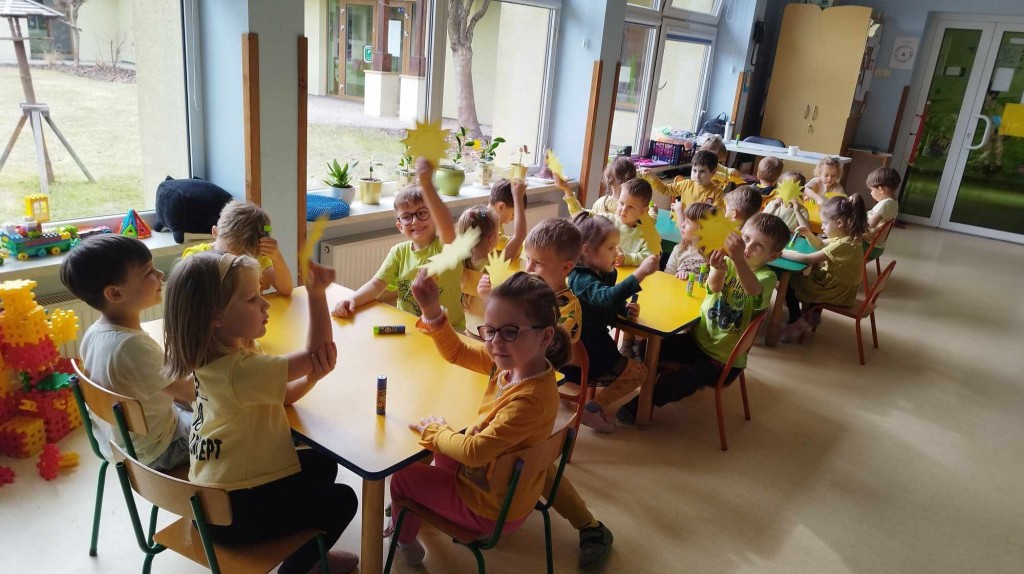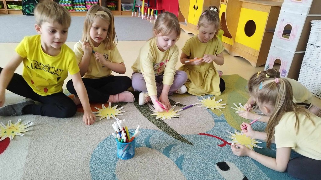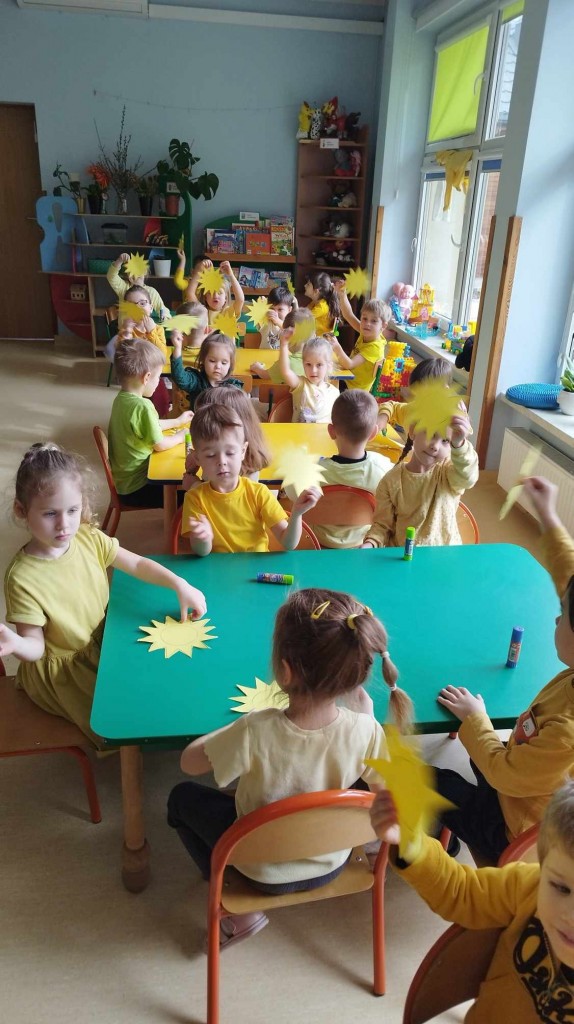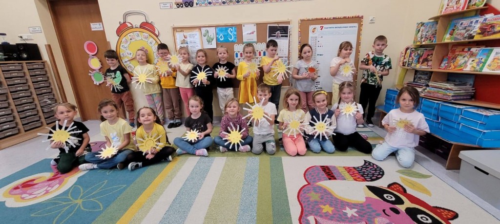 Dzieci pod kierunkiem swoich pań wykonały słoneczka zawierające dużo dobrych słów.