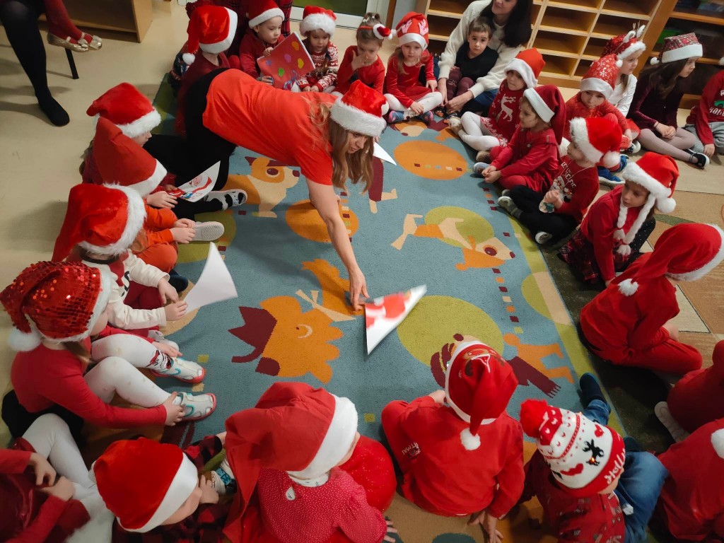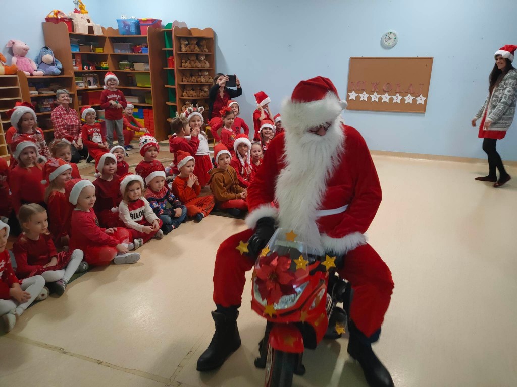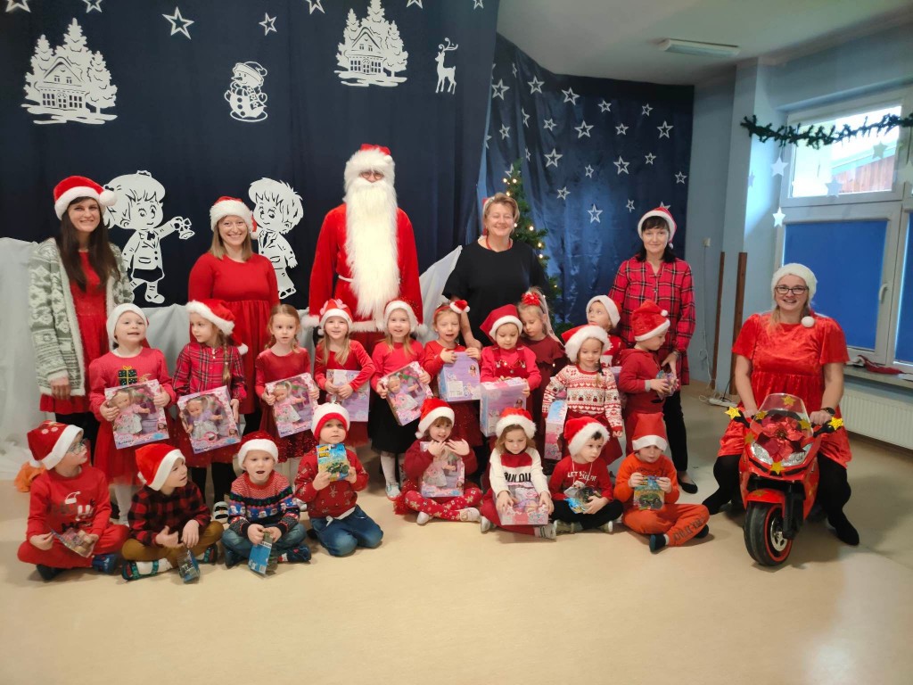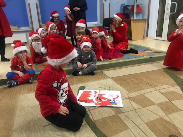 Nadszedł wreszcie długo oczekiwany dzień. Wszystkie dzieci już od samego rana z wielką niecierpliwością spoglądały na drzwi i nasłuchiwały „Mikołajowych” dzwoneczków. W tym roku nasze spotkanie mogliśmy zorganizować wspólnie z innymi grupami, a Panie Mikołajowe przygotowały nam wspaniałą zabawę, w której mogliśmy się wykazać naszą wiedzą i umiejętnościami. Po przybyciu Mikołaja powitaliśmy go wierszykiem i piosenką , a on obdarował wszystkie dzieci prezentami. Spotkanie minęło w bardzo miłej atmosferze i przyniosło dzieciom wiele radości. Dzień ten na długo pozostanie w pamięci wszystkich przedszkolaków.