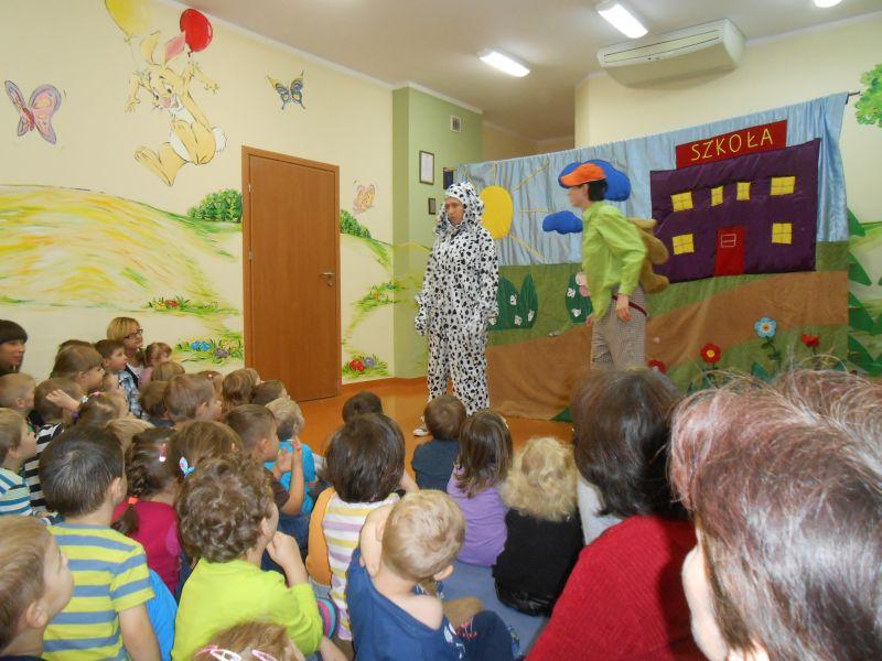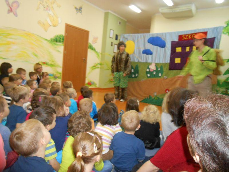 9 listopada dzieci z naszego przedszkola obejrzały teatrzyk przedstawiony przez aktorów z Białegostoku pt.,,O odpowiedzialności bajka krótka". Zwierzątka mówiły o skutkach złego zachowania i braku odpowiedzialności. Przypomniały o obowiązkach dzieci w szkole i w domu, o sprzątaniu po sobie, o higienie i zdrowych zębach. Wspólna zabawa aktorów z dziećmi wprawiła wszystkich w dobre humory. Czas spędzony z aktorami to była świetna zabawa, ale też super nauka.